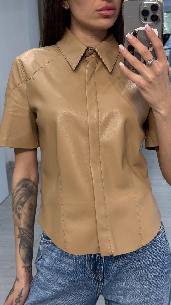 Блуза з короткими рукавами з м’якої еко шкіри
