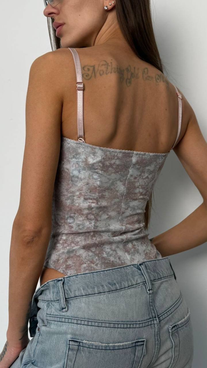 Боді на бретелях в сіро-рожевиму кольорі