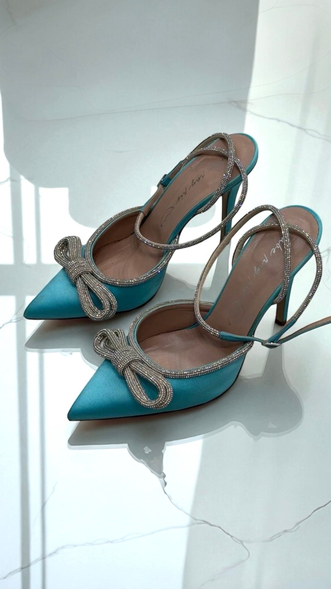 Атласні бірюзові слінгбеки із кристалами