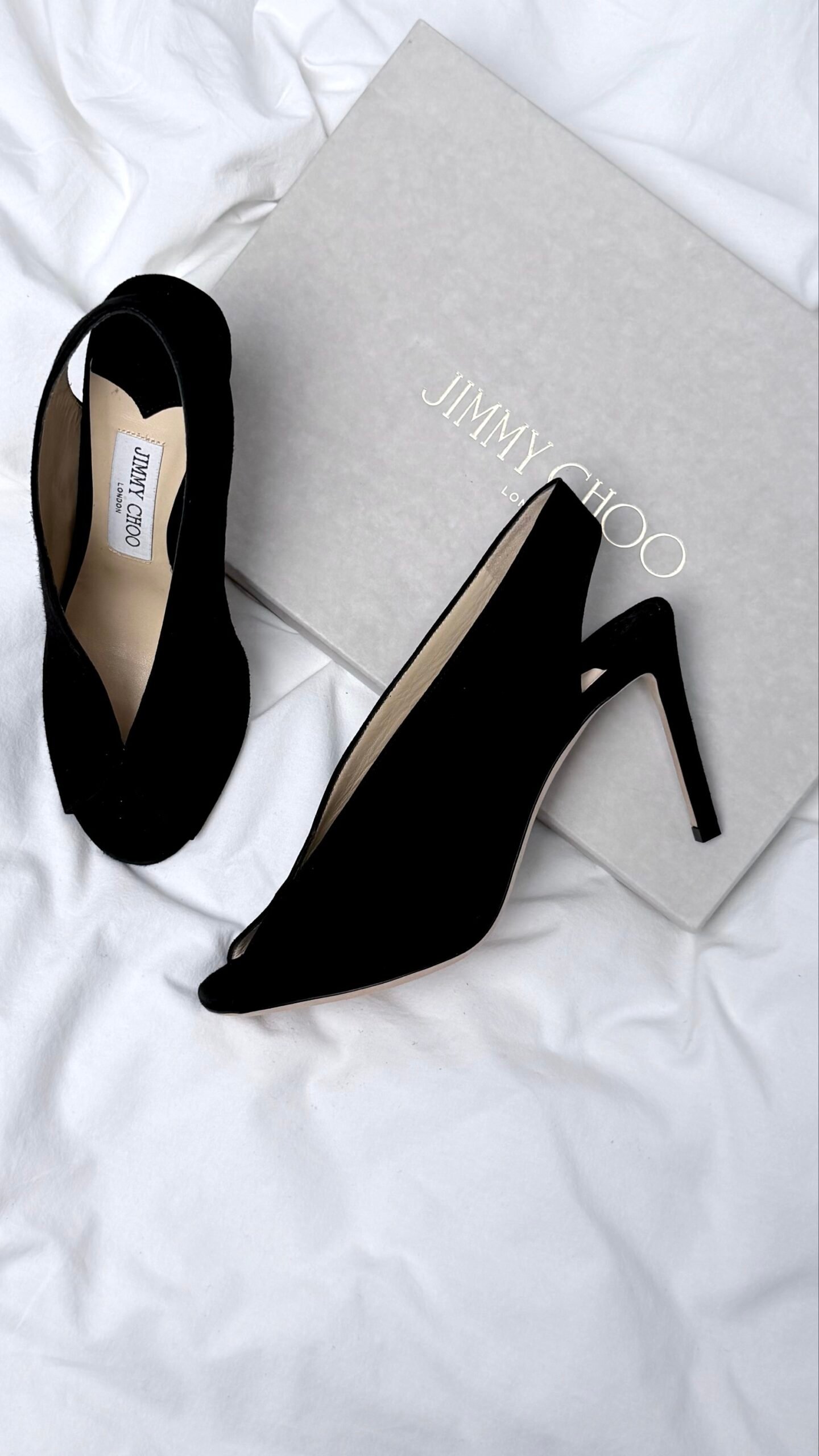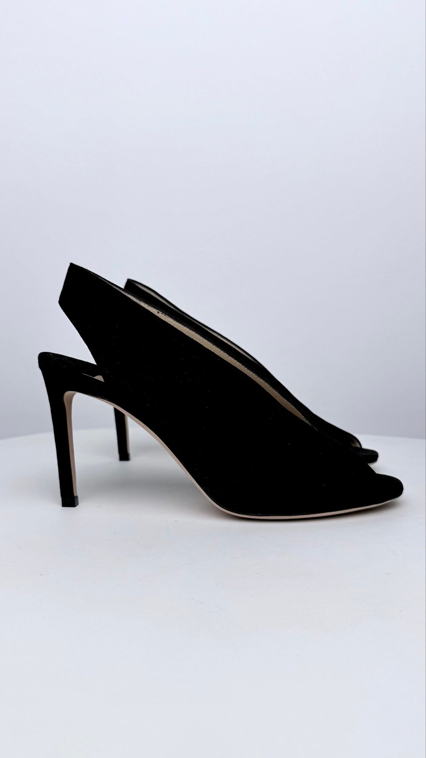 Елегантна модель від культового британського бренду, що поєднує класичний силует та сучасні архітектурні лінії. Глибокий V-подібний виріз візуально подовжує ногу, а відкритий мис додає образу витонченості.