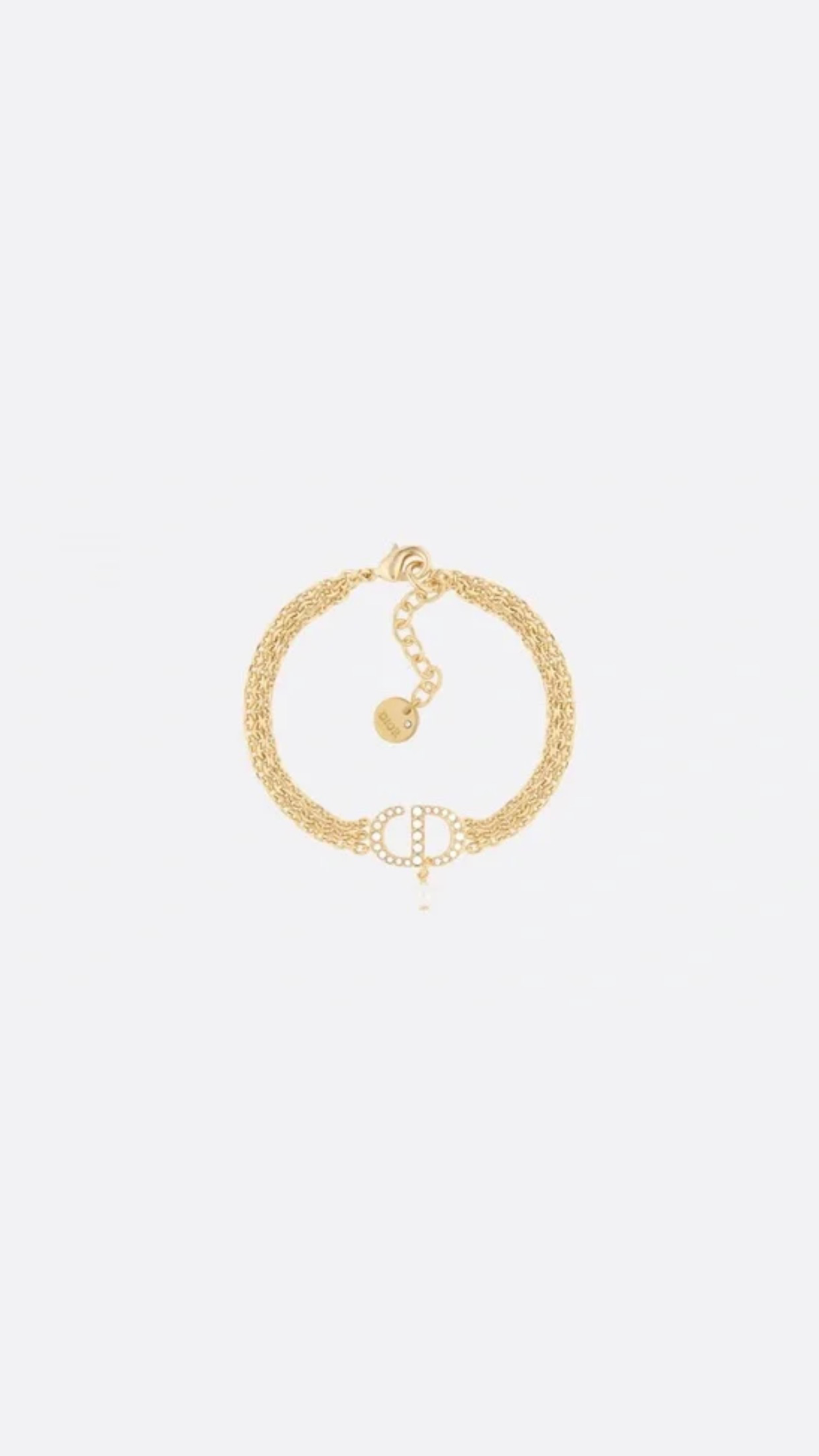Шукаєте ідеальну прикрасу, яка пасуватиме і до джинсів з топом, і до вечірньої сукні? Цей браслет від Dior — саме те, що треба! Три тонких ланцюжки ніжно підкреслюють лінію зап’ястя, а фірмовий логотип з кристалами та маленька перлина додають дорогого блиску.Він не перевантажує образ, але одразу заявляє про ваш бездоганний смак.