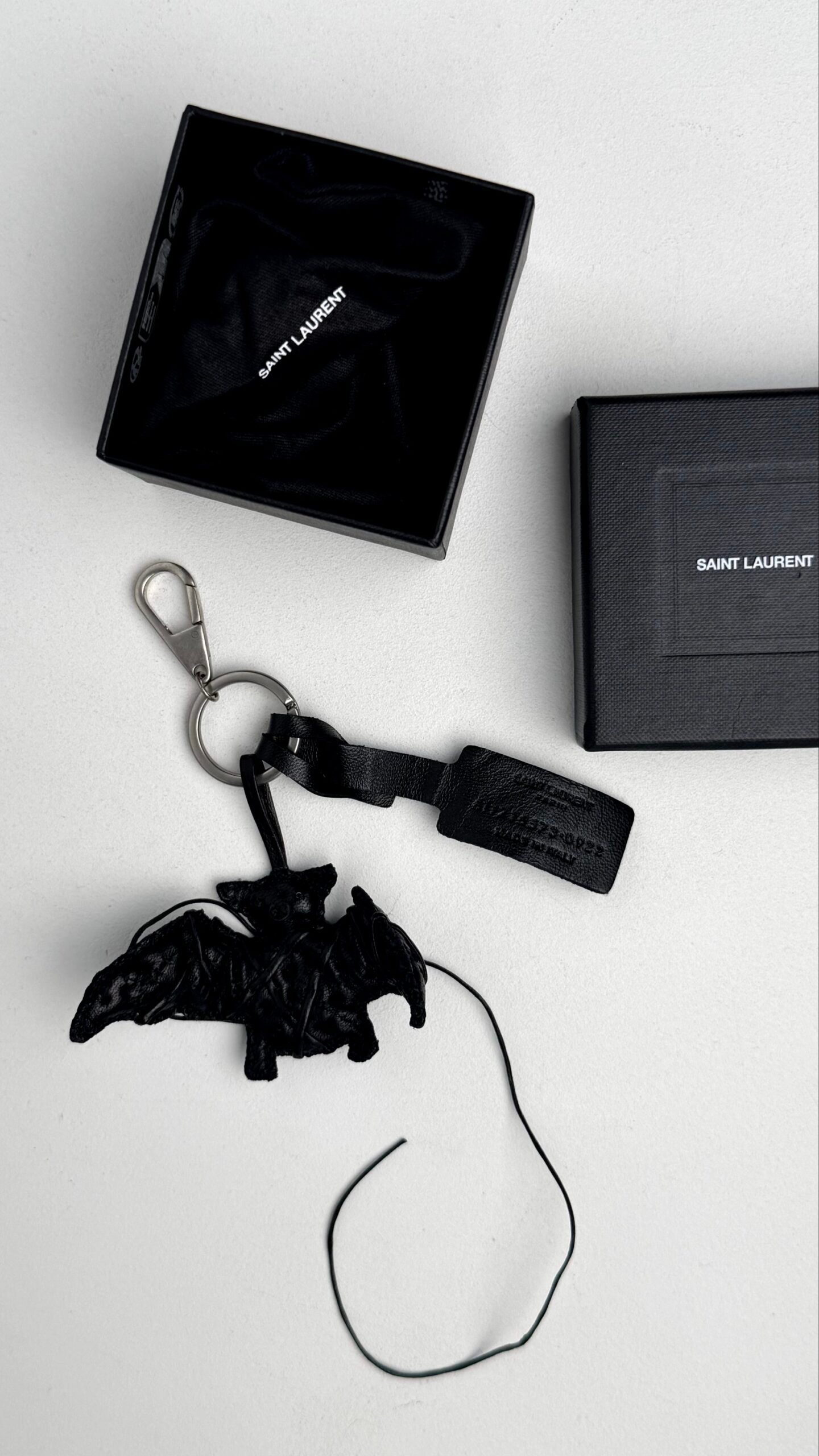 Цей унікальний брелок у формі кажана від Saint Laurent — це не просто аксесуар, а справжній арт-об’єкт, що втілює сміливу естетику паризького модного дому.