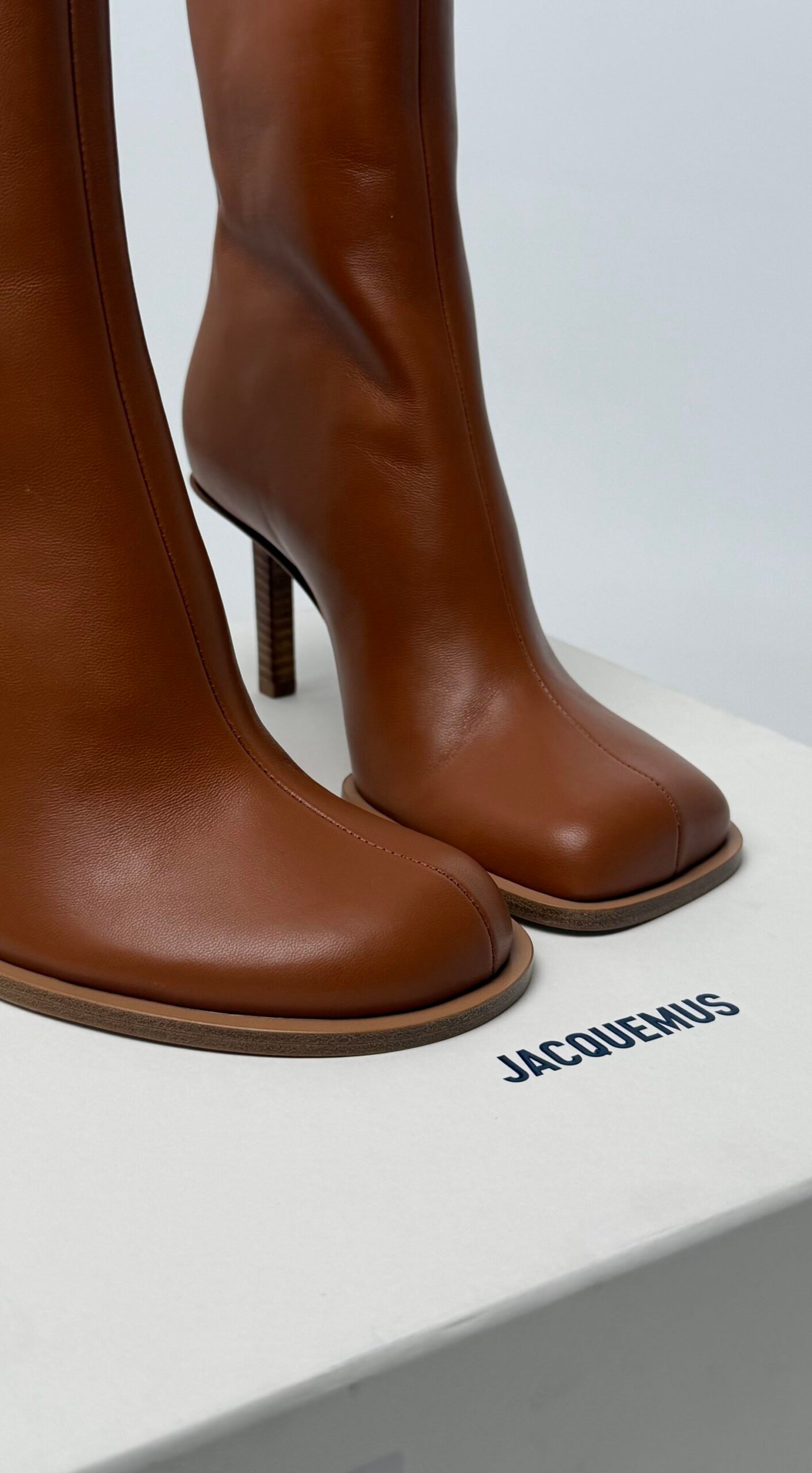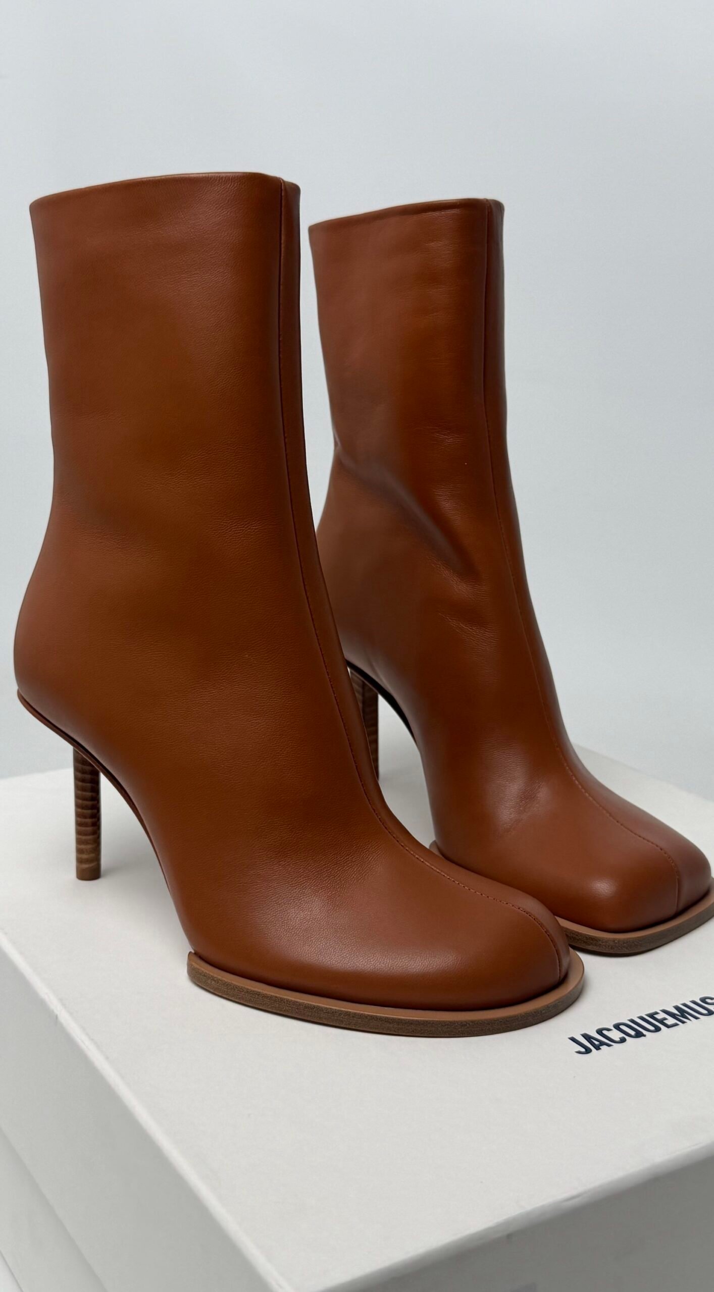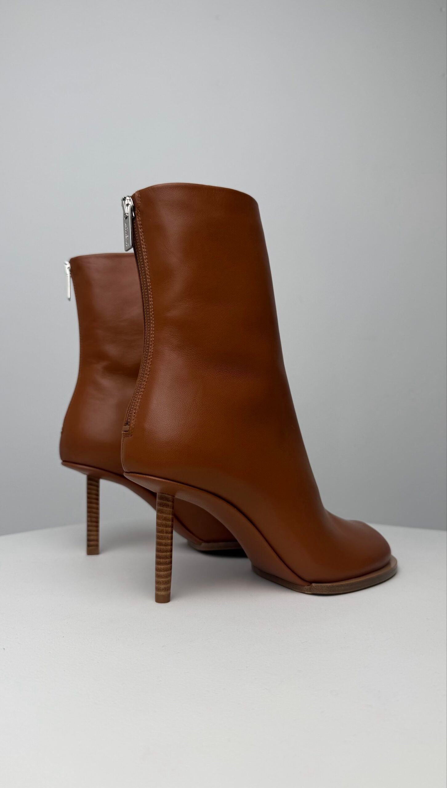 Ці ботильйони від Jacquemus — ідеальне поєднання авангардного дизайну та класичного комфорту. Виконані з надм’якої шкіри преміум-якості в глибокому карамельному відтінку, вони стануть головним акцентом вашого образу.