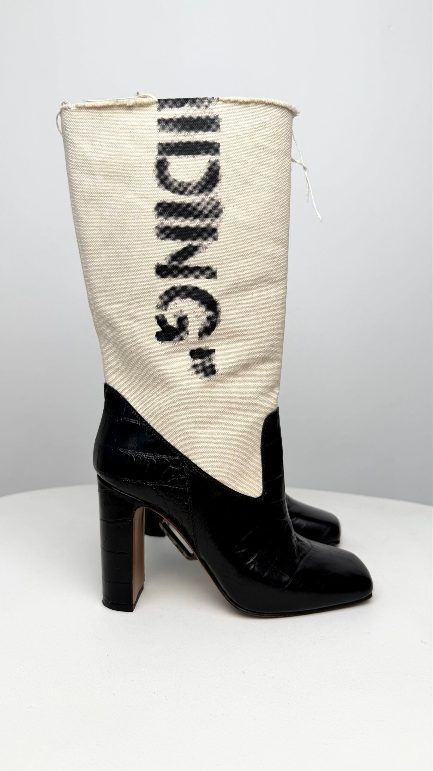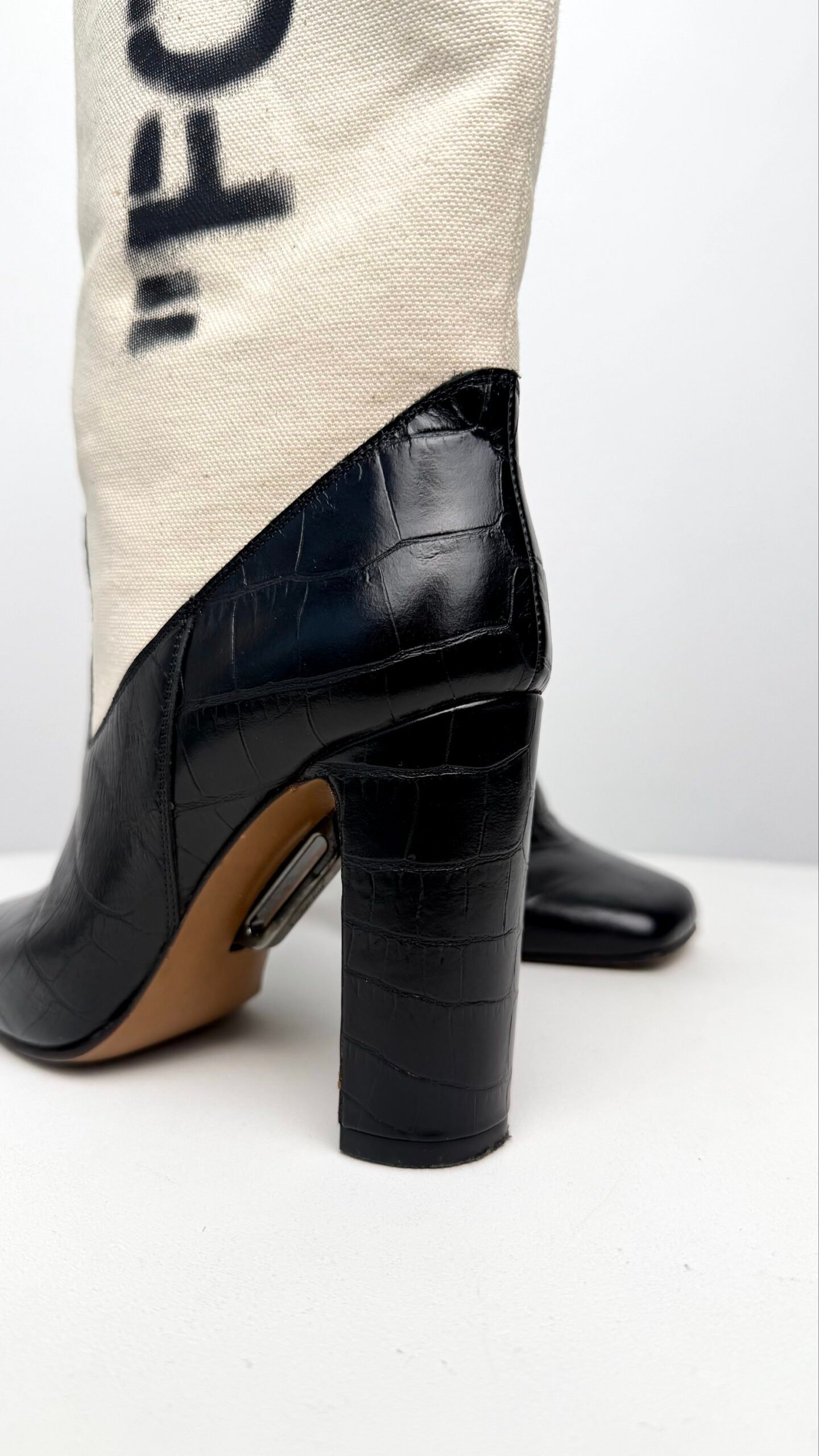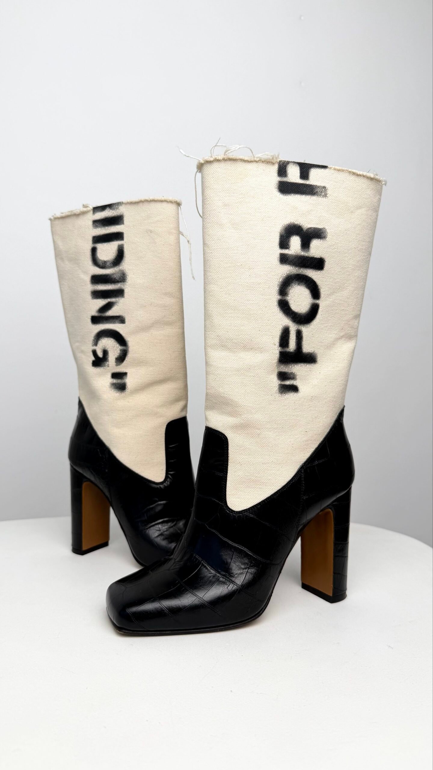 Ці чоботи — втілення концептуального підходу бренду Off-White. Поєднання вишуканої фактури кроко та грубого текстилю створює контраст, який миттєво привертає увагу.