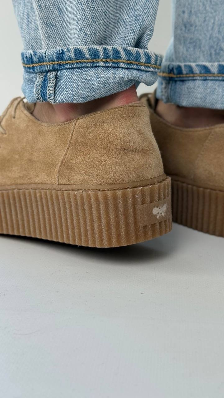 Бежеві дебрі з рифленою гумовою підошвою виготовлені з замші телячої шкіри