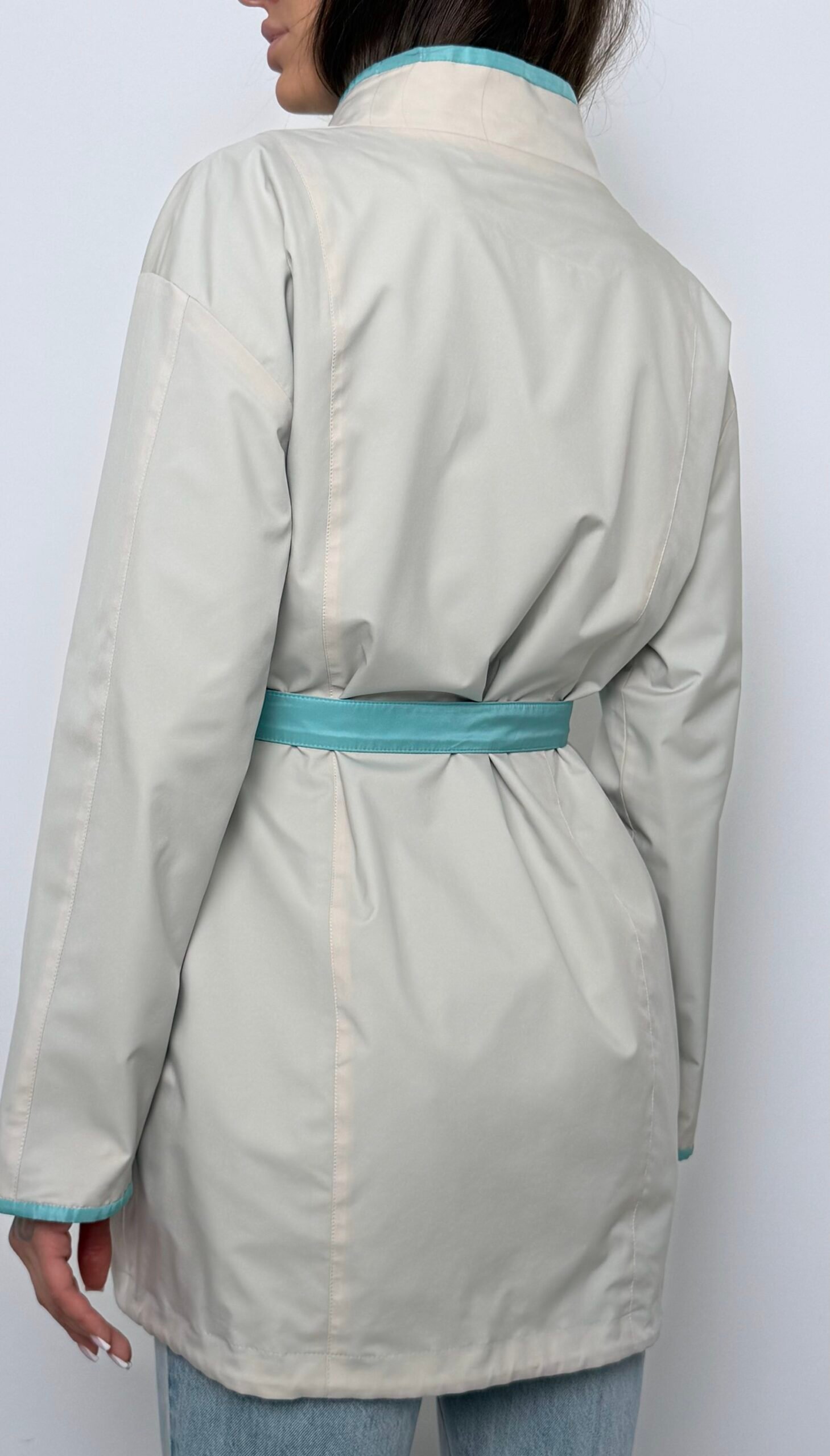 Ця вишукана модель від Loro Piana — ідеальне поєднання функціональності та італійської елегантності. Завдяки двосторонньому дизайну, ви отримуєте два абсолютно різних образи в одній речі: яскравий і свіжий у відтінку «Тіффані» або стриманий та базовий у ніжному кремовому кольорі.Куртка доповнена куліскою по нижньому краю, що дозволяє регулювати об’єм та зберігати тепло.