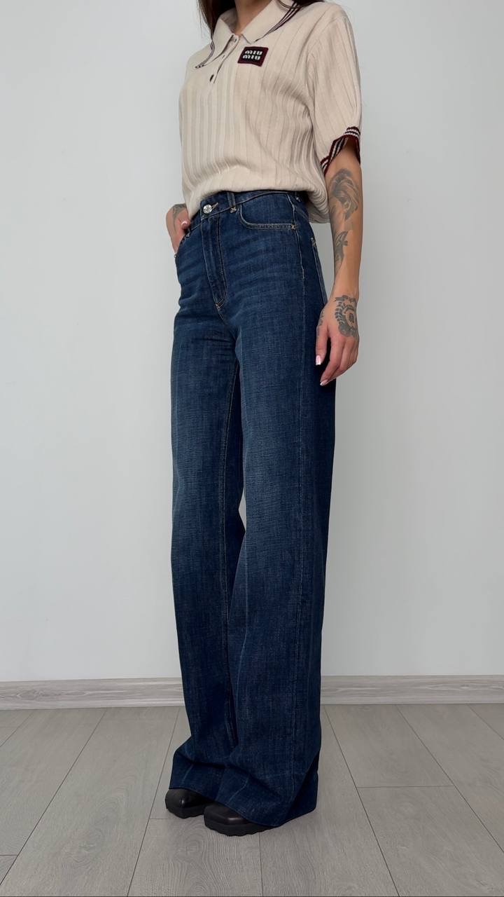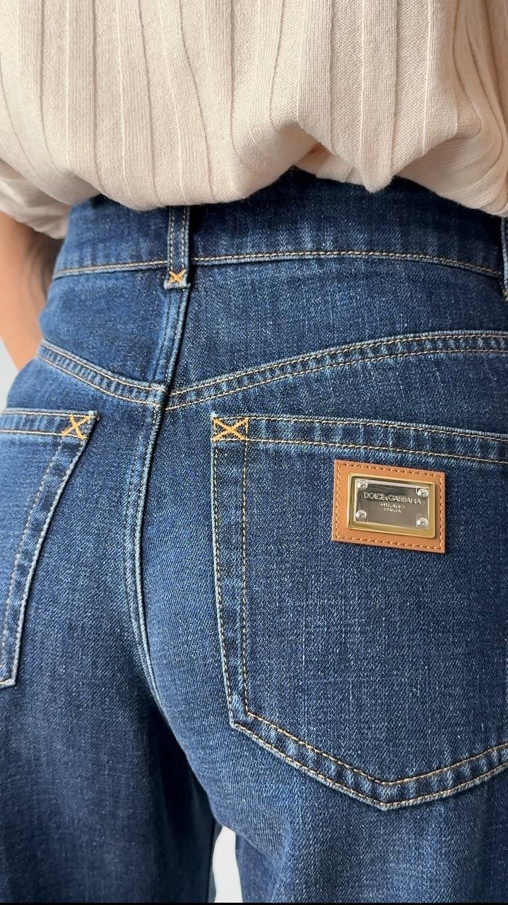 Джинси з щільного деніму та впізнаваною металевою табличкою ззаду