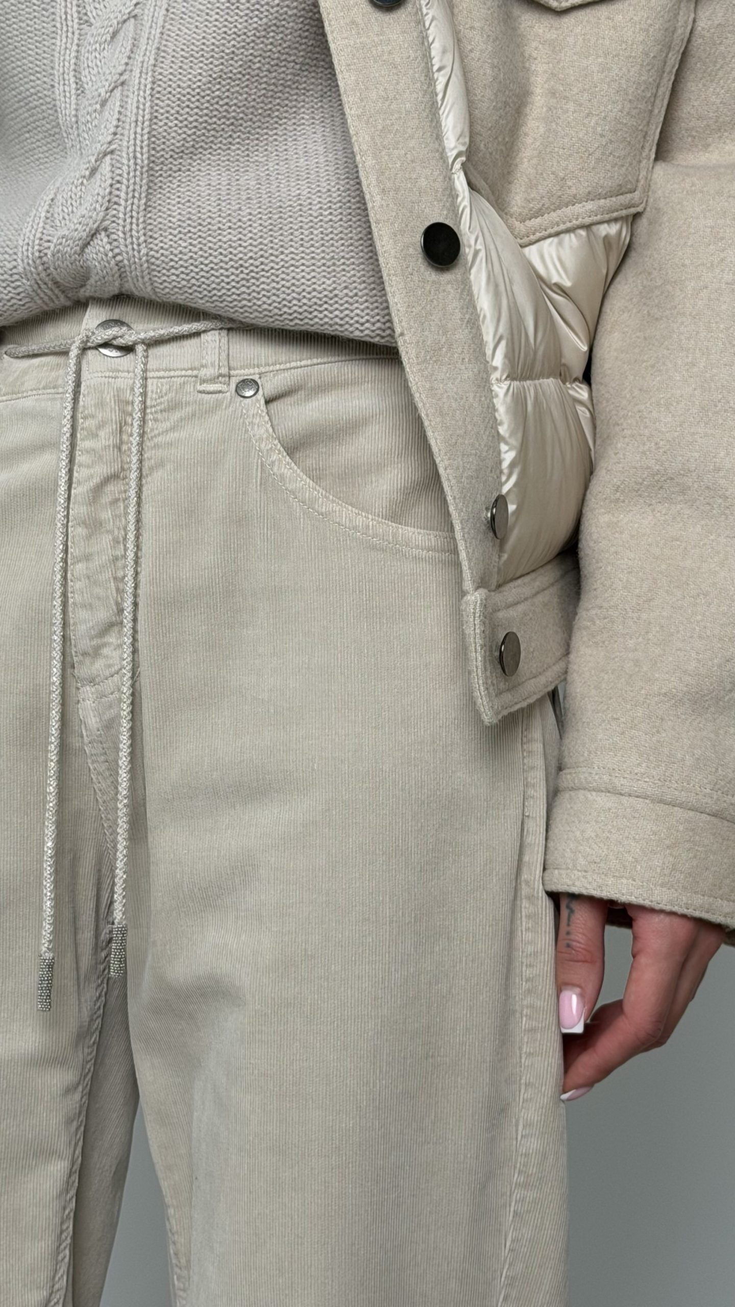 Бежеві джинси Panicale з м’якого щільного котону, пряма посадка та еластичний пояс із блискучими зав’язками для комфорту