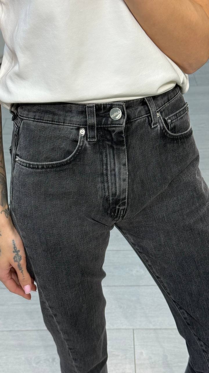 Сірі джинси з логотипом бренду позаду
