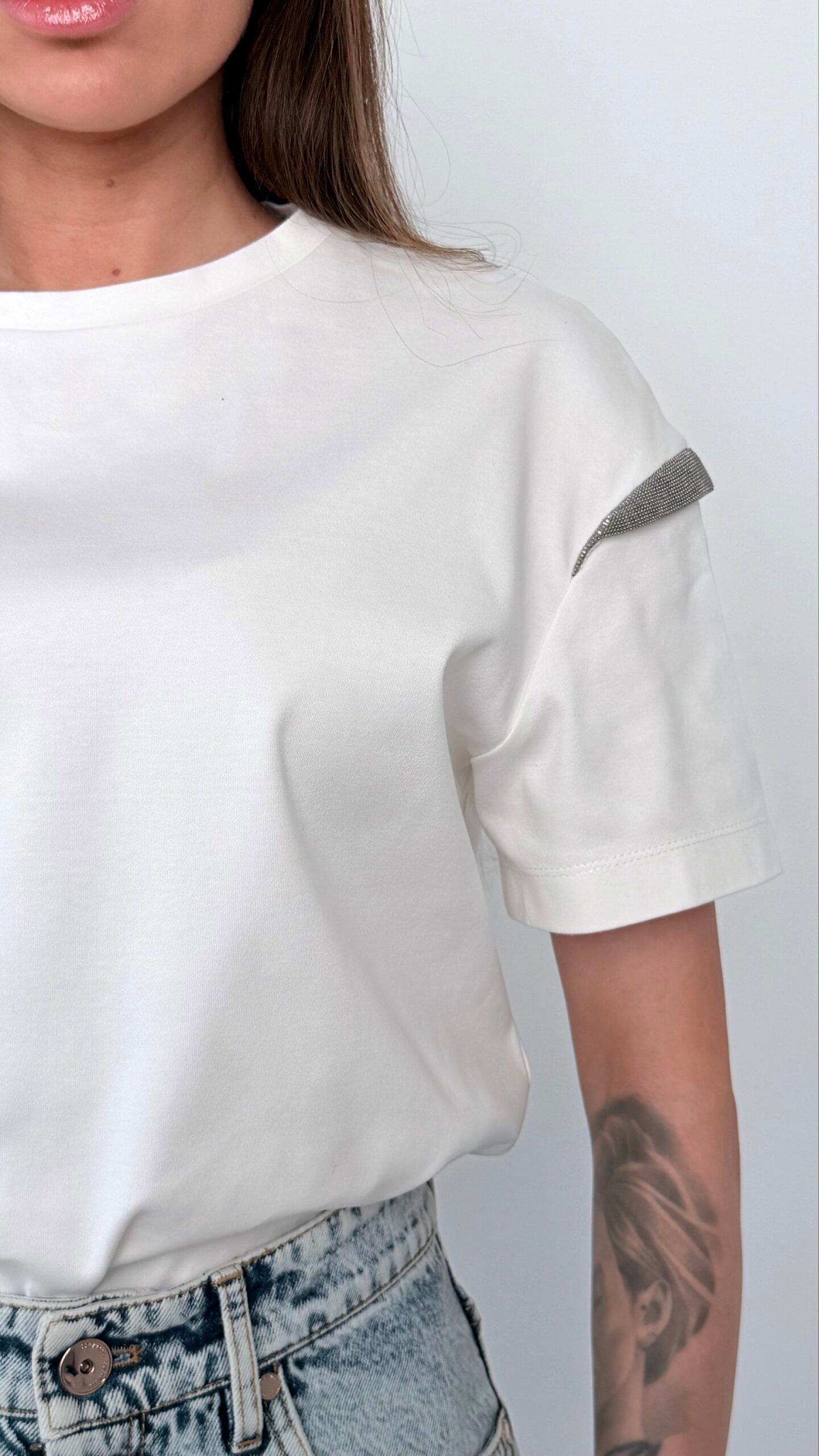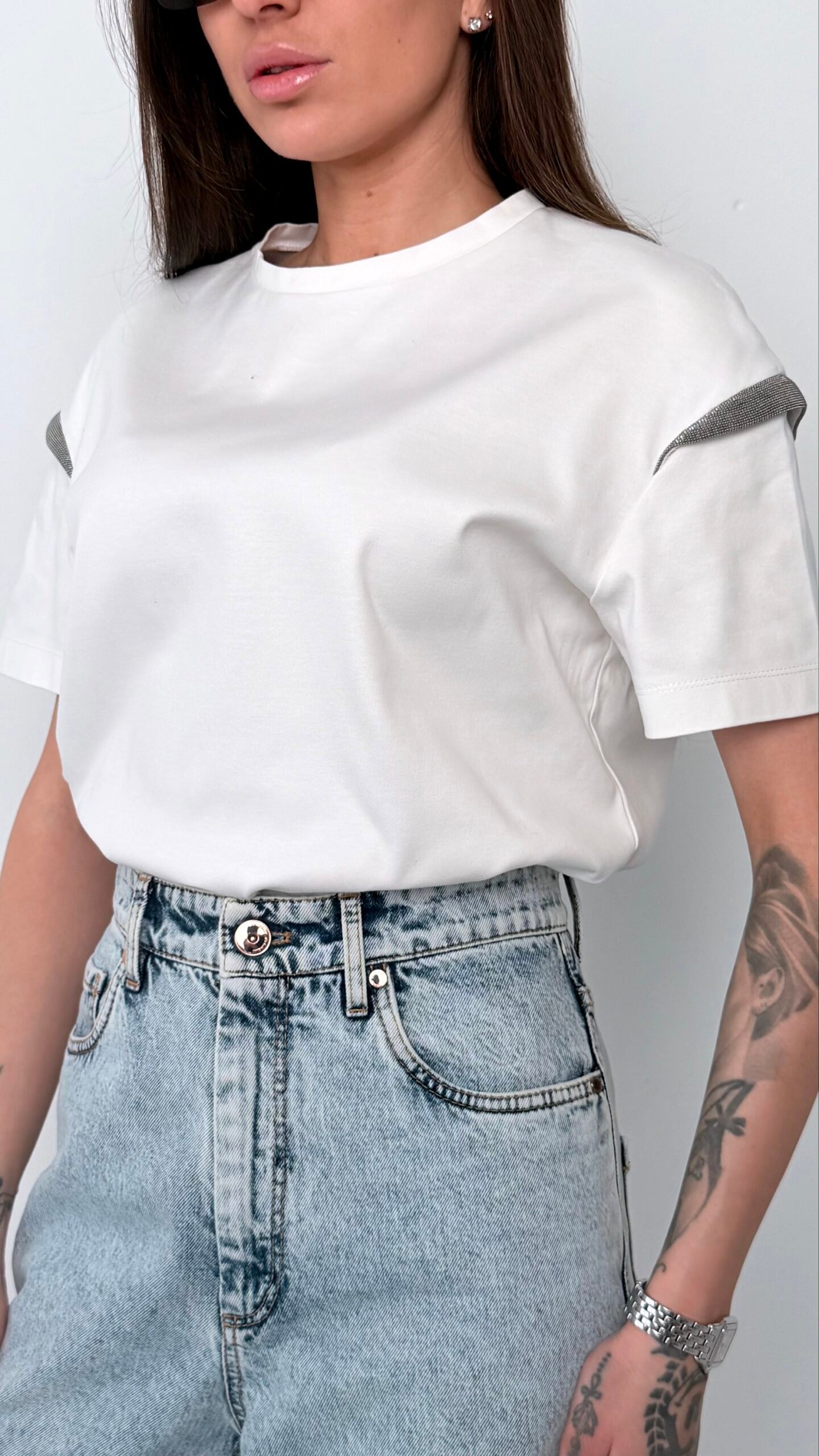Вишукана інтерпретація класичної білої футболки від майстрів італійського бренду Brunello Cucinelli. Модель виконана з преміальної бавовни, яка забезпечує бездоганну посадку та комфорт протягом усього дня.