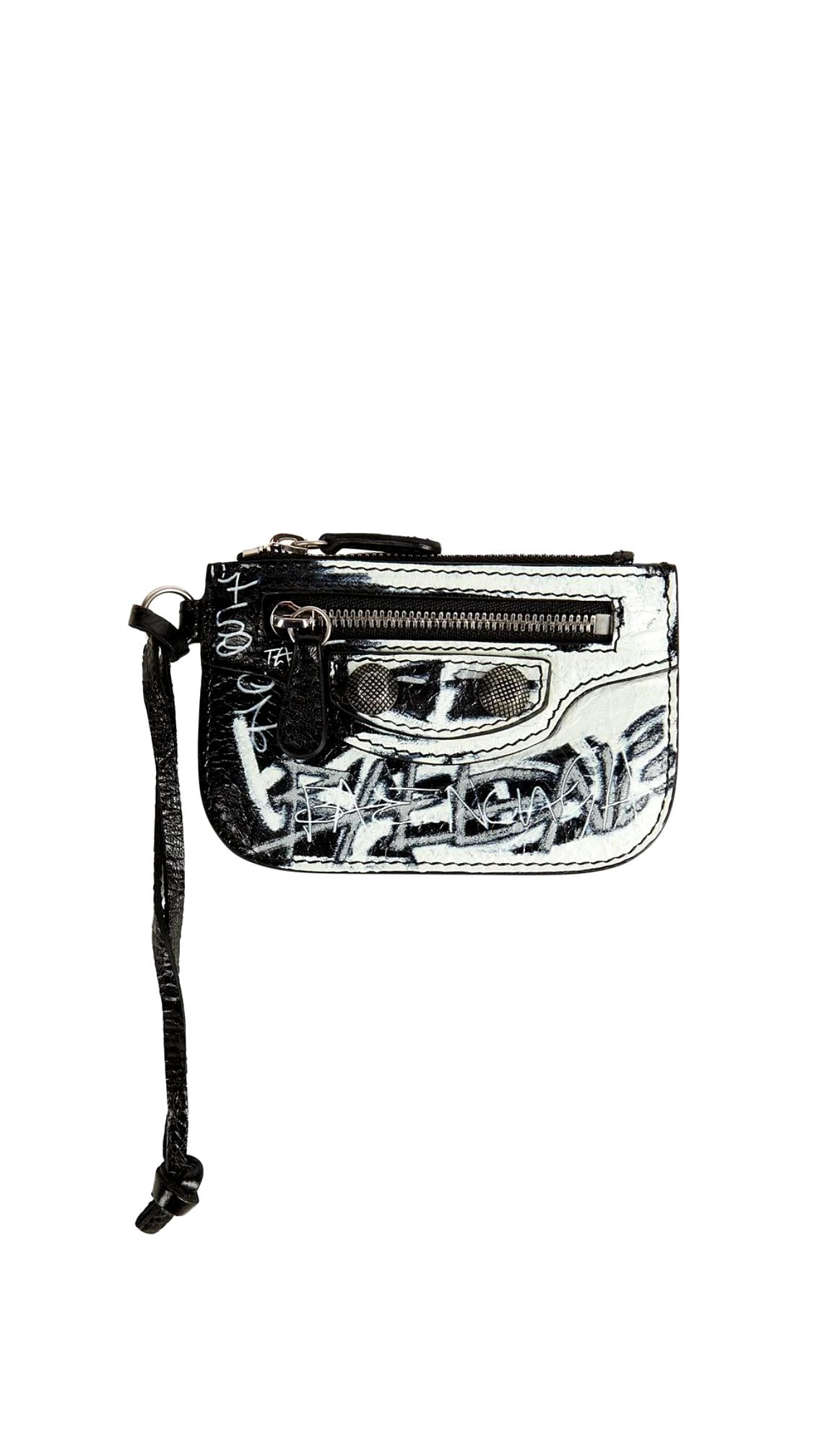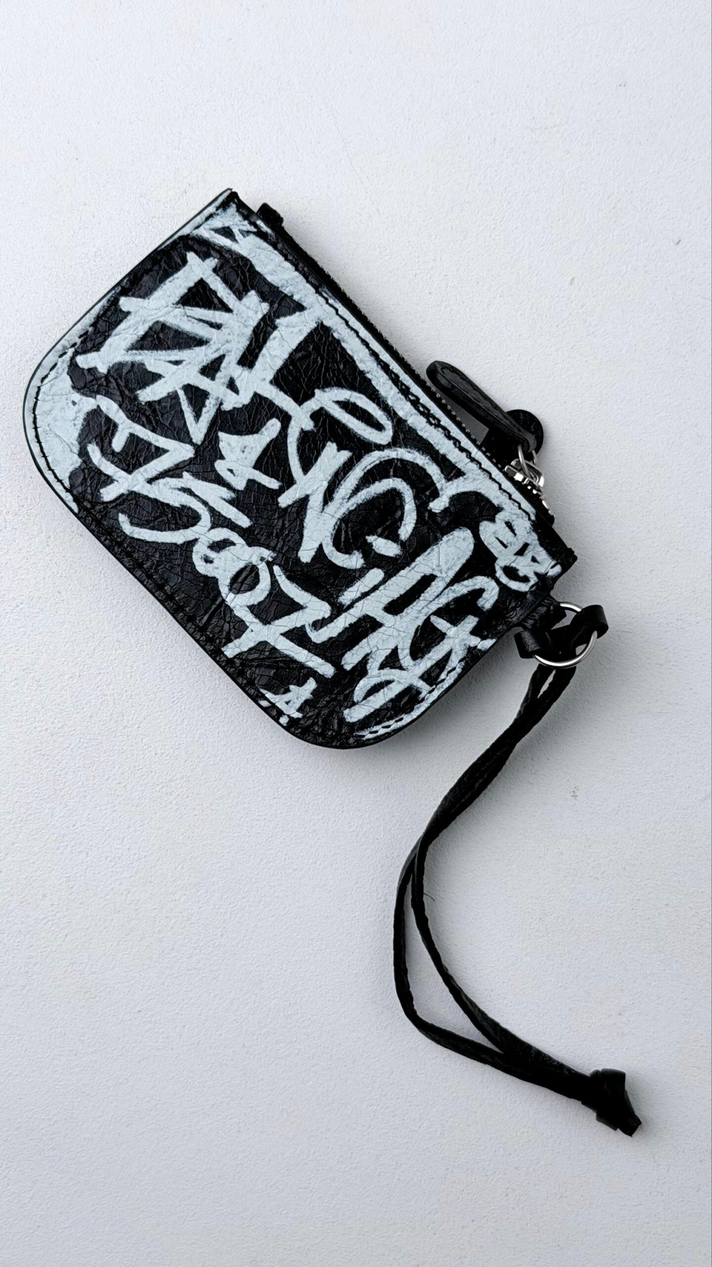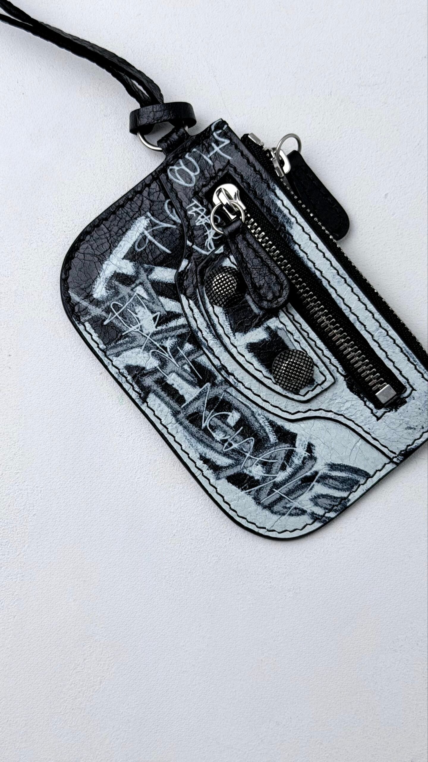 Ефектний аксесуар, що поєднує в собі архівний дизайн лінійки Neo Classic та зухвалий вуличний стиль. Модель виконана з фактурної шкіри з контрастним принтом у стилі графіті, що робить кожен виріб візуально унікальним. Можна вішати на сумочки як аксесуар.