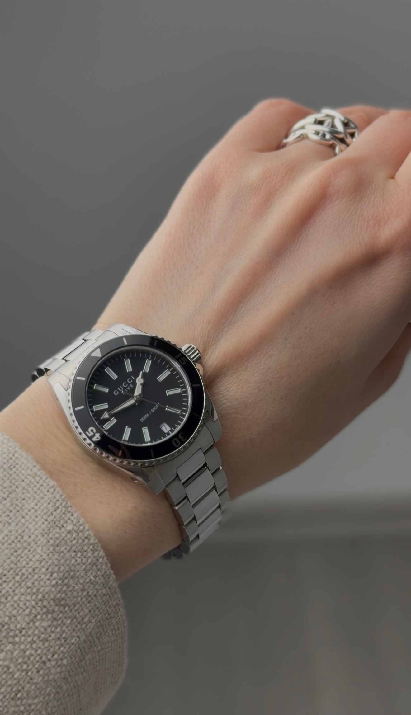 Модель Dive YA136403 — це про характер, лаконічність і впевненість у деталях. Чорний циферблат у поєднанні зі сталевим браслетом виглядає стримано, але водночас дуже ефектно — той самий баланс sport & luxury, який сьогодні так цінують у моді.