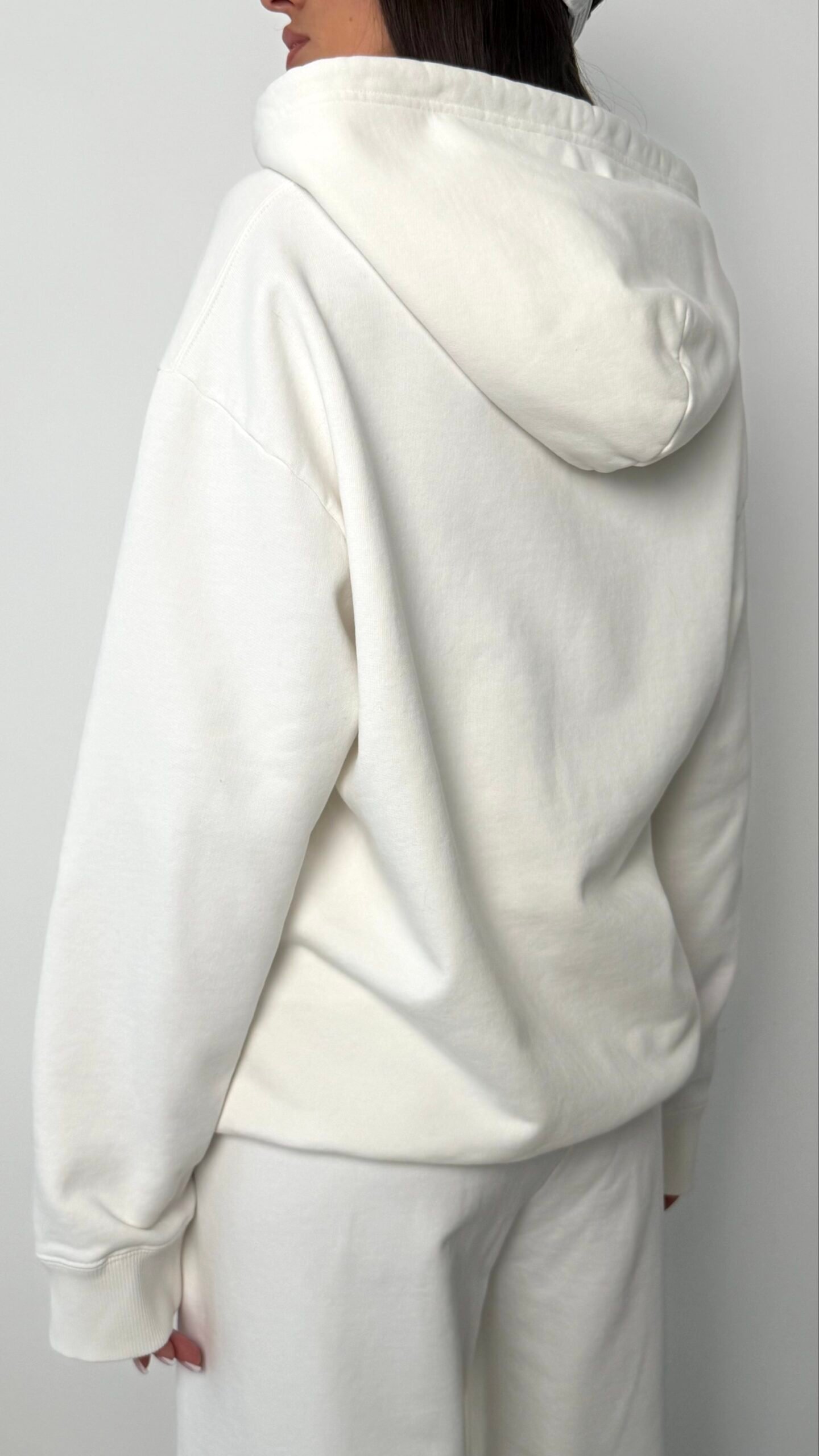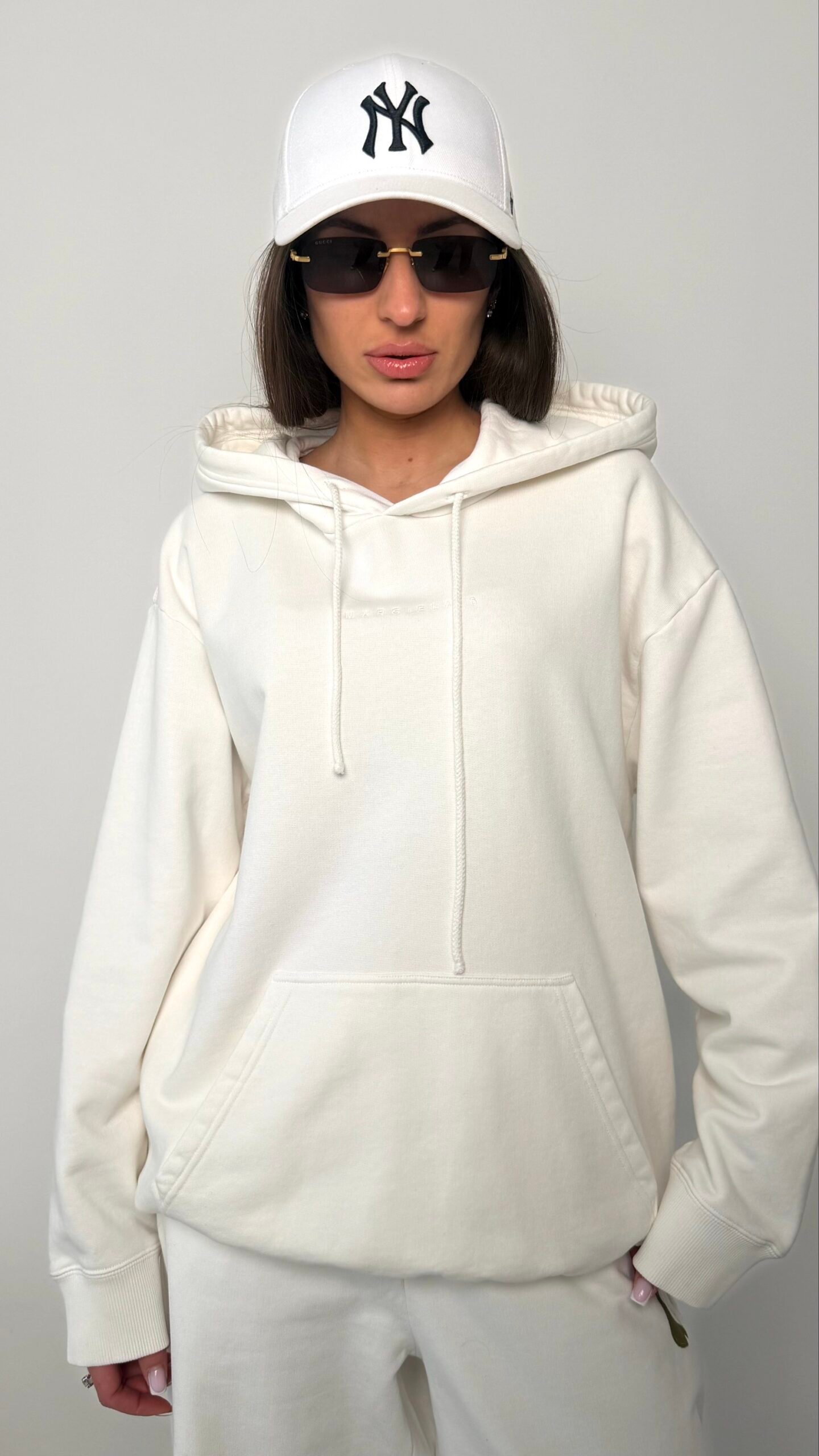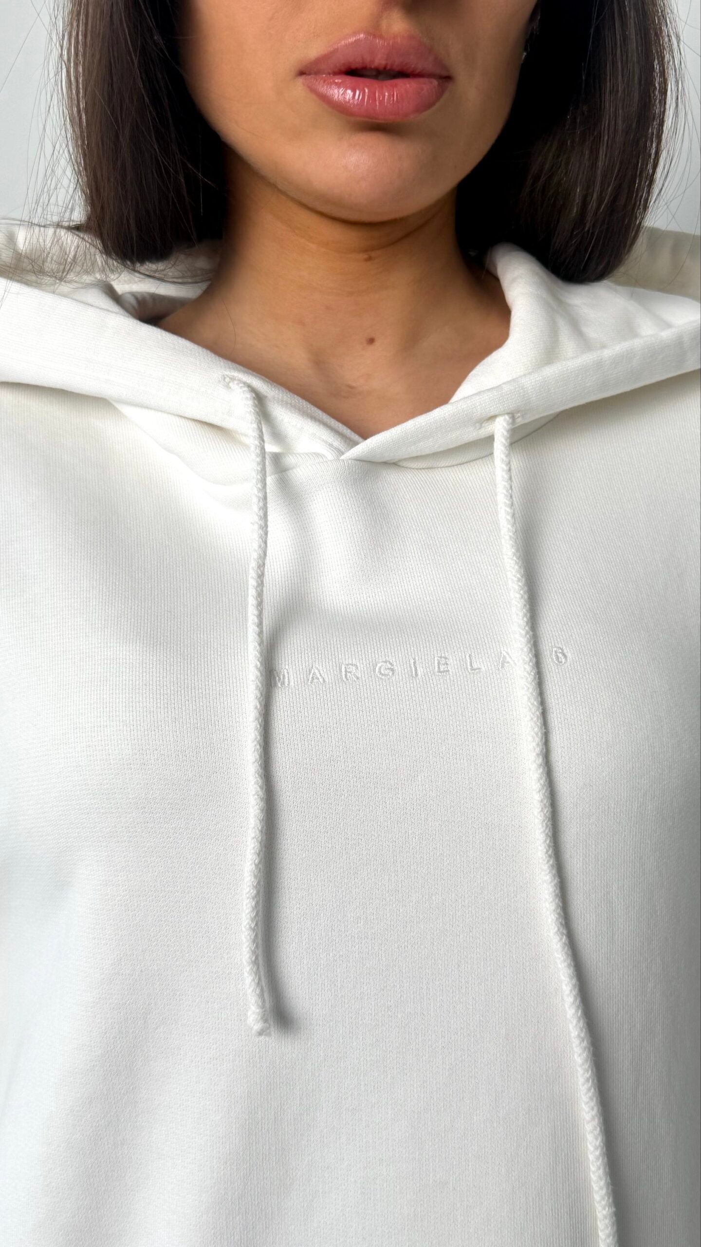 Додайте до свого гардеробу елемент деконструйованої розкоші від MM6 Maison Margiela. Це класичне худі в кольорі “off-white” (молочний) втілює фірмовий підхід бренду до базових речей: поєднання максимального комфорту, вільного силуету та концептуальних деталей.Ця модель — ідеальна база для багатошарових образів. Поєднуйте її з широкими штанами або з денімом та кепкою для створення актуального street-style луку. Завдяки високій якості бавовни, худі чудово тримає форму та забезпечує комфорт протягом усього дня.