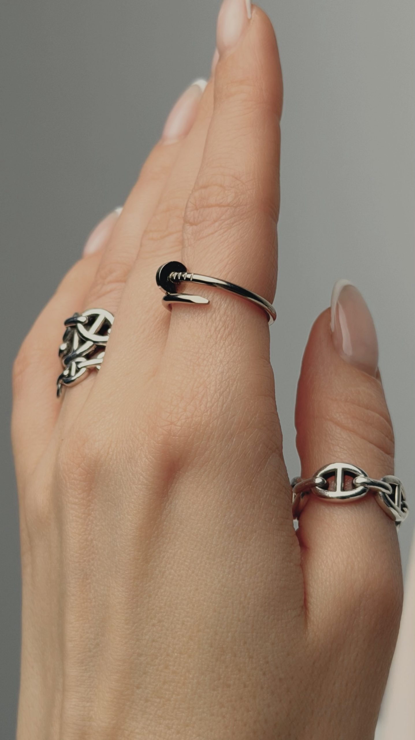 Натхненна формою звичайного цвяха, каблучка вирізняється чистими лініями та витонченим силуетом.