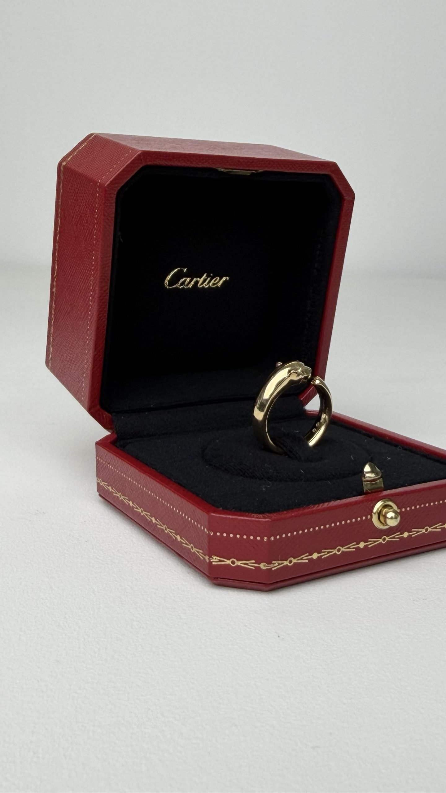 Легендарна ікона ювелірного дому Cartier — кільце Panthère, що втілює силу, грацію та впевненість. Створене з жовтого золота, воно має впізнавану форму голови пантери, яка обвиває палець у витонченій лінії. Стиль, що поєднує елегантність і динаміку, робить цю прикрасу безпомилково впізнаваною. Ідеально пасує як до вечірніх образів, так і до повсякденного мінімалізму