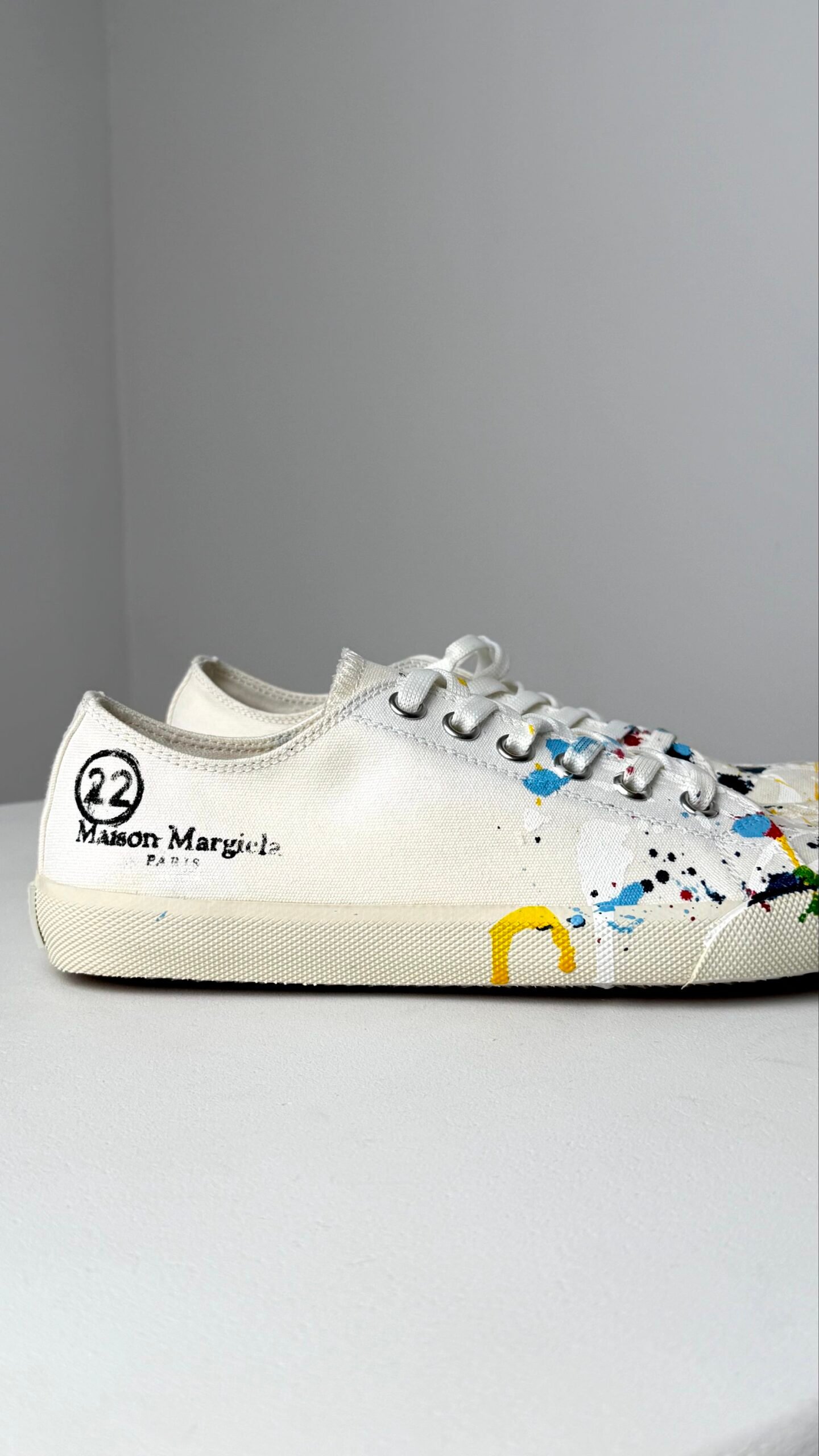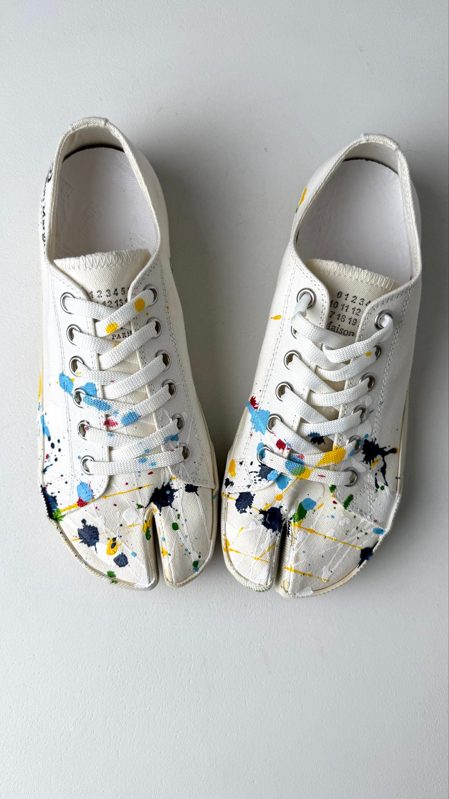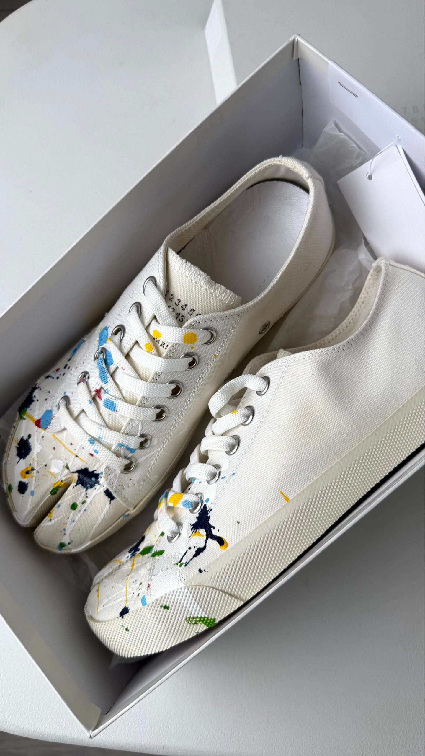 Додайте до свого гардероба елемент сучасного мистецтва з культовими кедами від Maison Margiela. Ця модель поєднує в собі авангардний дизайн та класичний силует, створюючи неповторний образ у стилі деконструктивізму. Впізнаваний розділений носок, натхненний традиційними японськими шкарпетками XV століття — візитна картка бренду. Ці кеди — це більше ніж взуття, це маніфест індивідуальності. Вони ідеально підходять для тих, хто цінує концептуальну моду та хоче виділитися. Кеди легко поєднуються як з мінімалістичними джинсами, так і з акцентними дизайнерськими речами.