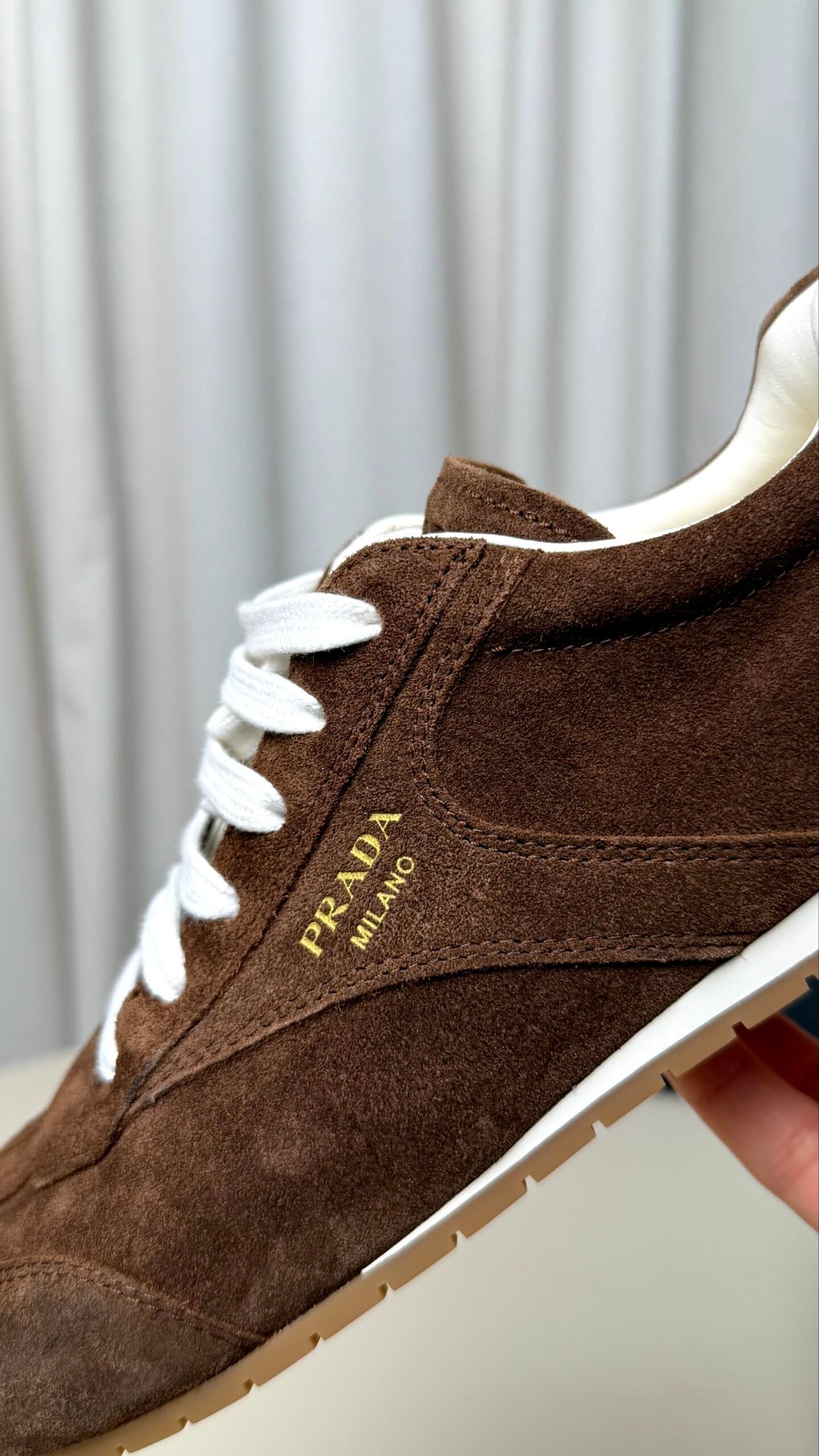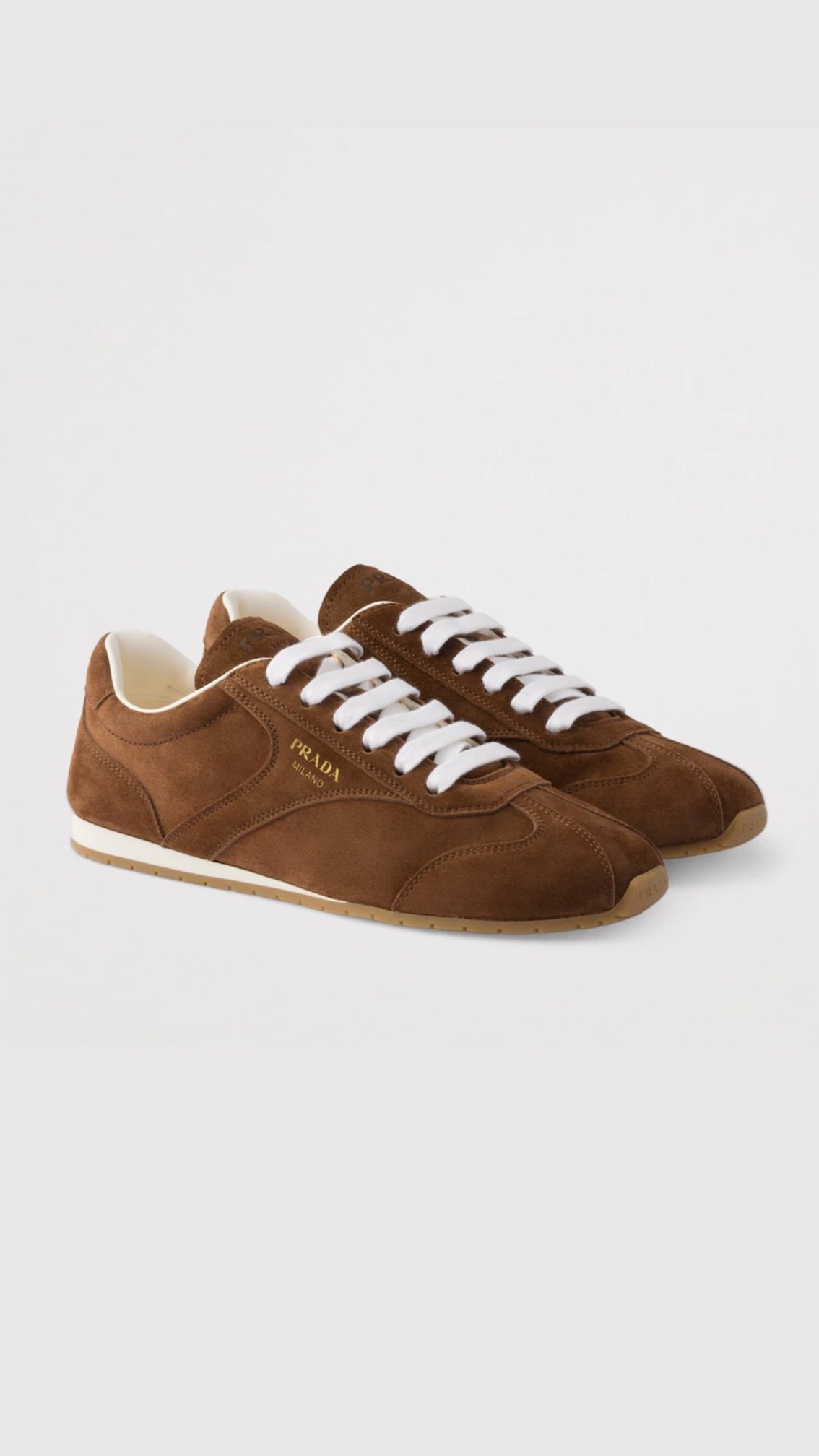 Ці кеди від Prada — втілення стриманої розкоші та спортивної елегантності. Модель виконана в насиченому шоколадному відтінку (Tobacco), який ідеально інтегрується як у повсякденний гардероб, так і в образи в стилі smart-casual.