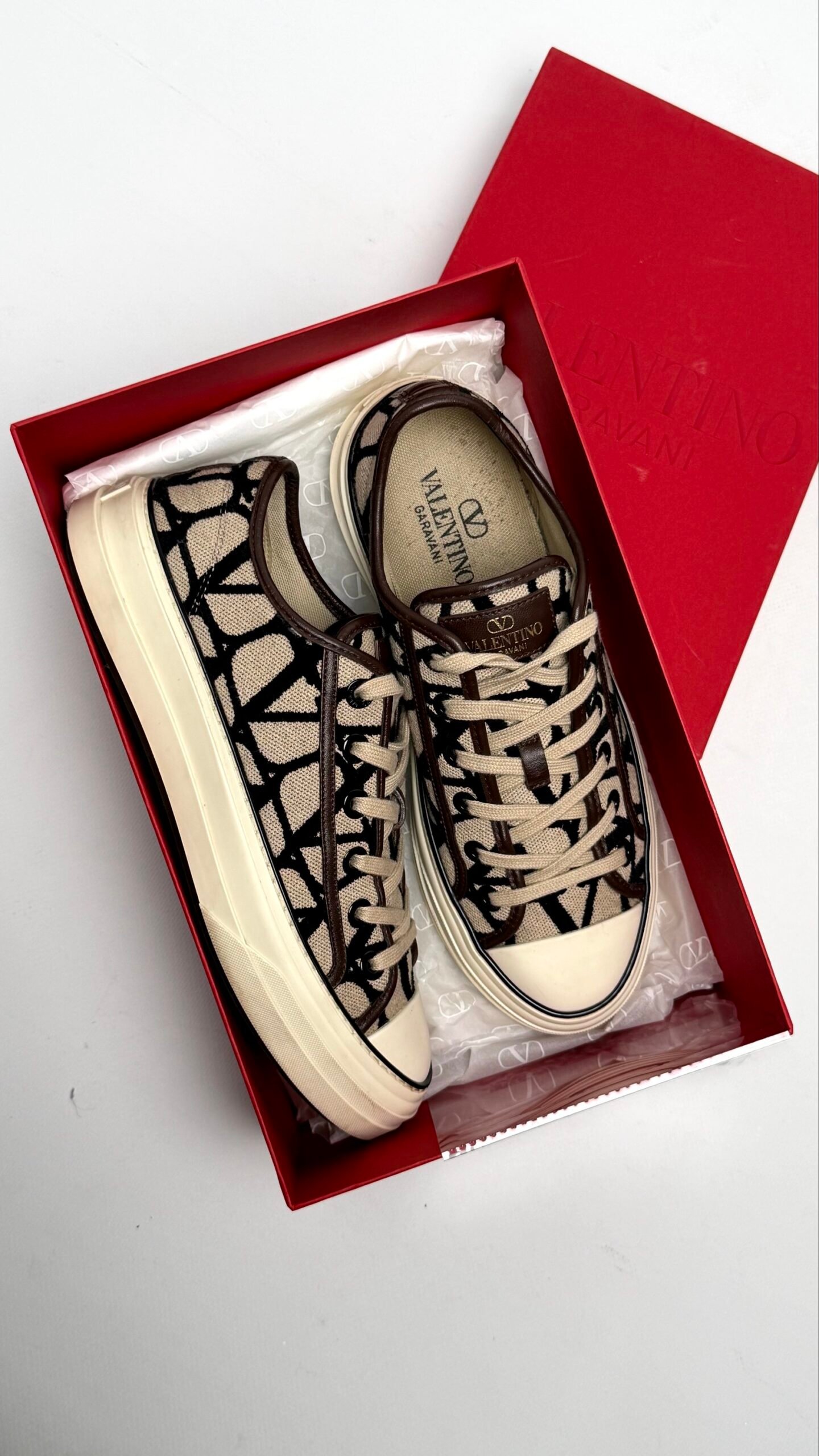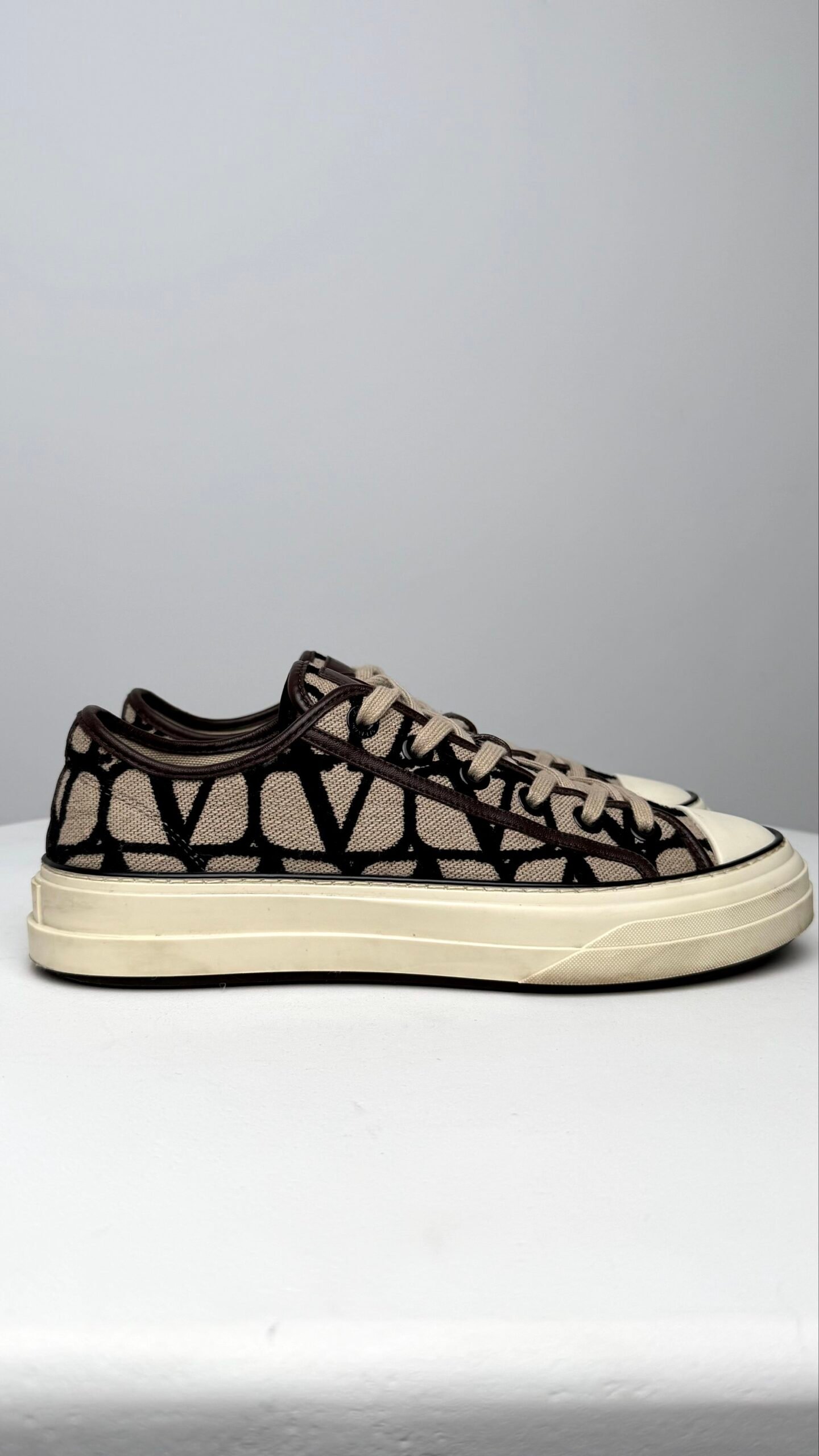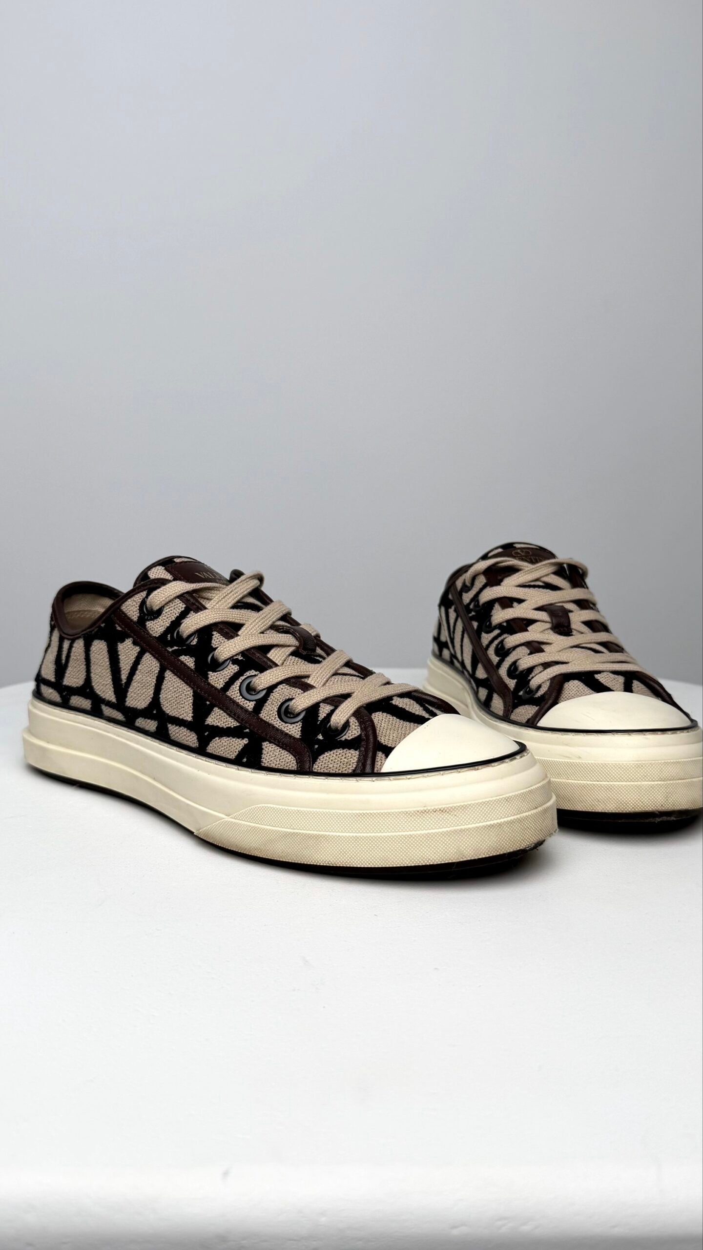 Ці низькі кеди від Valentino Garavani — ідеальне поєднання класичного силуету та сучасного люксового дизайну. Модель вирізняється впізнаваним суцільним візерунком VLogo, що створює графічний та елегантний образ, який легко доповнить як повсякденний, так і більш вишуканий гардероб.