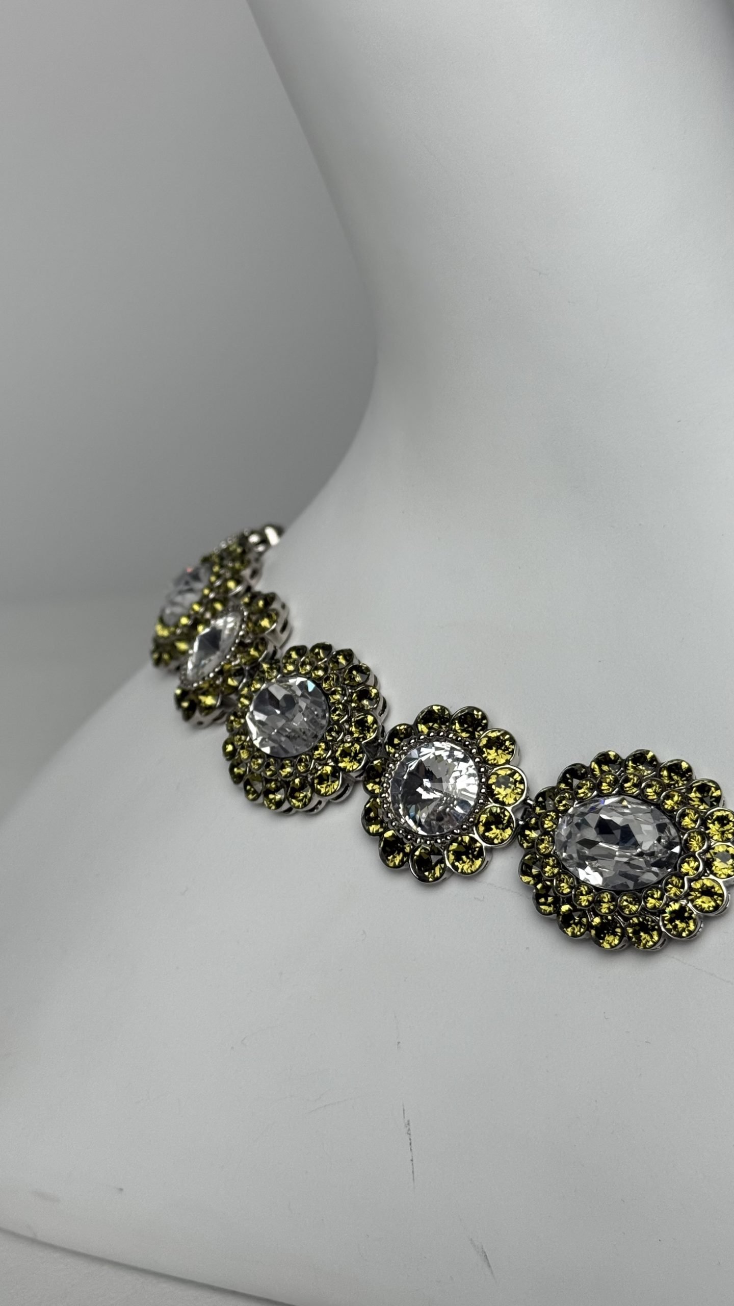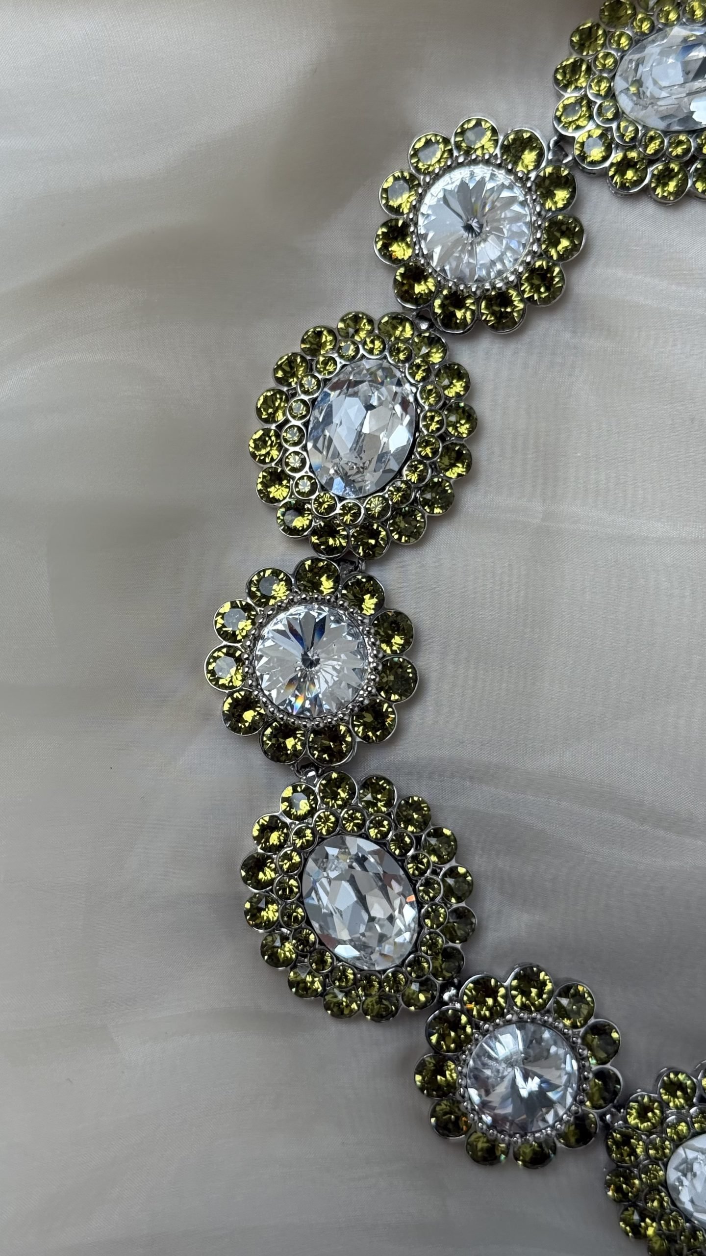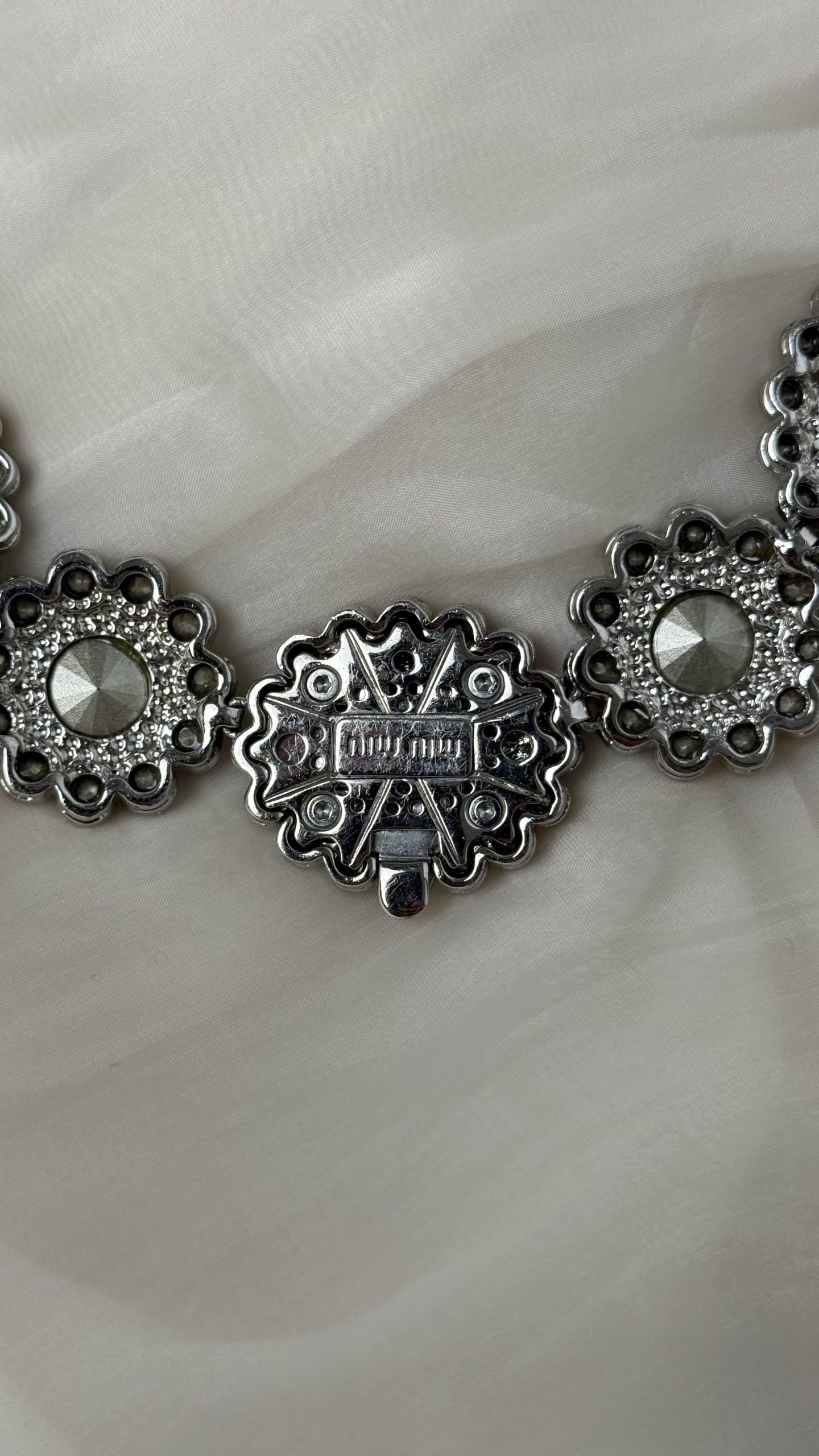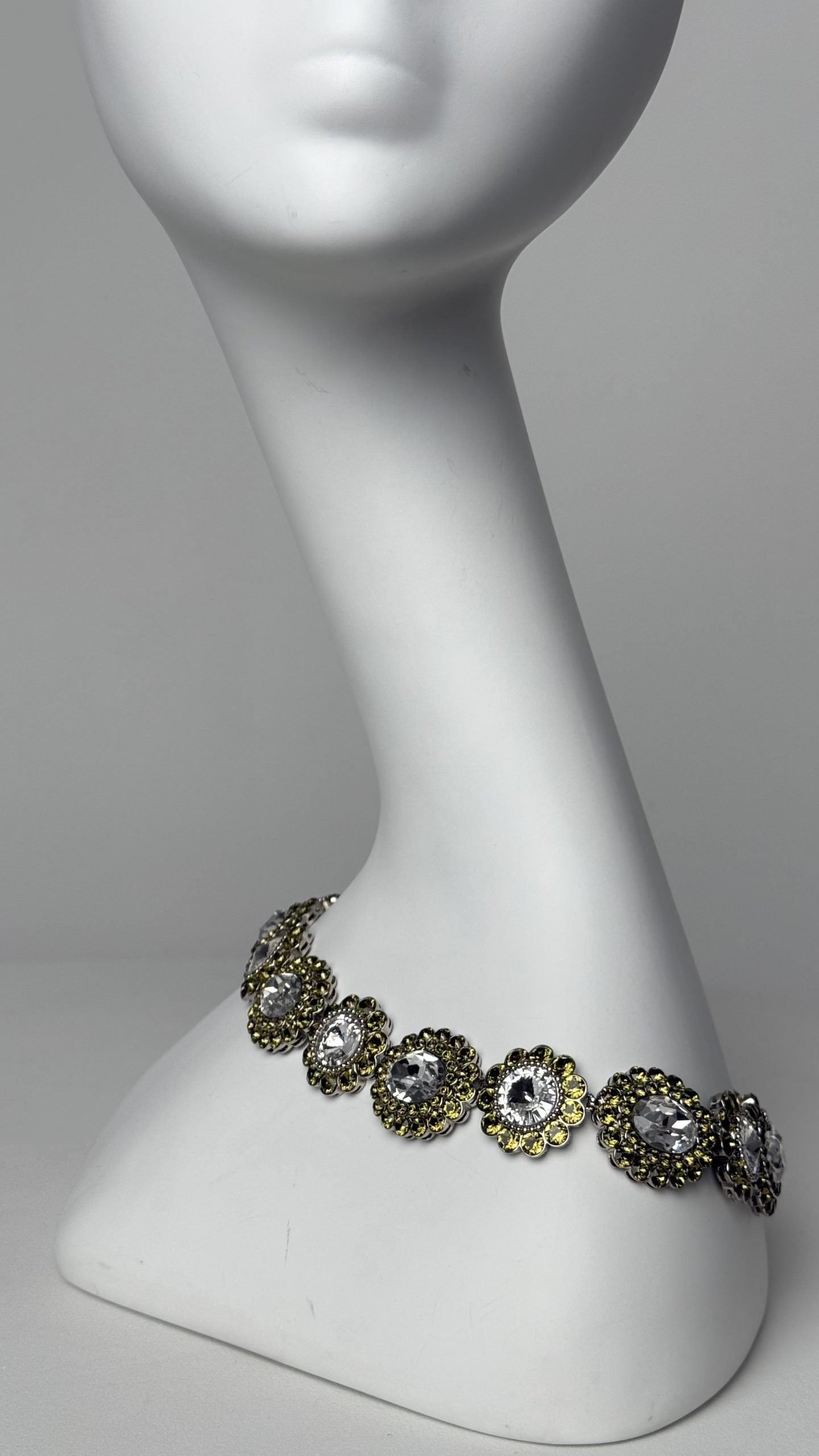 Прикрасa, що миттєво привертає увагу. Кольє складається з ряду вінтажних медальйонів з об’ємним декором і великими прозорими каменями. Ідеально доповнить як вечірні образи, так і мінімалістичні total-black аутфіти