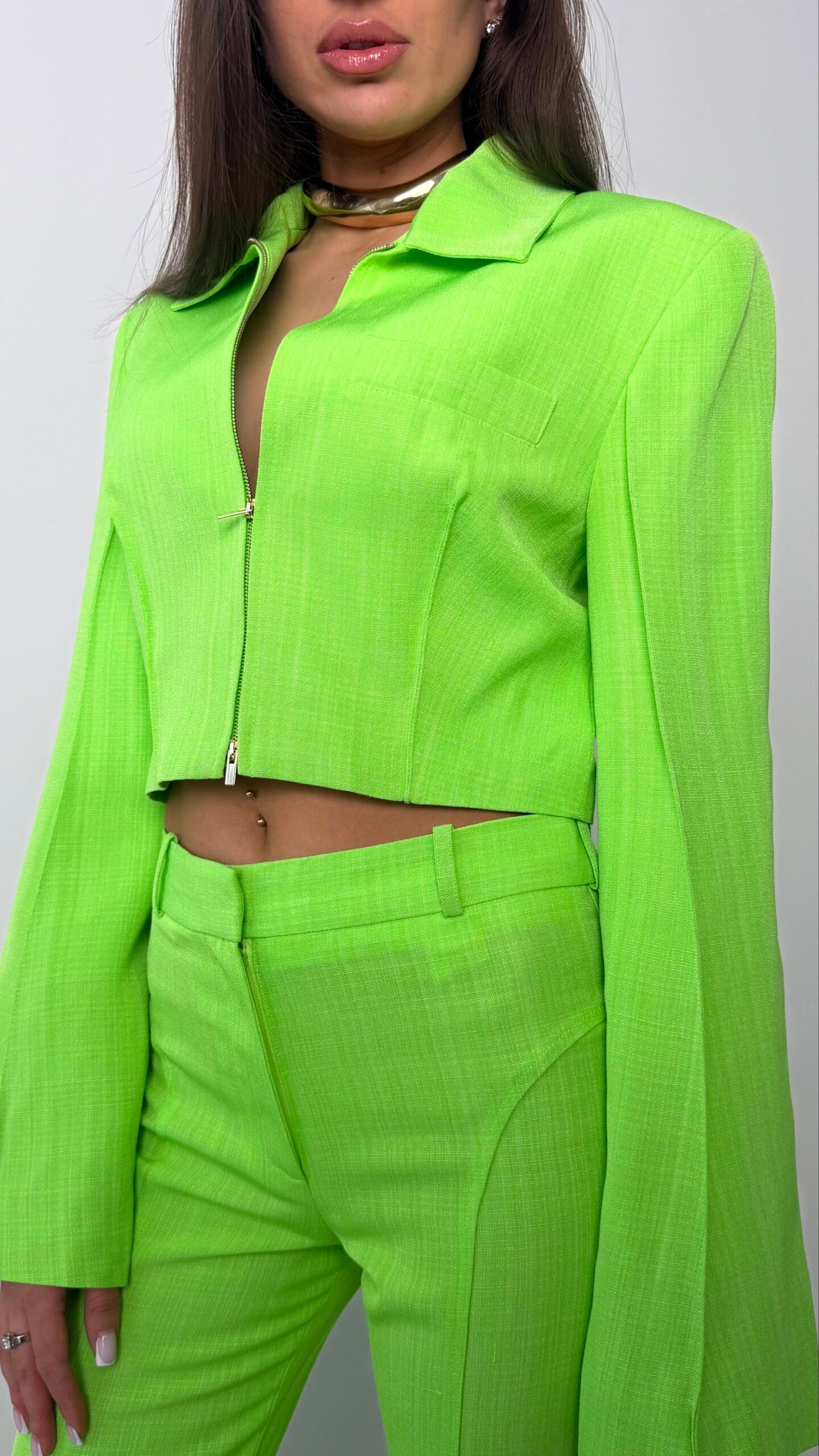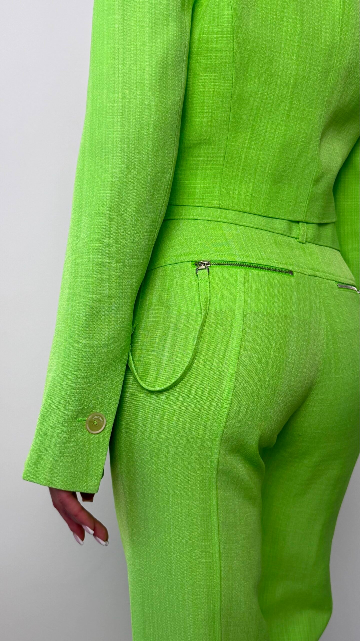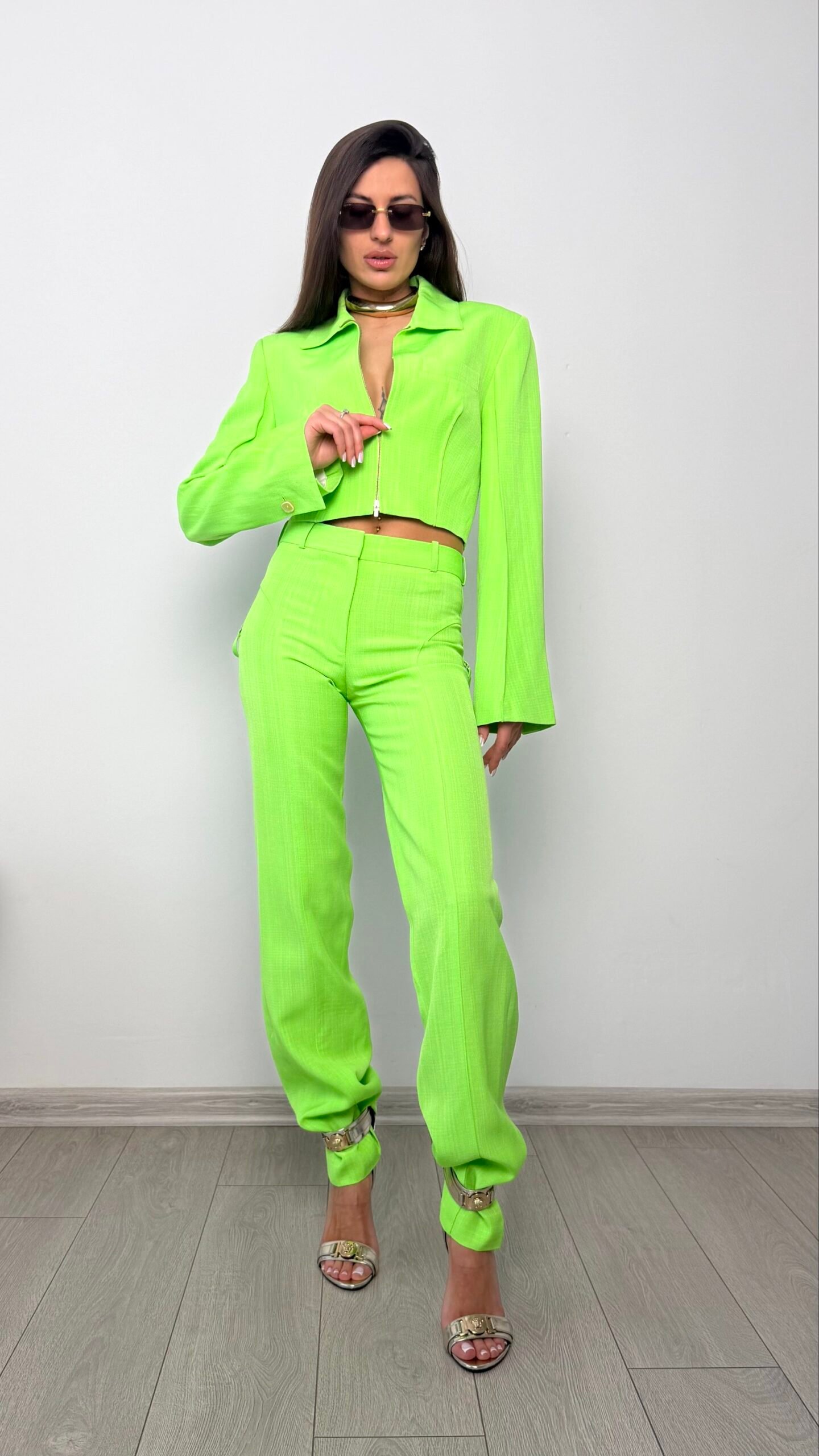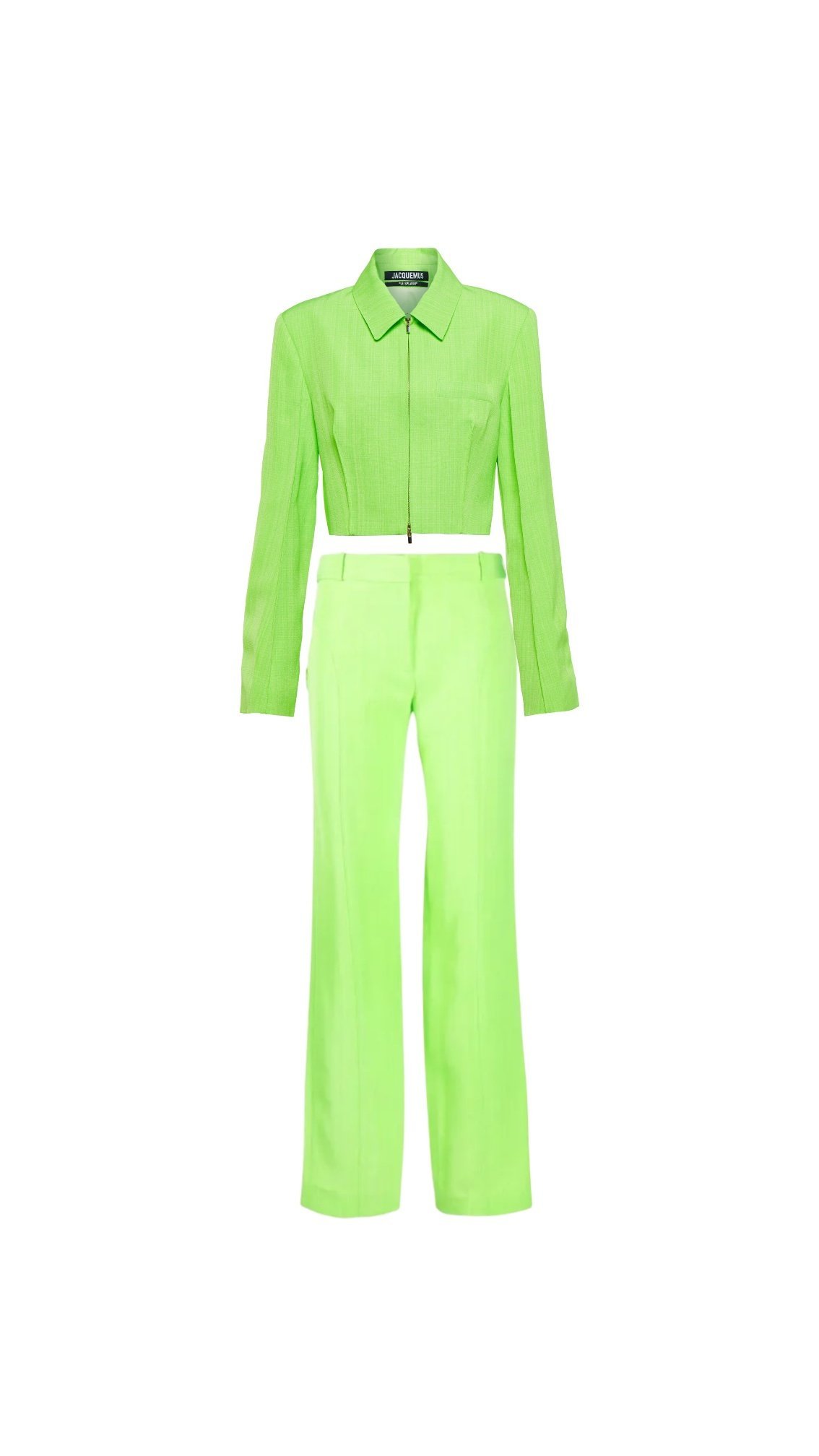 Сміливий, архітектурний та безкомпромісно стильний — цей костюм від Jacquemus створений для тих, хто звик бути в центрі уваги. Виконаний у соковитому неоновому відтінку, він поєднує в собі фірмовий мінімалізм бренду та зухвалий характер літніх колекцій.