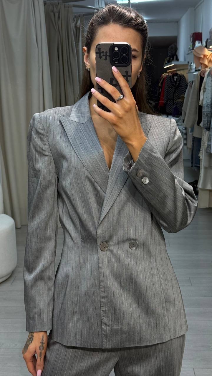 Костюм Gianfranco Ferre із тонкої 100% вовни. Елегантний сірий відтінок, приталений жакет на дві ґудзики та прямі класичні штани