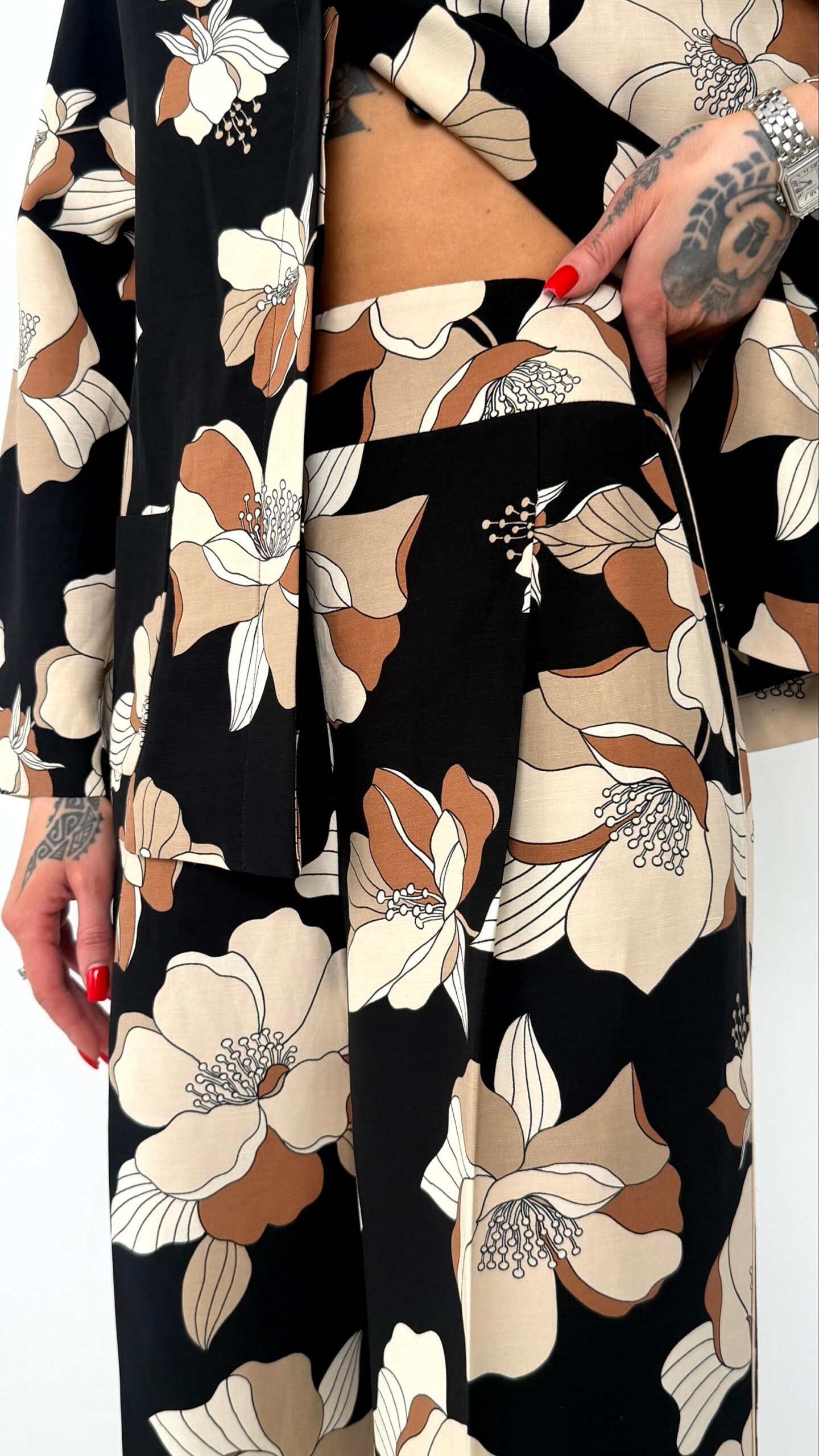 Додайте витонченості своєму гардеробу з цим розкішним комплектом від легендарного італійського бренду Max Mara. Костюм поєднує в собі розслаблений піжамний шик та класичну елегантність, що робить його ідеальним вибором як для світських заходів, так і для стильних міських образів. Жакет вільного крою з акцентним шкіряним поясом, що витончено підкреслює талію. Штани — трендові палаццо з високою посадкою, які візуально подовжують силует. Носіть комплект разом для створення ефектного total look, або розділяйте: поєднуйте штани з базовим топом, а жакет — з улюбленими джинсами чи однотонною сукнею-комбінацією.