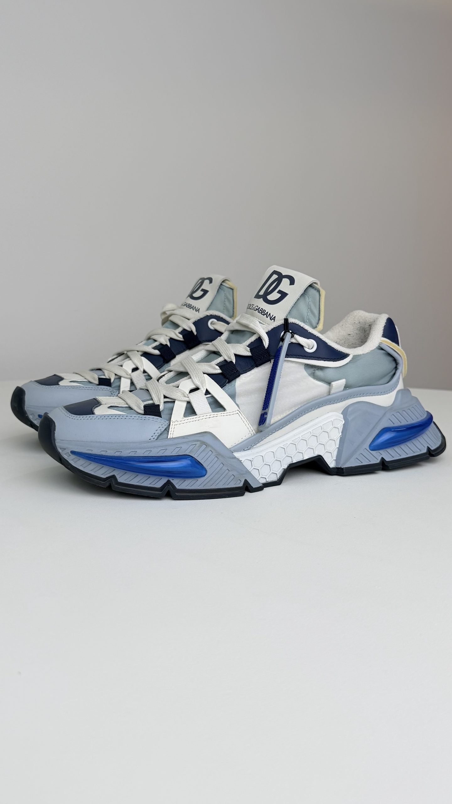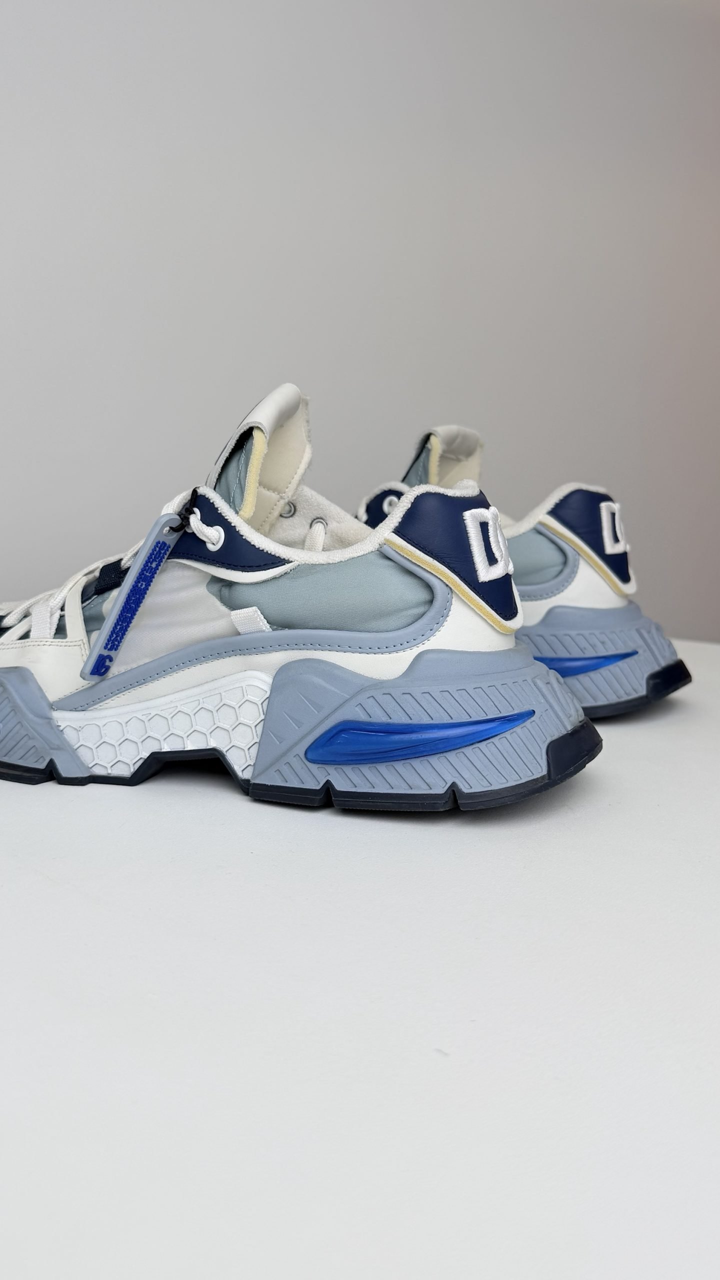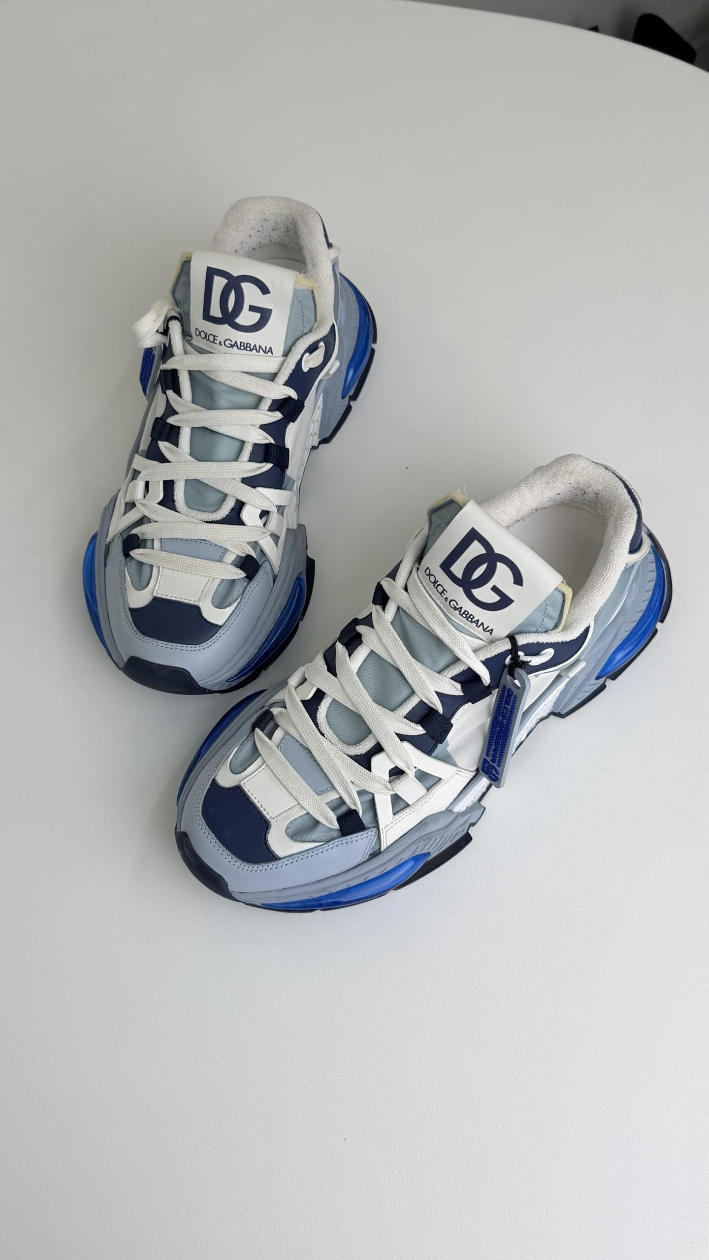 Масивні кросівки в стилі luxury streetwear із характерним логотипом Dolce & Gabbana на язичку. Виконані з комбінації гладкої шкіри, технічної тканини та замші