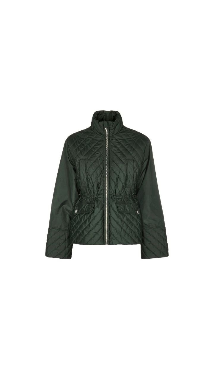 Ефектна та функціональна куртка від культового скандинавського бренду Ganni. Ця модель поєднує в собі практичність міського стилю та унікальні дизайнерські деталі, які роблять силует виразним і жіночним. Унікальна фігурна прошивка створює цікавий візуальний ритм та додає виробу об’єму. Вбудована куліска дозволяє регулювати силует, створюючи витончений акцент на талії або залишаючи крій більш вільним.