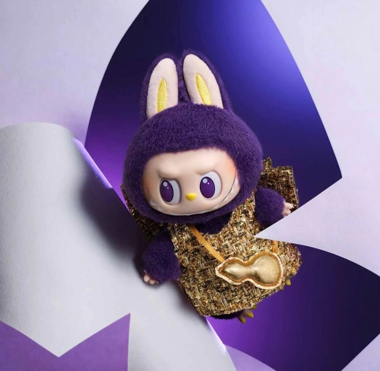Labubu Royal Night Edition — загадковий і витончений герой у глибокому фіолетовому вбранні, який ніби з’явився з чарівного вечірнього світу. М’який плюшевий костюм із золотистими деталями й сумочкою у формі горіха створює ефект розкоші та театральності. Колекційна фігурка, що ідеально підкреслює стиль і настрій сучасного арт-той світу.