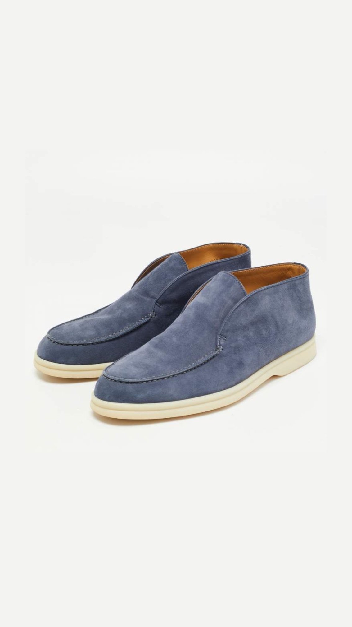 Модель виконана з надзвичайно м’якої натуральної замші у благородному блакитному відтінку. Лаконічний силует, мінімум деталей і фірмова світла підошва забезпечують комфорт протягом усього дня, зберігаючи бездоганний вигляд образу.