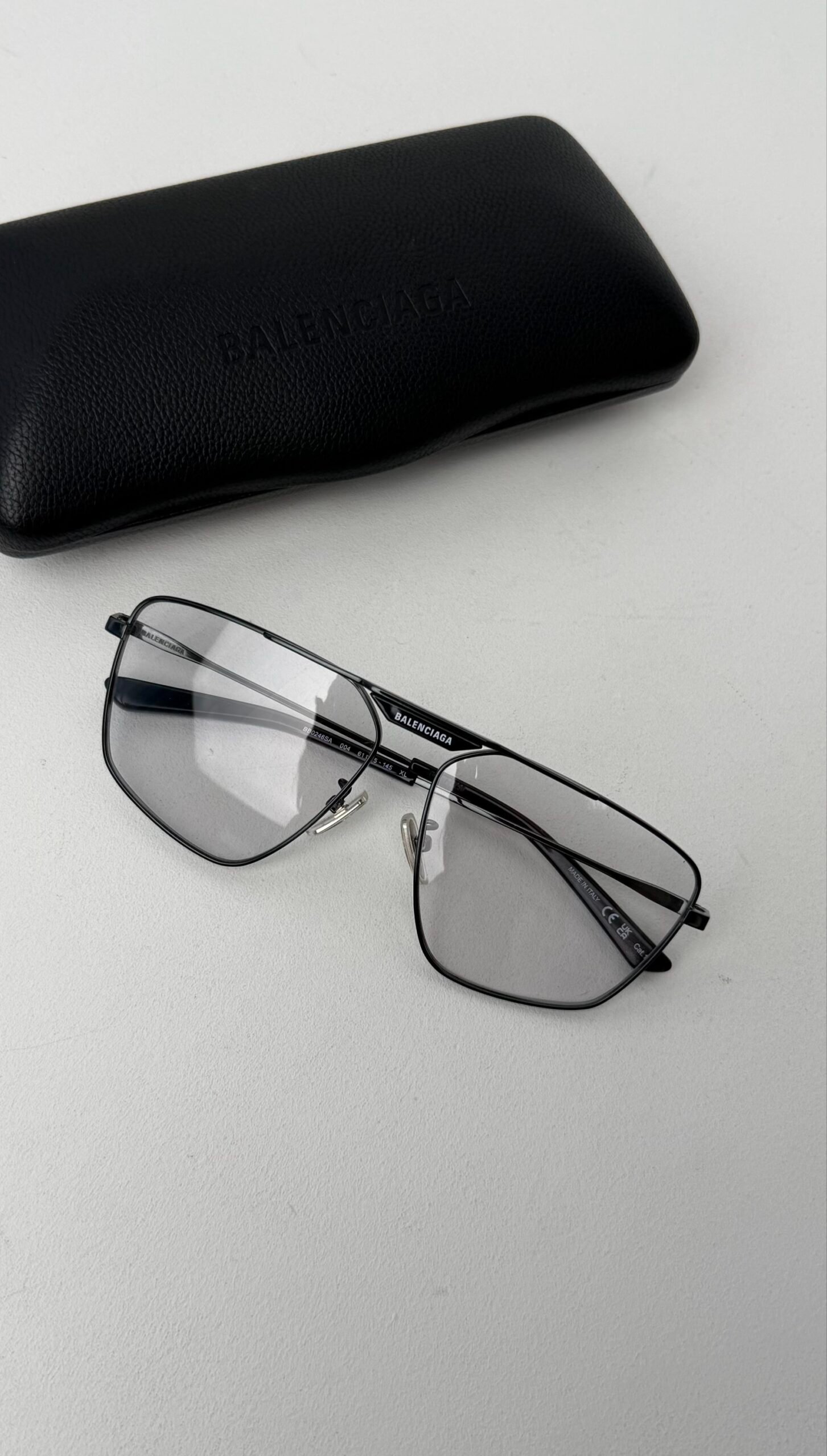 Хочеш додати гостроти своєму луку? Ці окуляри — база для тих, хто стежить за трендами. Balenciaga відмовилися від м’яких ліній на користь зухвалої геометрії. Прозорі лінзи та тонкий графітовий метал роблять їх ідеальним доповненням до худі, оверсайз піджаків або шкіряних курток.
