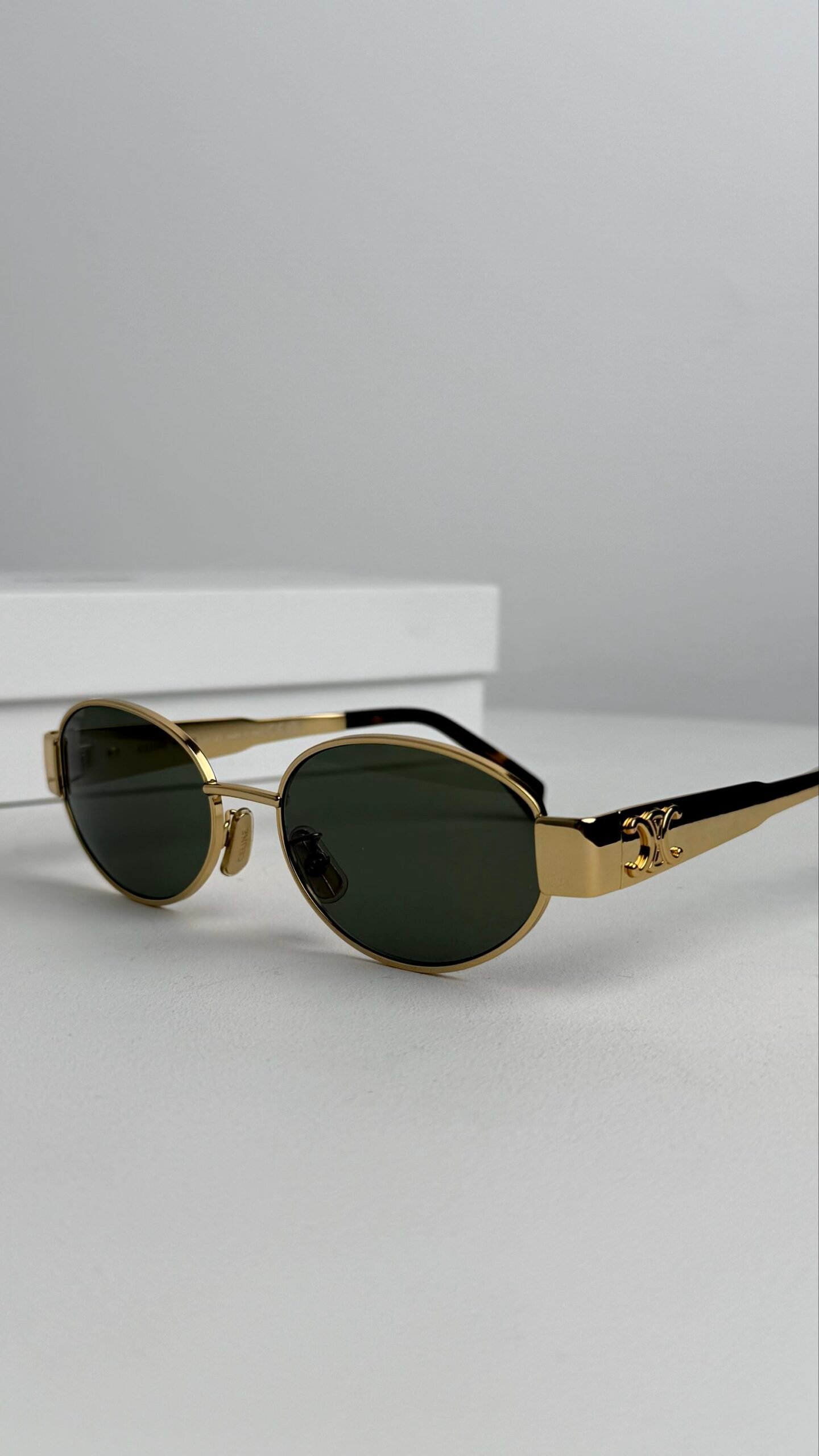 Втілення сучасного паризького шику. Ця модель сонцезахисних окулярів Celine поєднує в собі делікатну овальну форму та масивні золотисті елементи, створюючи ідеальний баланс між вінтажним натхненням та футуристичним блиском.