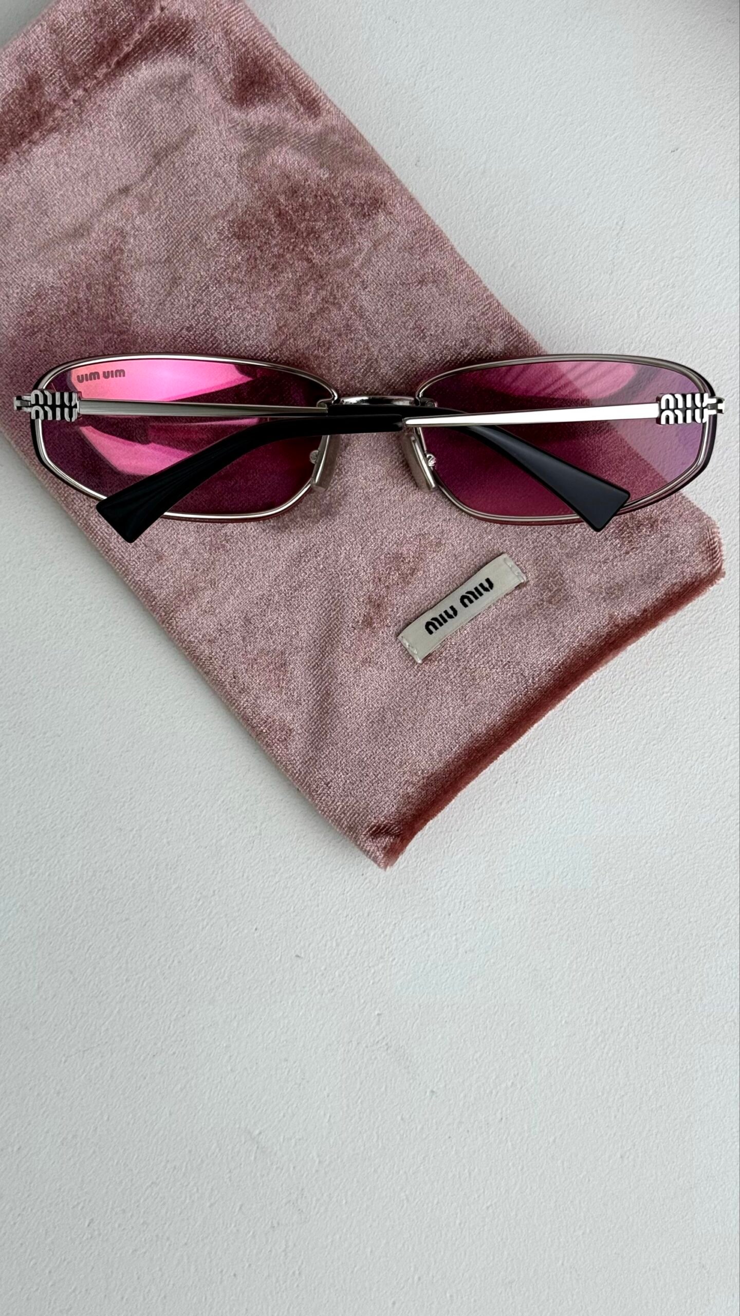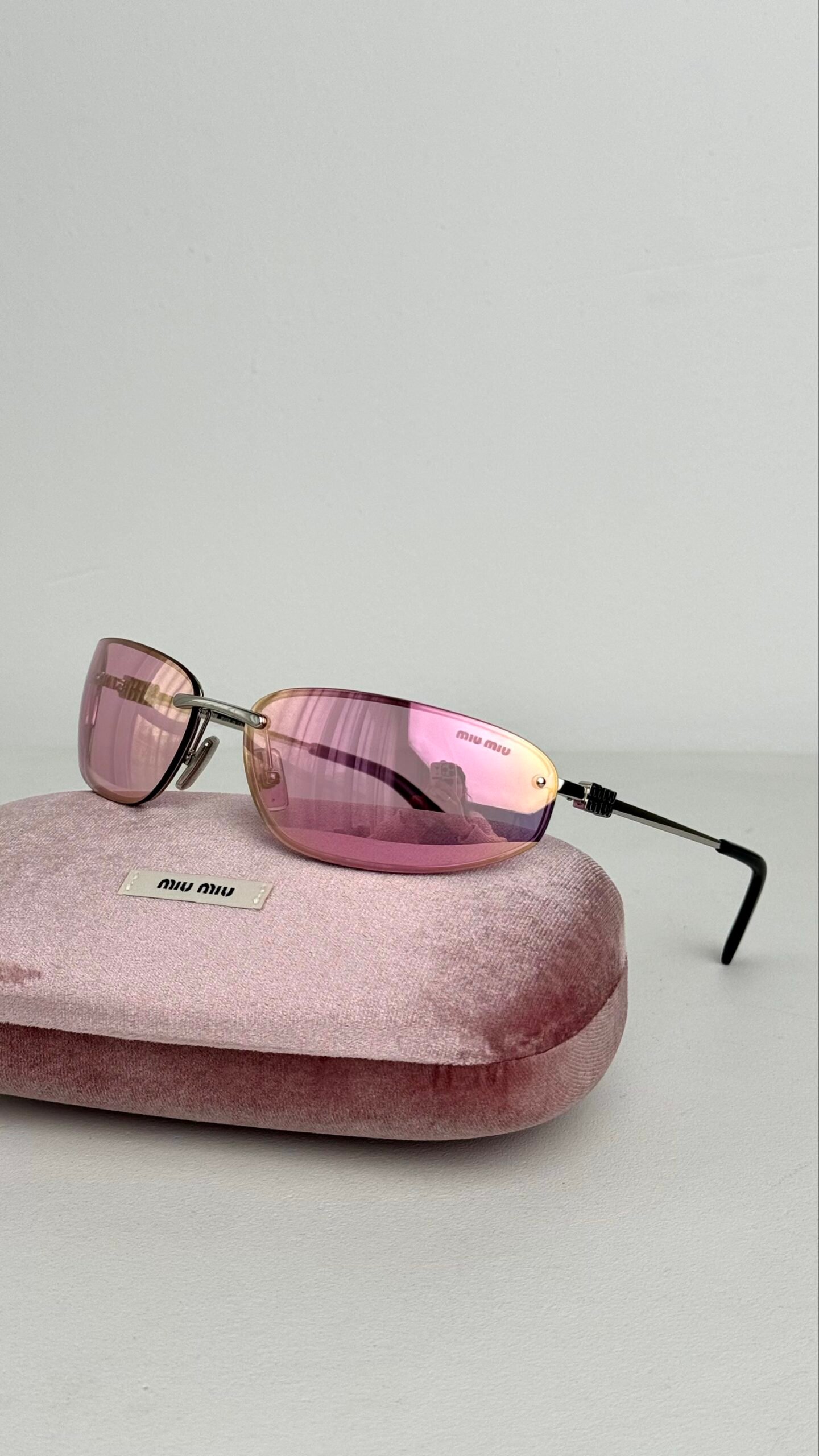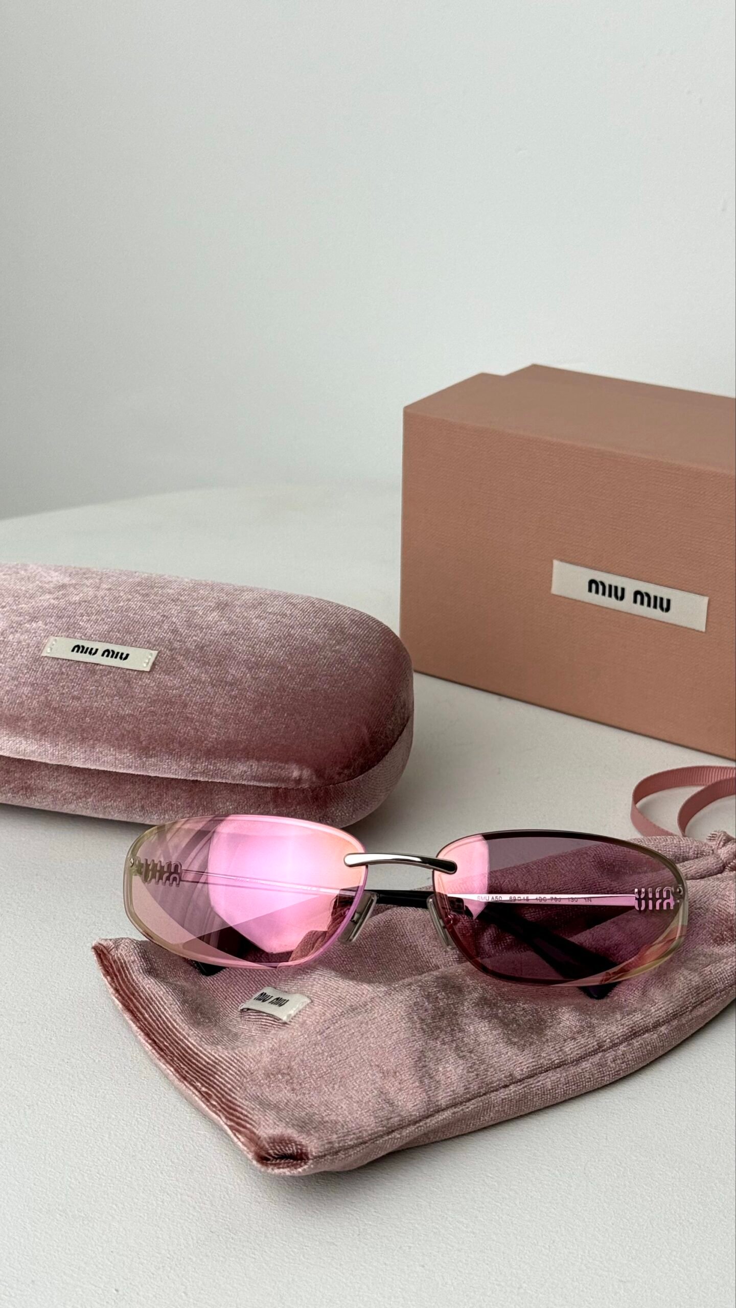 Додайте своєму образу нотку витонченого гламуру з культовими окулярами від Miu Miu. Ця модель поєднує в собі футуристичну естетику нульових та сучасну елегантність. Напівпрозорі рожеві лінзи з дзеркальним напиленням не лише захищають очі, а й створюють неповторний візуальний акцент.