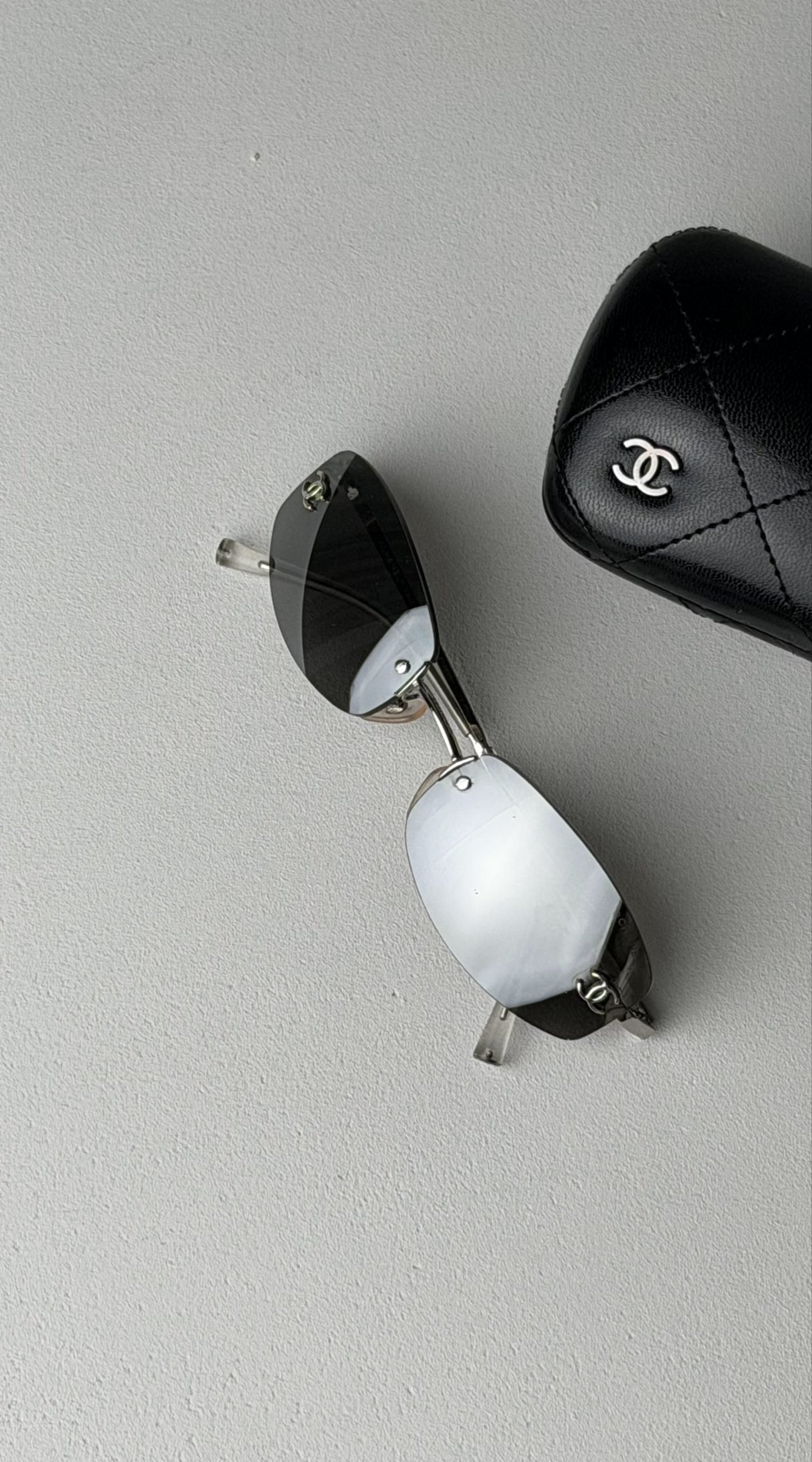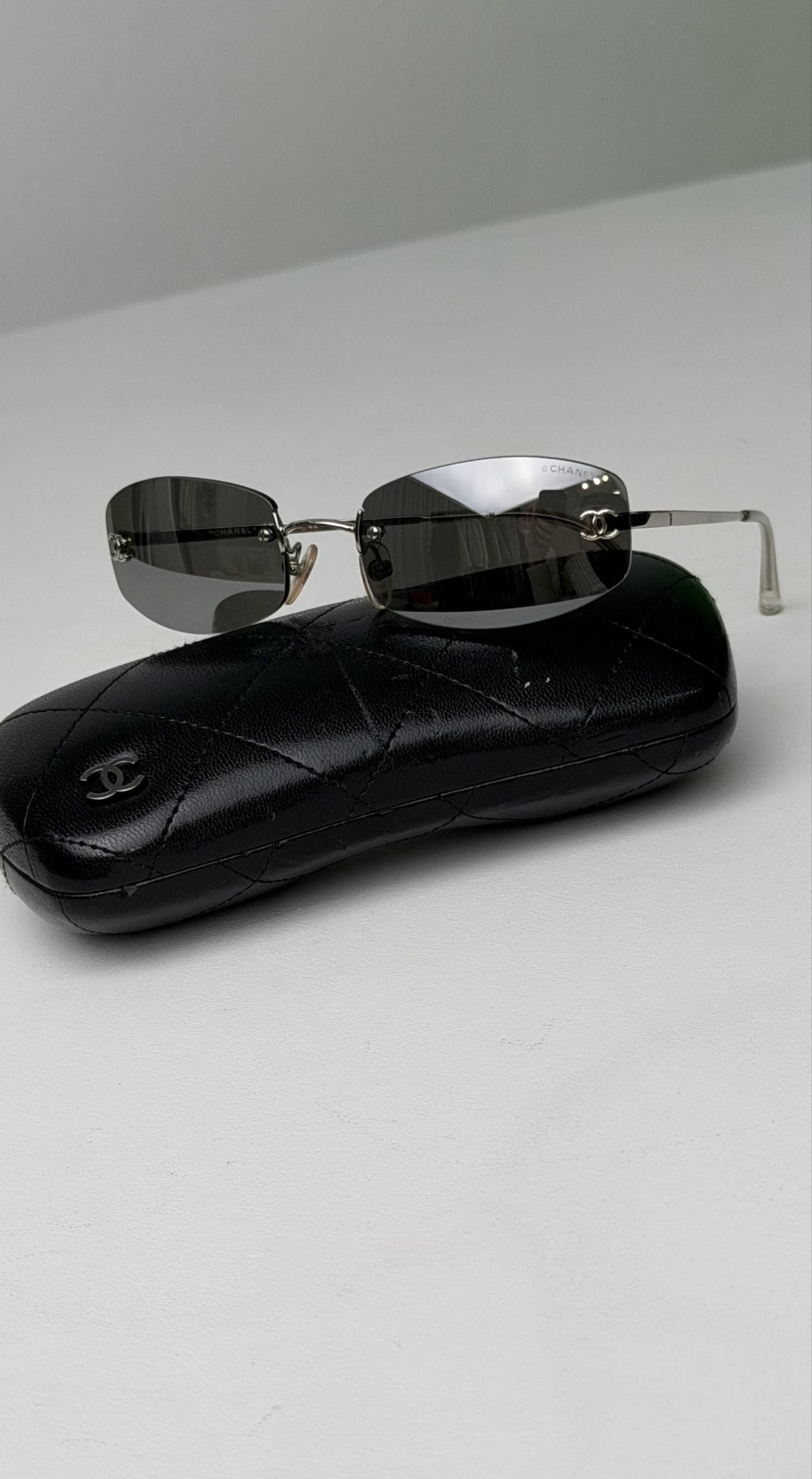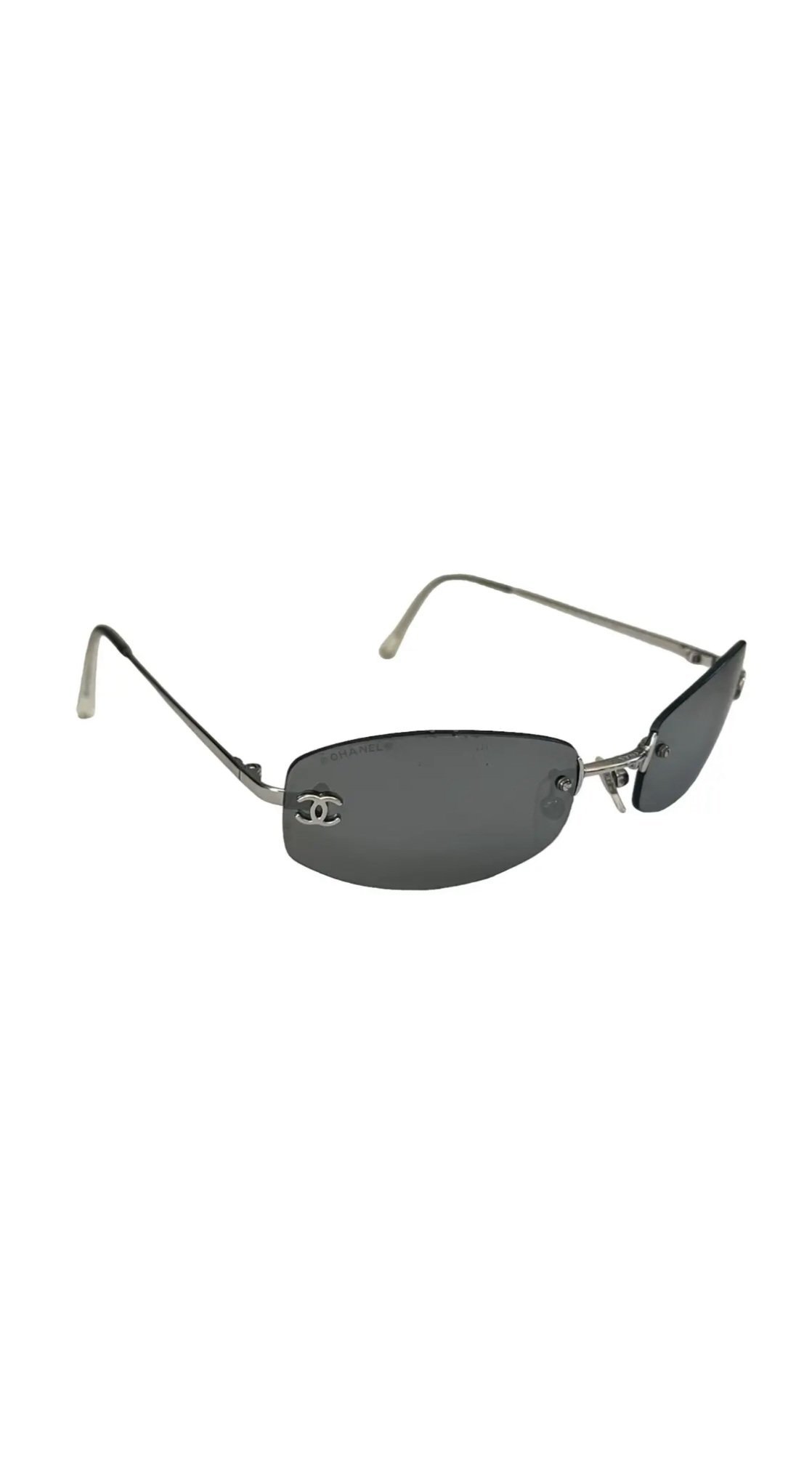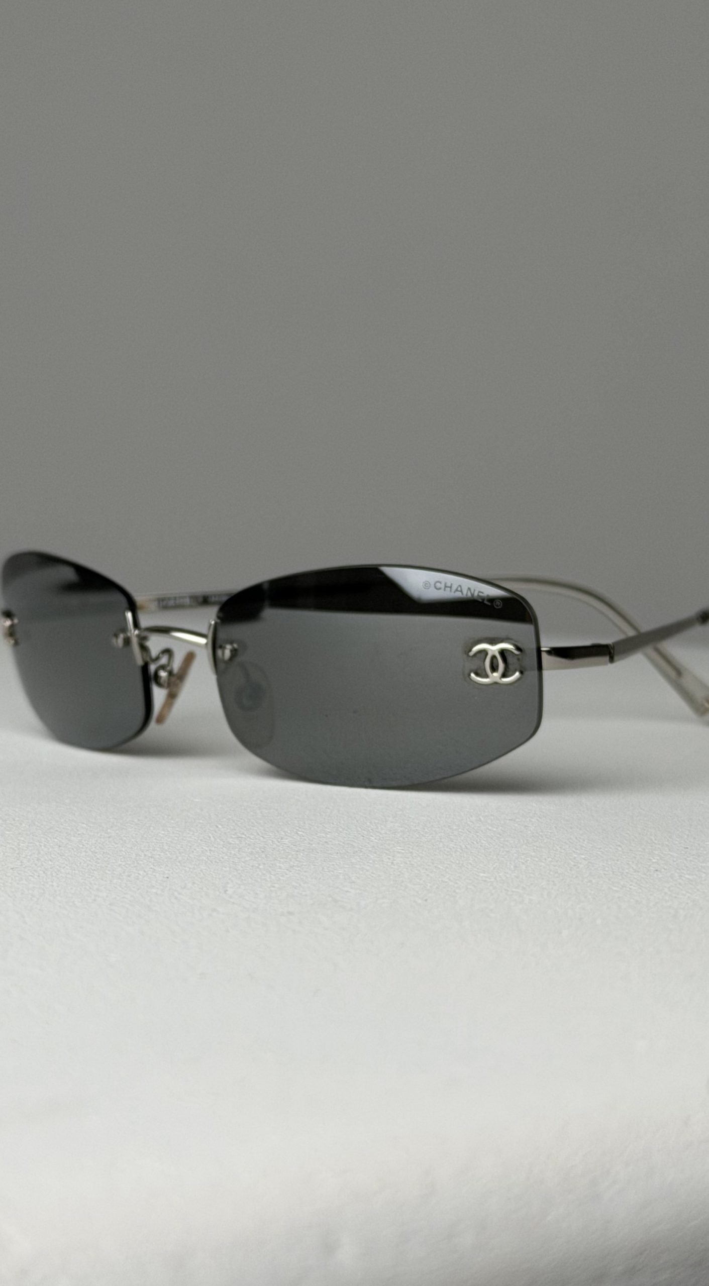 Стильні вінтажні сонцезахисні окуляри Chanel, які втілюють естетику нульових.Окуляри вирізняються лаконічним дизайном без оправи, що робить їх практично невагомими на обличчі, та фірмовим брендингом, який підкреслює статус власника.