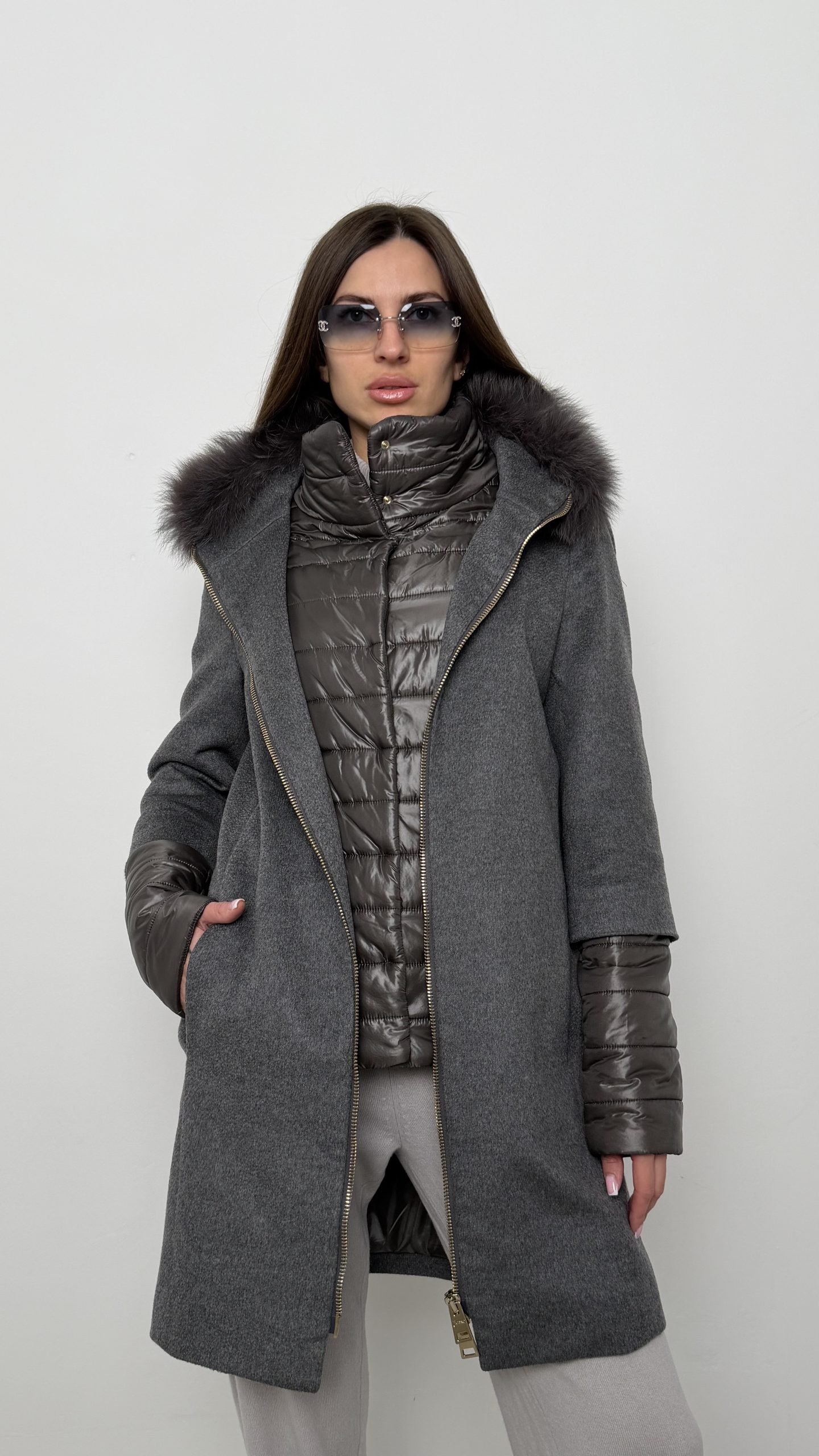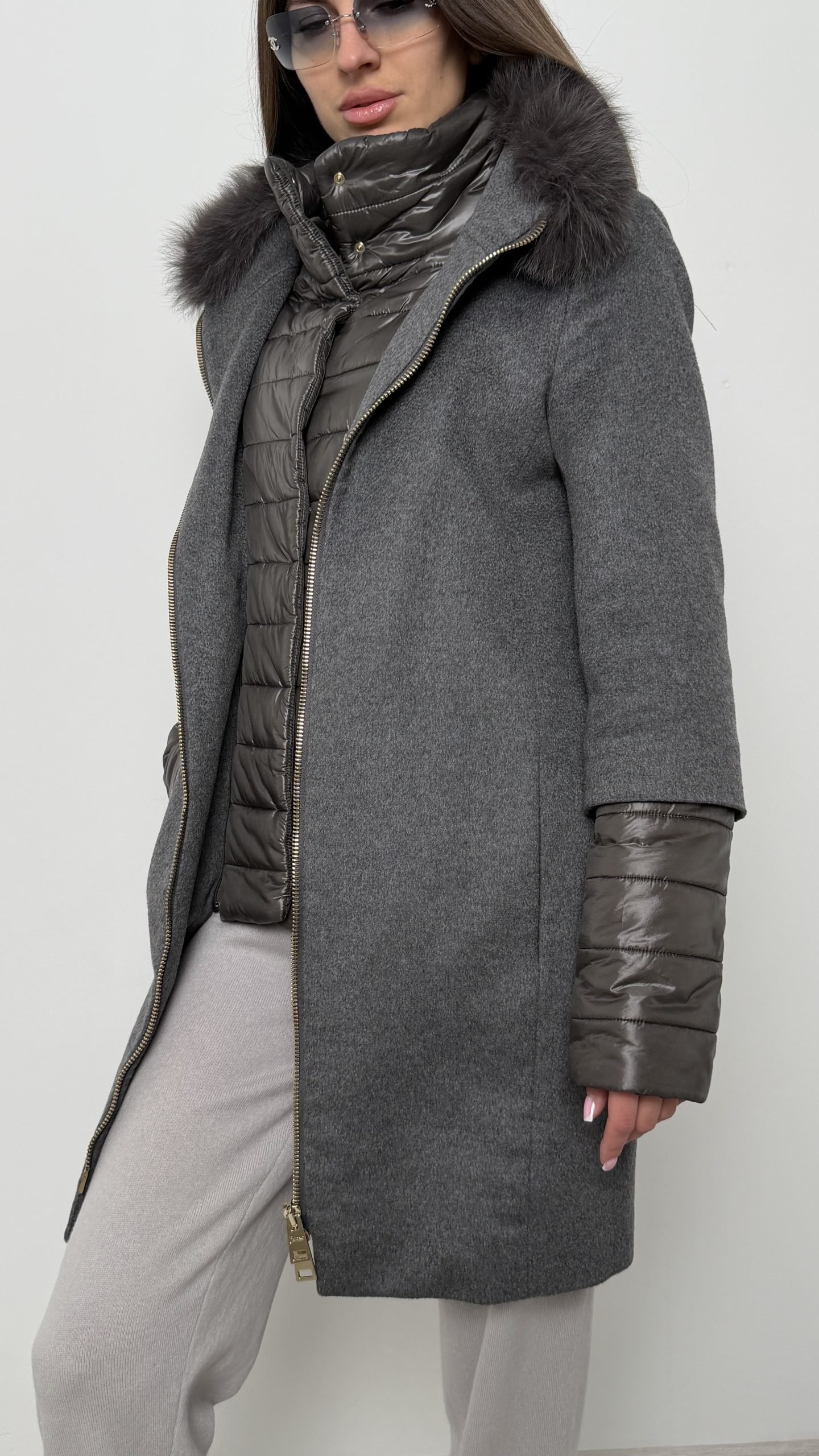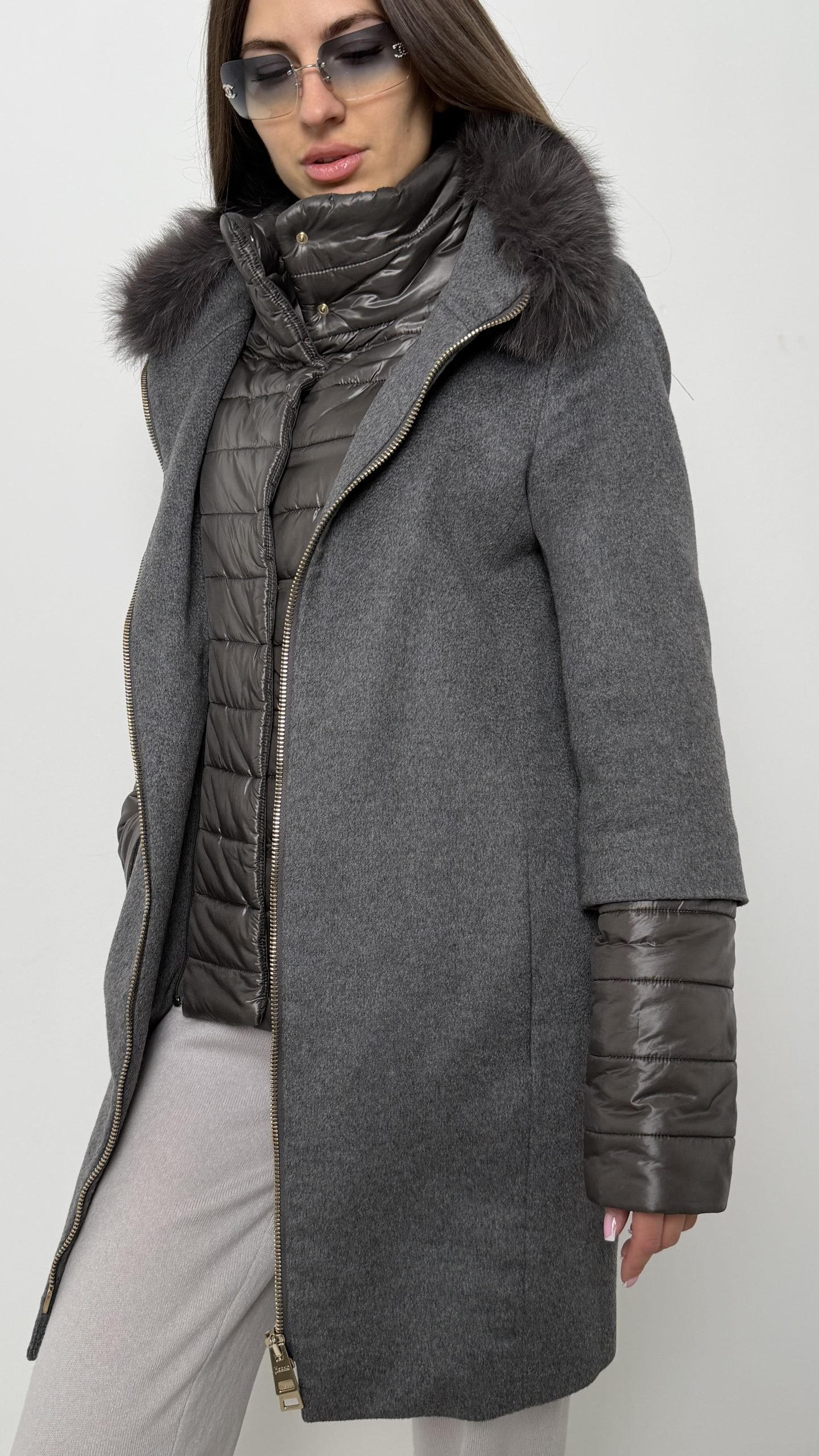 Пальто Herno — втілення розкішного комфорту. Зовнішня частина з кашеміру поєднана з утепленою вставкою та коміром із хутром, що створює елегантний і практичний силует для прохолодного сезону