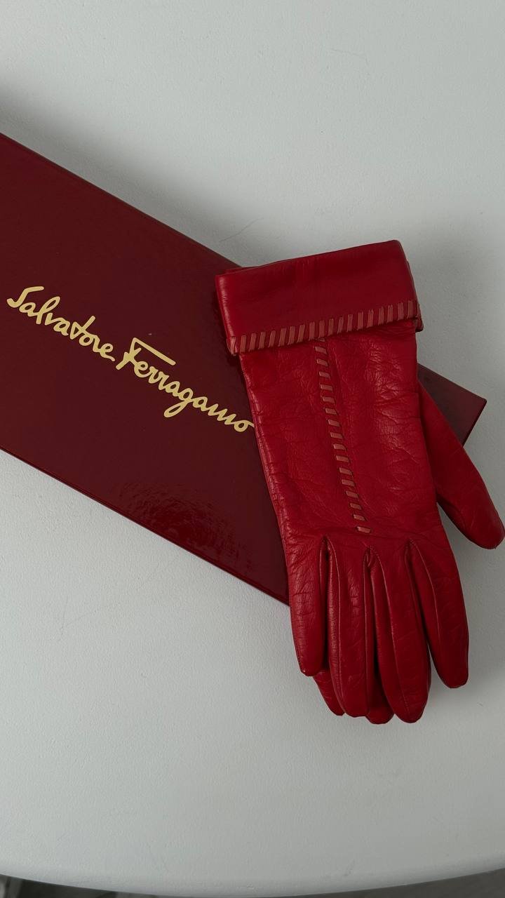 Рукавички Salvatore Ferragamo з м’якої натуральної червоної шкіри. Елегантна модель із декоративними прорізами та відворотом на манжеті, що підкреслює вишуканість бренду