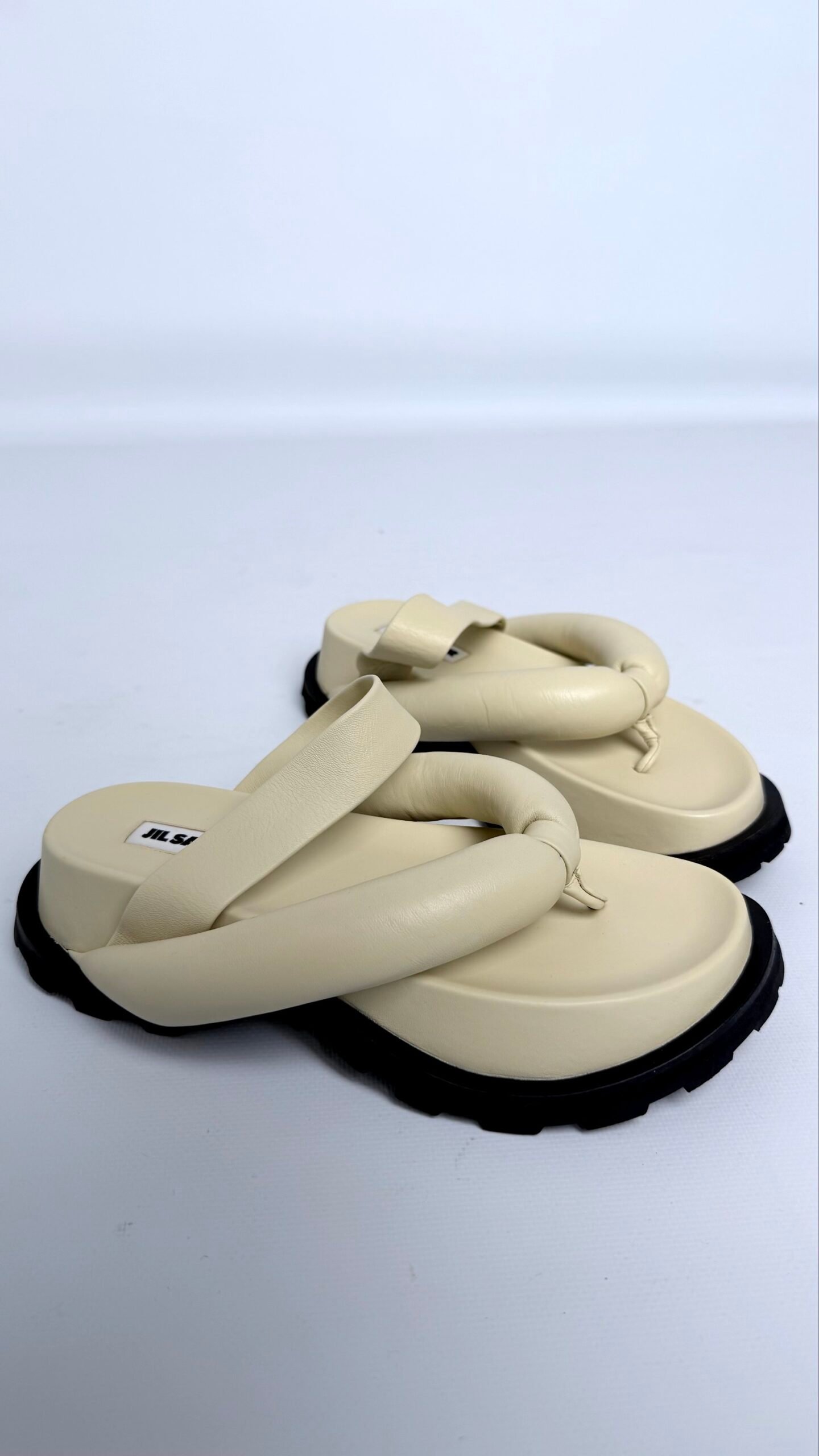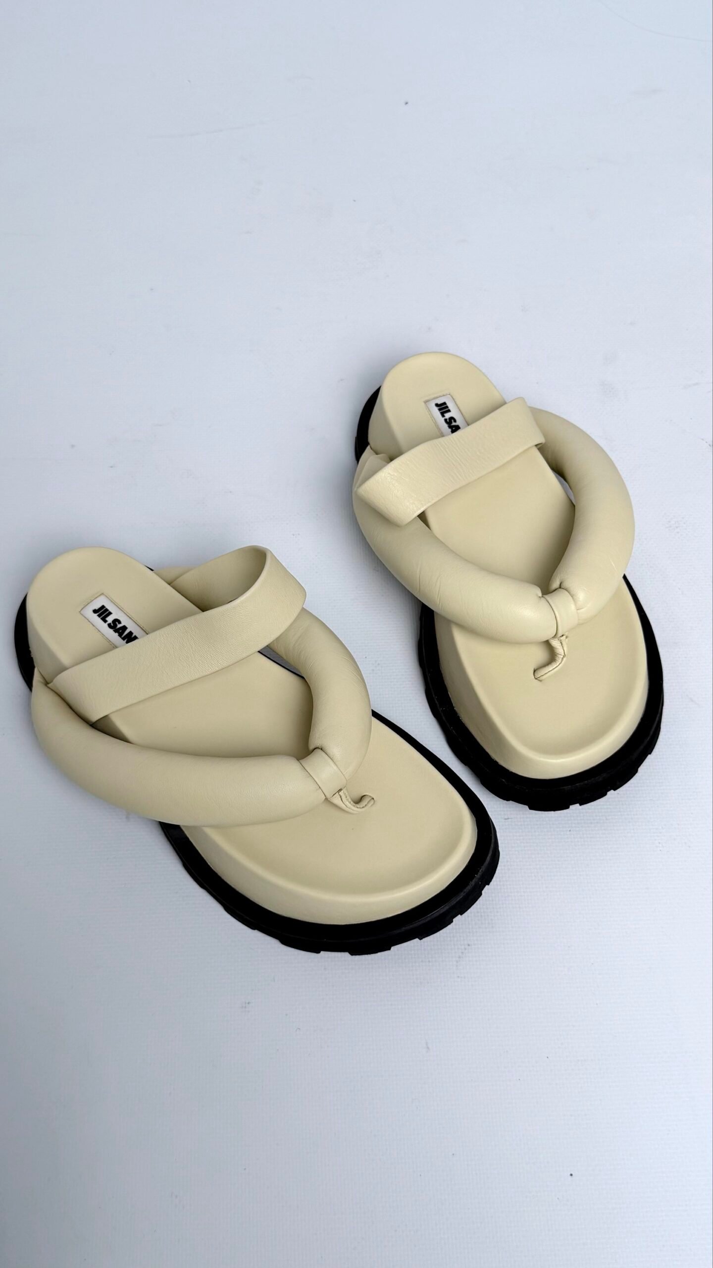 Ці культові сандалі від Jil Sander — ідеальне поєднання мінімалізму, комфорту та авангардного стилю. Завдяки об’ємним м’яким ремінцям та масивній підошві, вони стануть головним акцентом вашого літнього гардероба.
