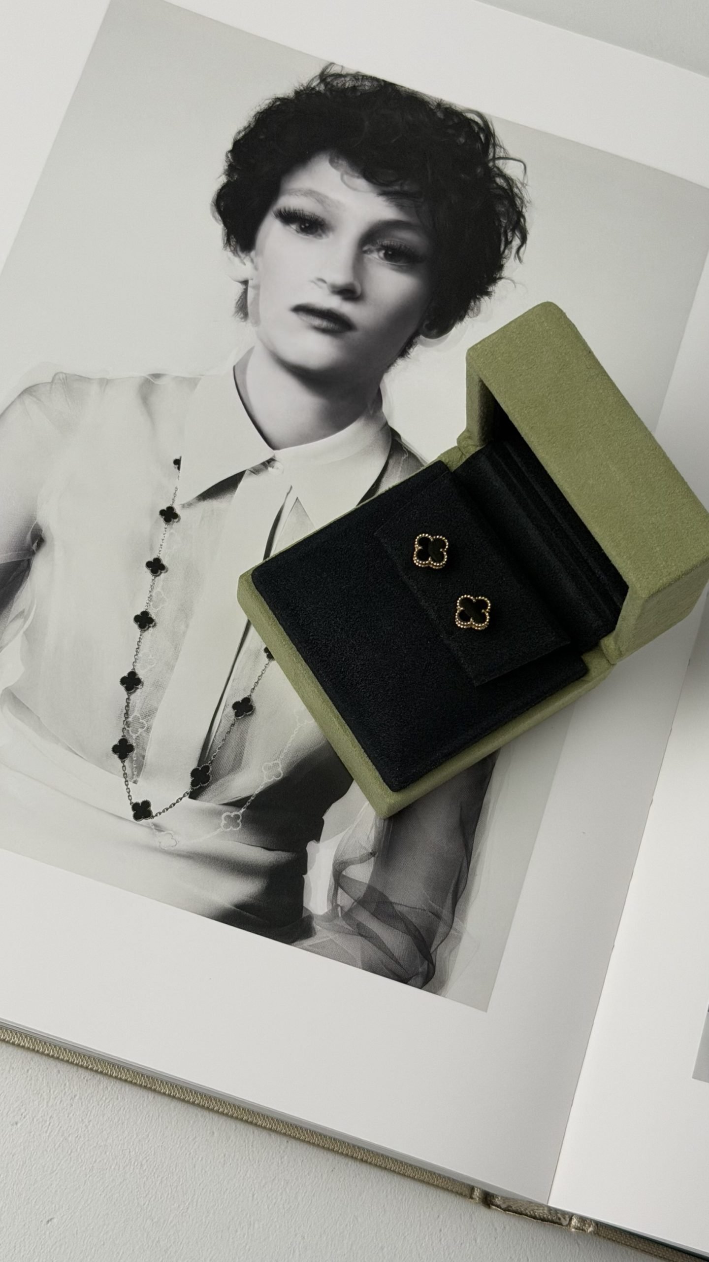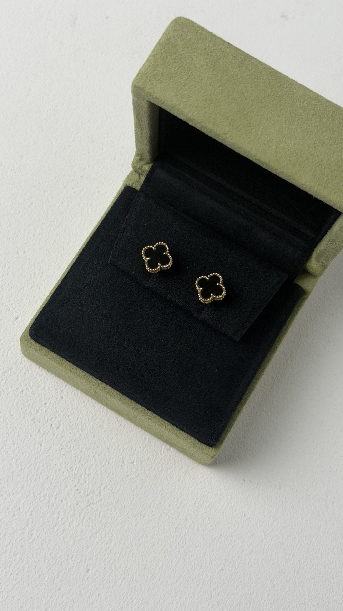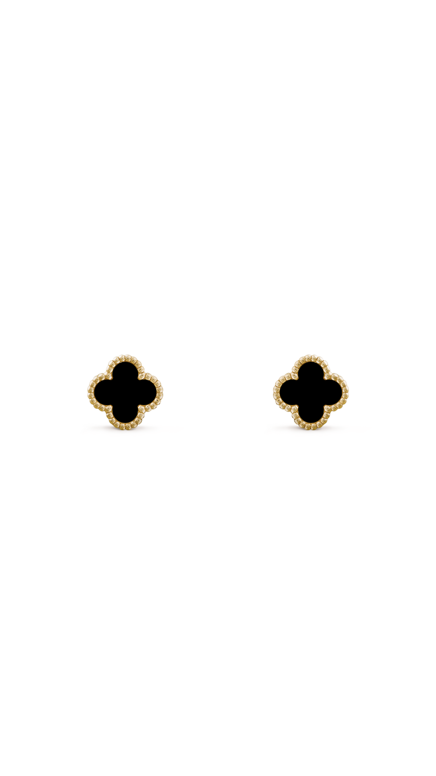 Витончені сережки з культової лінії Alhambra — символ удачі, гармонії та вічної елегантності. Фірмовий чотирилисний мотив виконаний з глибокого чорного оніксу, обрамленого характерною золотою зернистою окантовкою perlée, яка стала впізнаваною ДНК ювелірного Дому.