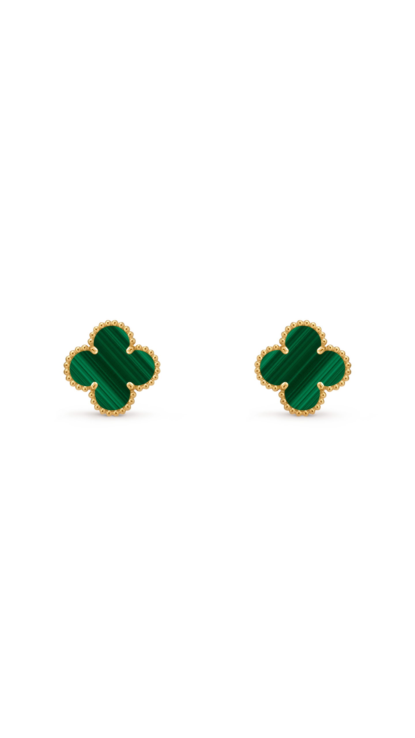 Одна з найбажаніших версій культової Alhambra. Сережки з глибоким зеленим малахітом — каменем сили, балансу та удачі, кожен з яких має унікальний природний візерунок. Саме тому двох однакових пар не існує.