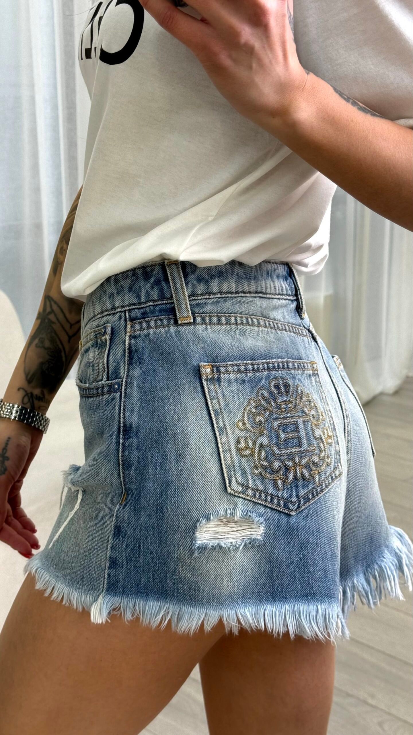Додайте нотку розслабленої розкоші до вашого літнього гардероба з джинсовими шортами від італійського дому моди Ermanno Scervino. Ця модель поєднує в собі бездоганний крій та зухвалий сучасний стиль, що робить її ідеальним вибором для створення ефектних повсякденних образів. Виконані з преміального деніму світло-блакитного відтінку з автентичним ефектом вицвітання (wash effect). Декоративні розрізи та потертості ручної роботи додають виробу легкої недбалості та актуального вигляду.Ці шорти чудово гармоніюють як з базовими білими футболками та кедами для прогулянок містом, так і з мереживними топами чи шовковими блузами в стилі boho-chic.