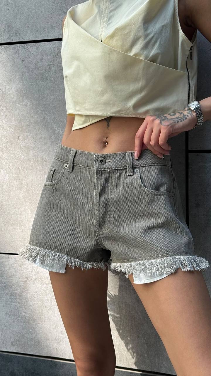 Бежеві короткі шорти з бахромою