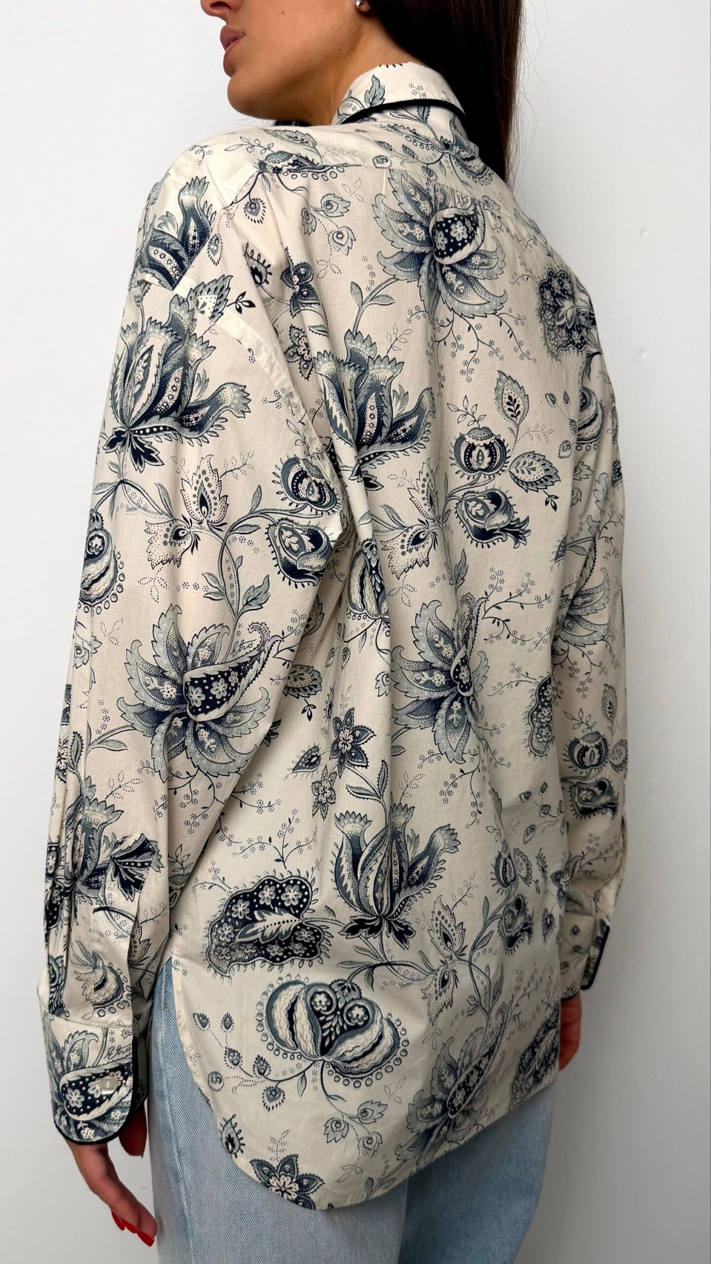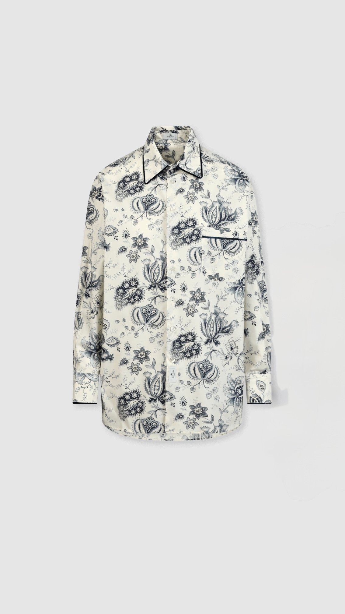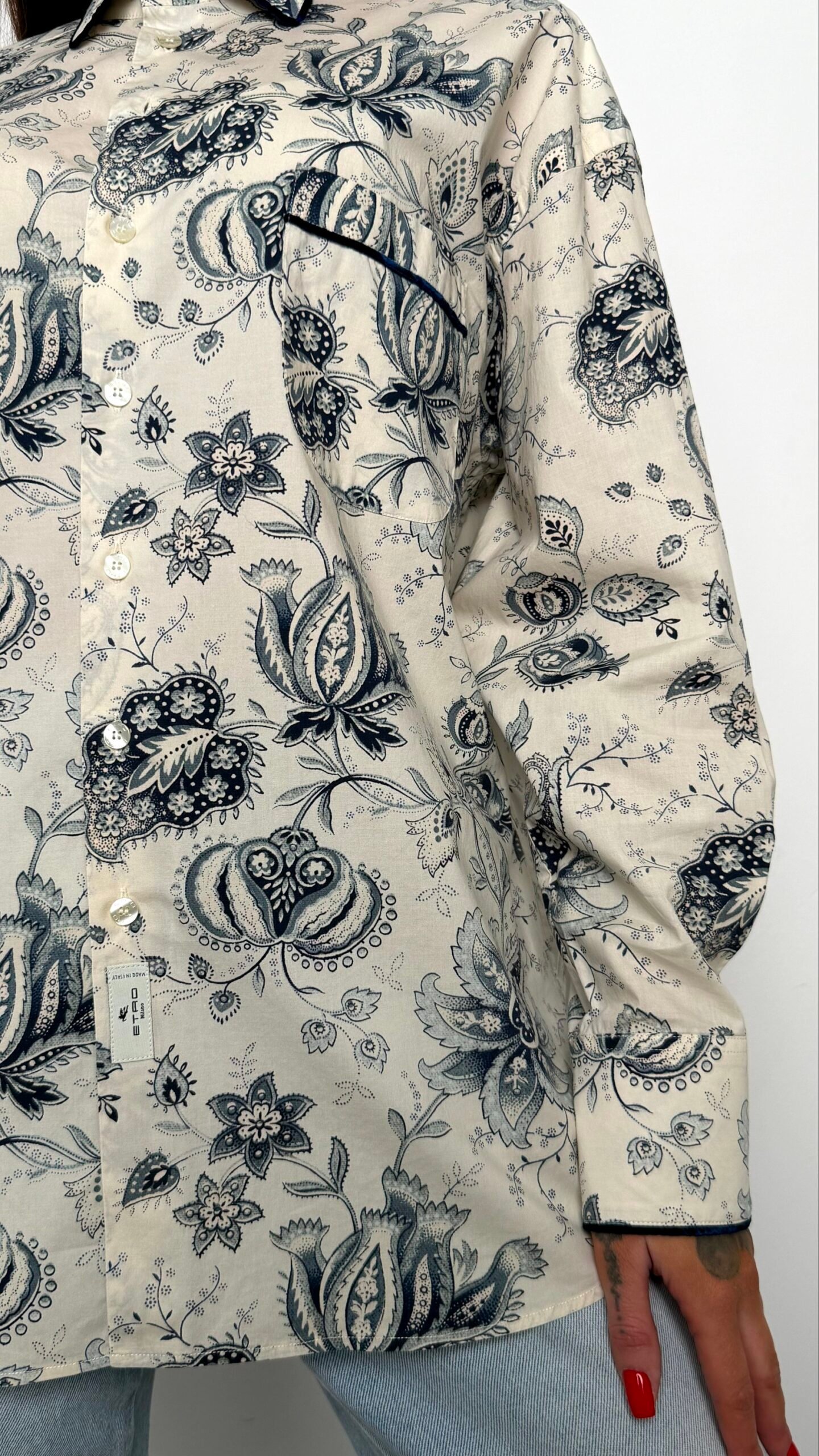 Елегантна сорочка від культового італійського бренду Etro — це ідеальне поєднання класичного крою та фірмової естетики бренду. Модель виконана у піжамному стилі, що залишається одним із головних трендів сезону, додаючи образу розслабленості та витонченості водночас.Ця сорочка ідеально доповнить як повсякденний образ із широкими джинсами та лоферами, так і вечірній вихід у поєднанні зі штанами-палаццо або атласною спідницею.