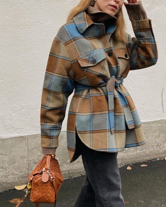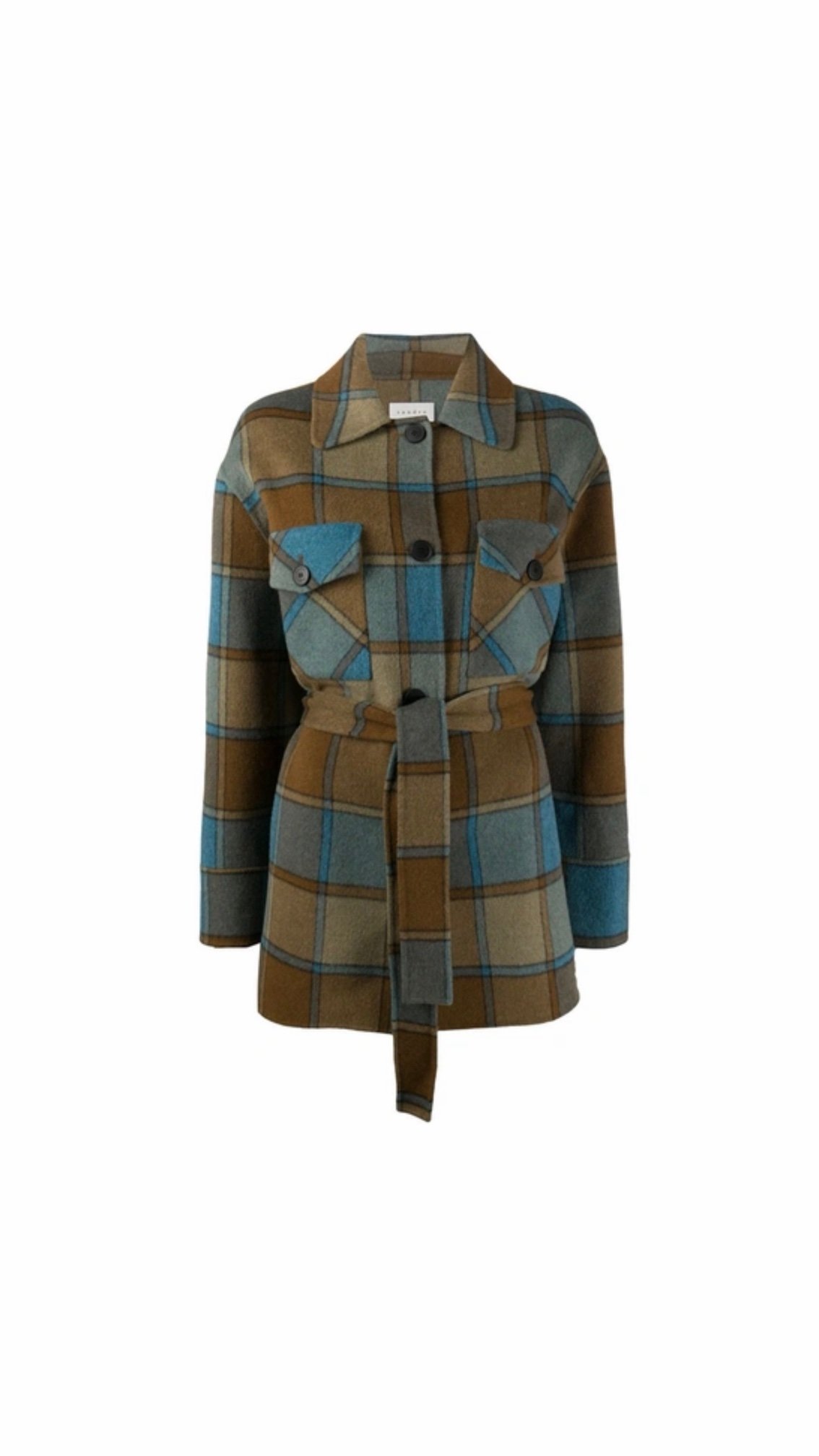 Тепла сорочка Sandro Paris — стильна модель у клітинку з акцентом на талії. Виконаний з вовняної суміші (80% wool), має структурований силует і пояс, що красиво формує фігуру. Ідеальний варіант для міжсезоння та багатошарових образів у паризькому стилі.