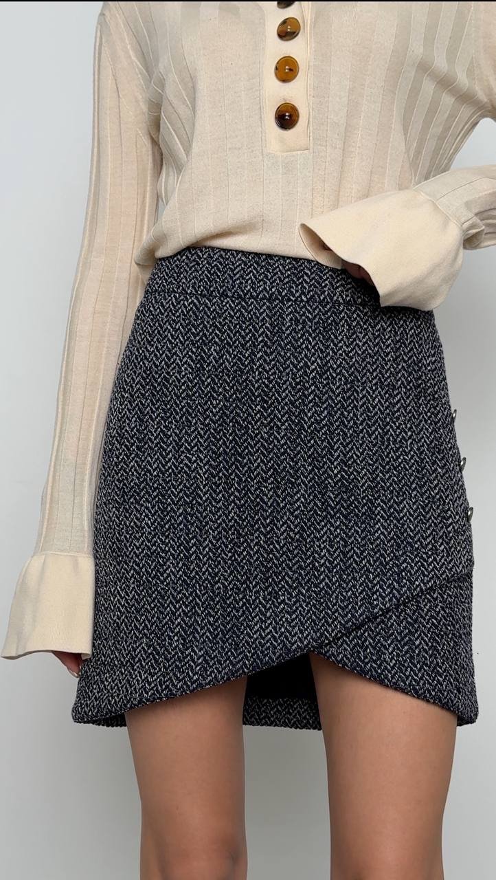 Тепла спідниця-міні з вовни з ґудзиками збоку