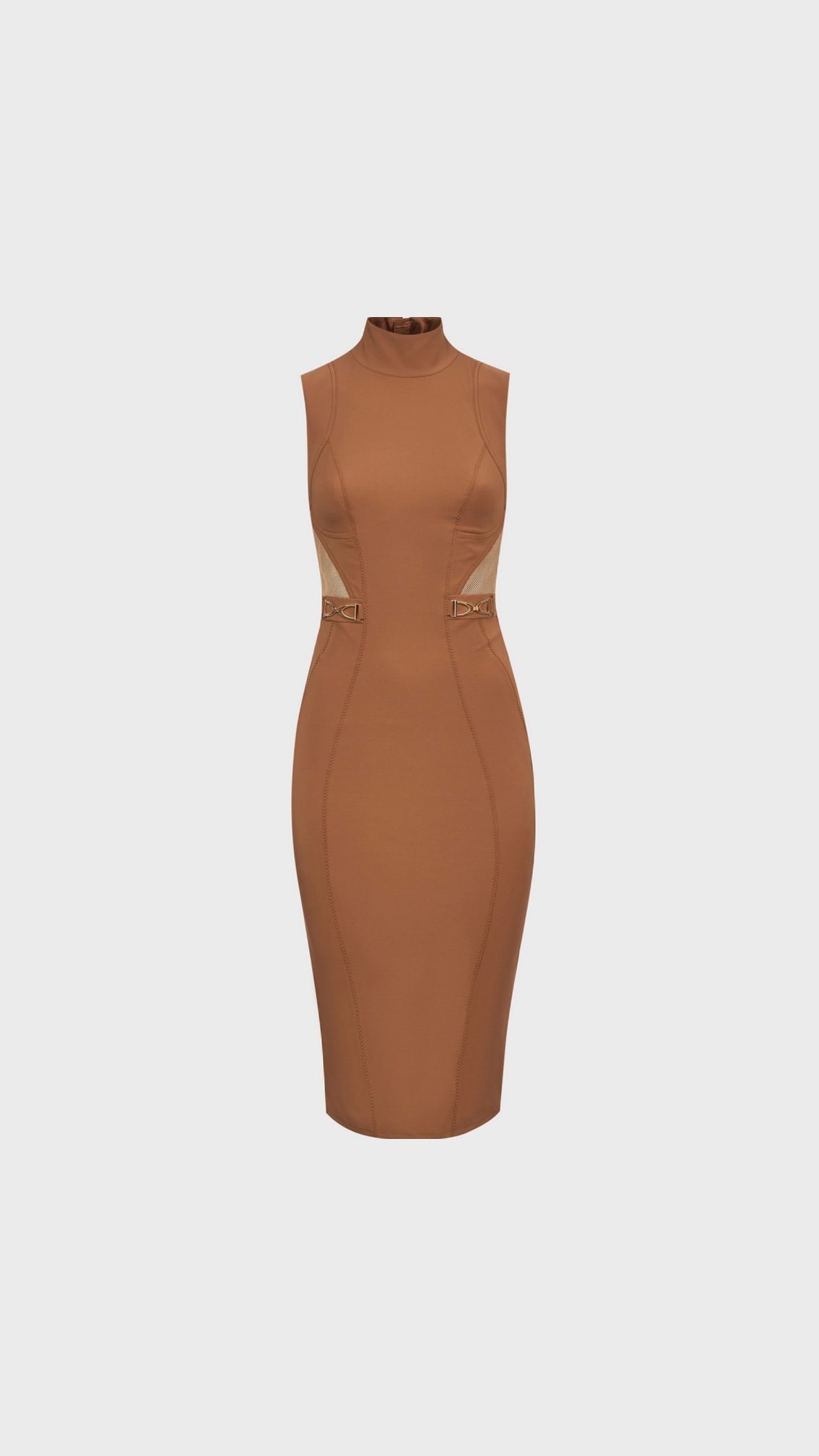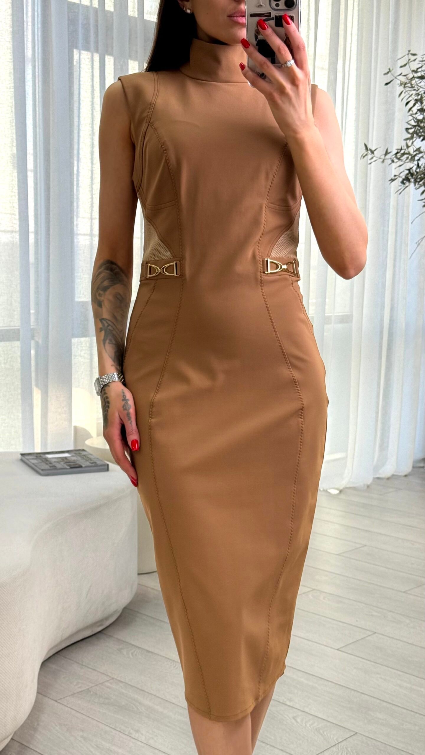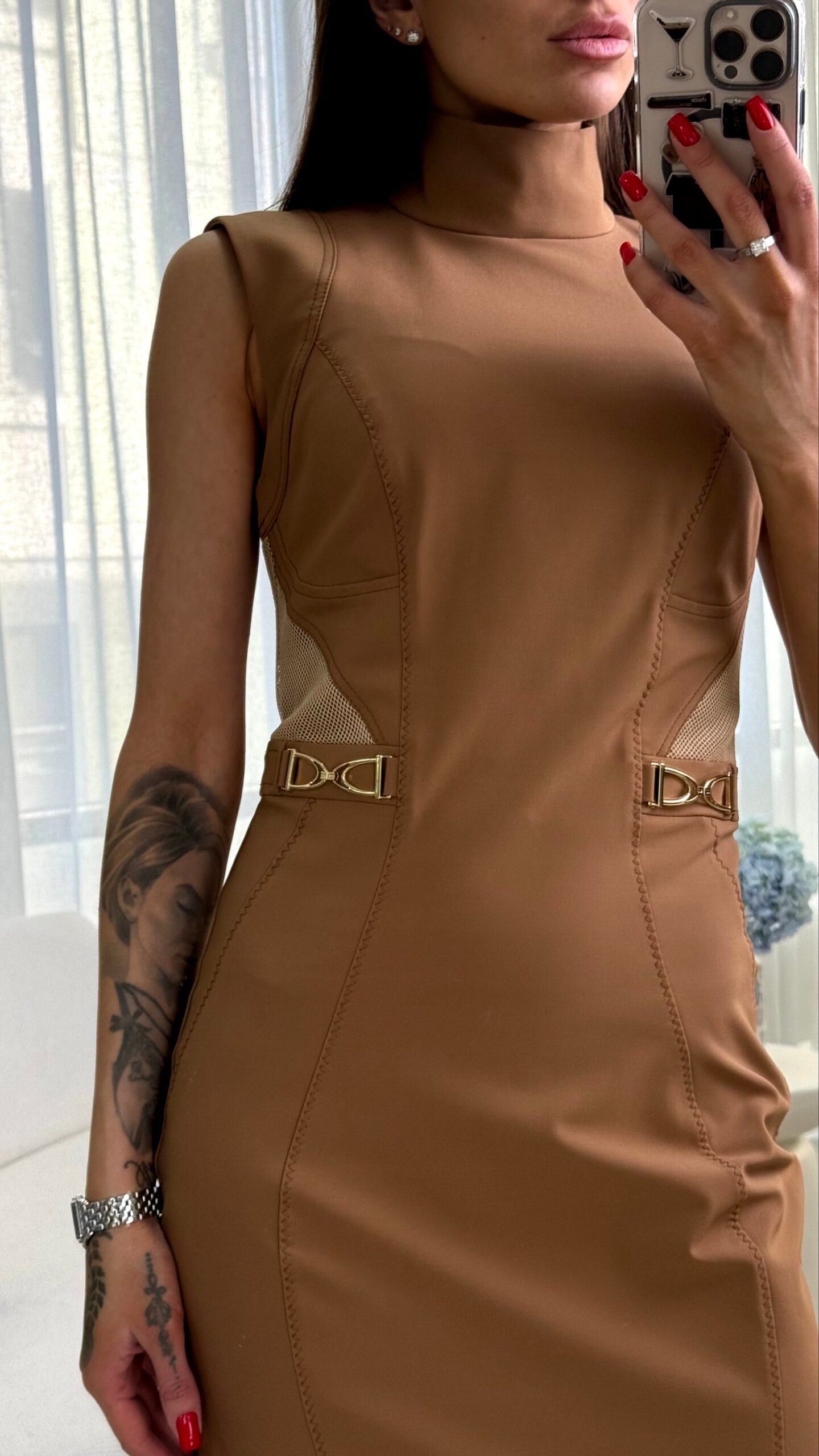 Елегантна сукня-футляр від італійського бренду Elisabetta Franchi — це втілення витонченості та сучасного стилю. Модель виконана у благородному карамельному відтінку, який ідеально підкреслює силует та додає образу статусності.Поєднуйте сукню з туфлями-човниками на підборах та мінімалістичними золотими прикрасами, щоб підтримати фурнітуру виробу.