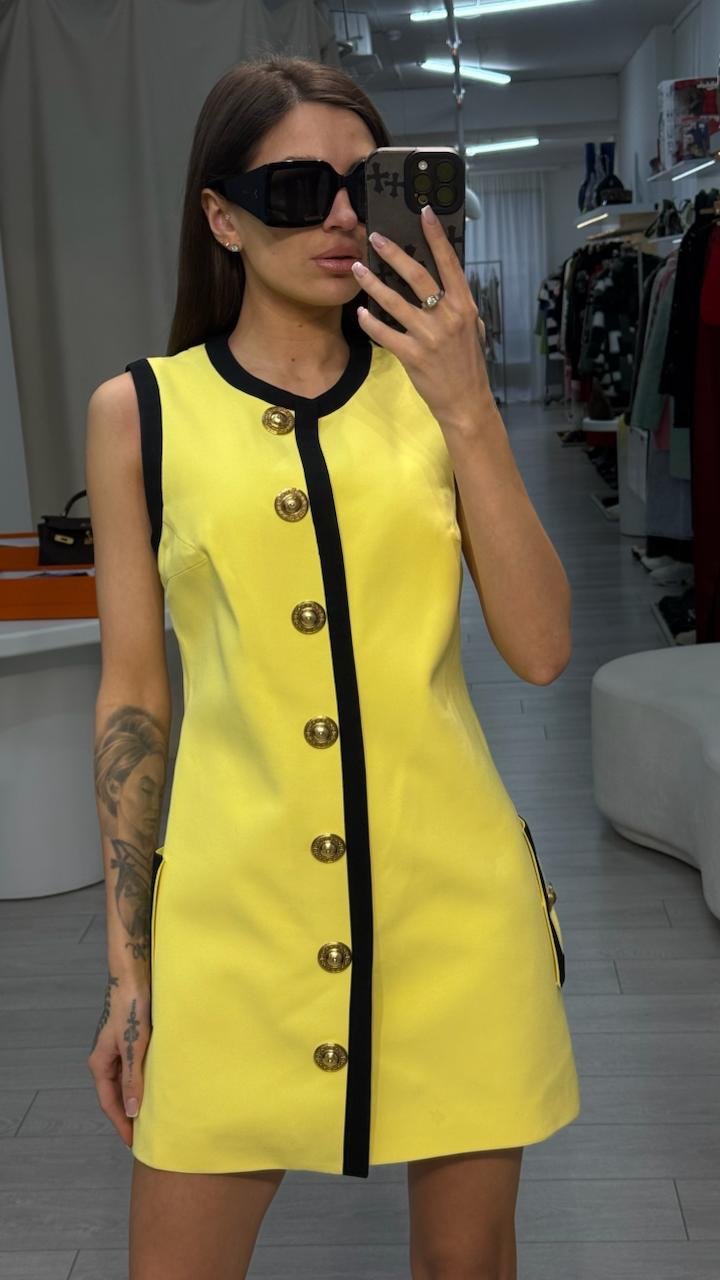 Сукня Fausto Puglisi — втілення італійської яскравості. Контрастна обробка та фірмові золоті ґудзики створюють ефект ретро-гламуру, а щільна тканина тримає форму та підкреслює фігуру