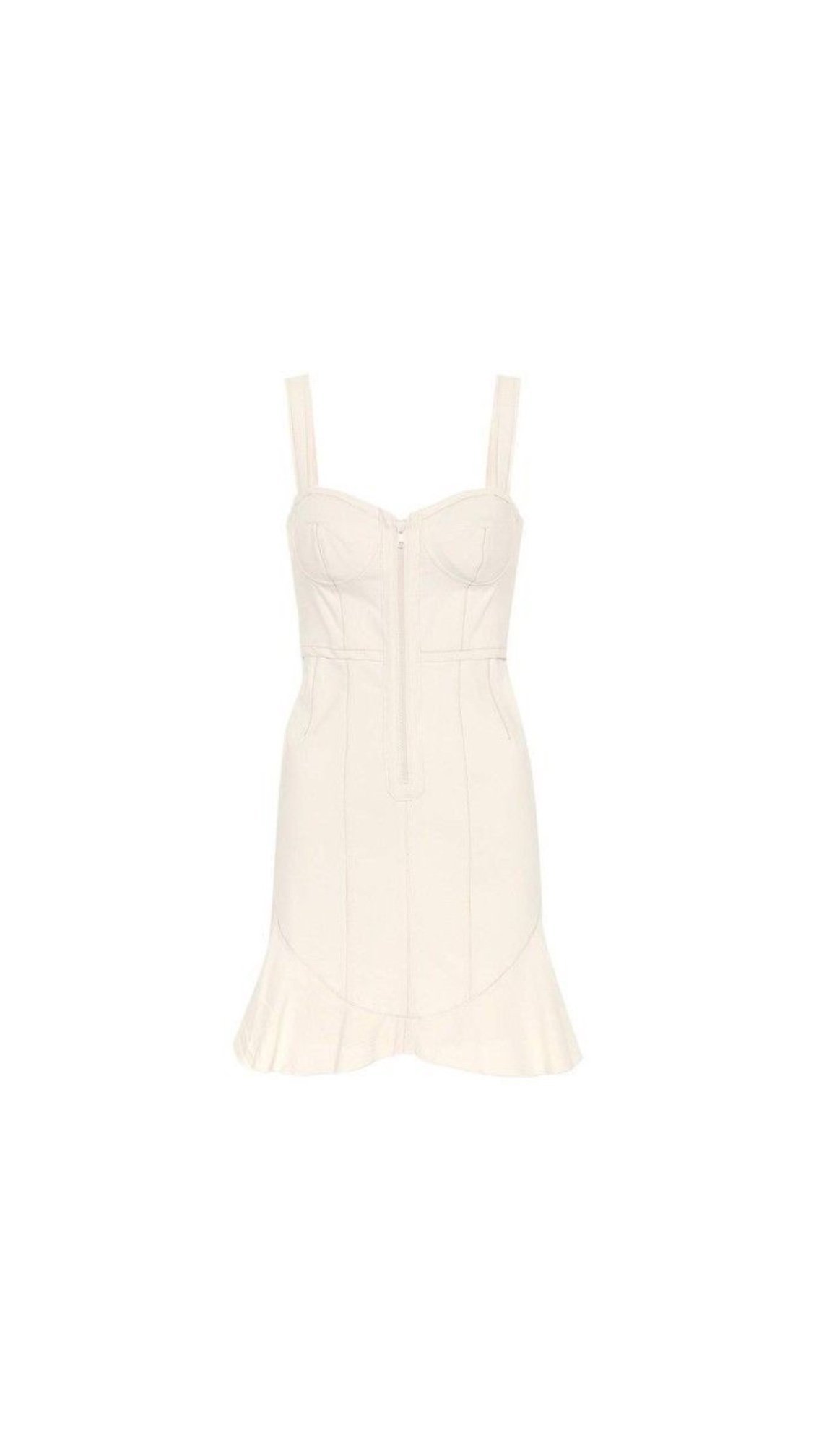 Елегантність із ноткою зухвалості від культового французького бренду Isabel Marant. Ця сукня поєднує в собі чіткий архітектурний крій та жіночний силует, створюючи ідеальний образ для літніх вечорів або міських прогулянок. Приталений крій, який переходить у грайливий волан по нижньому краю (frou-frou hem) додає образу легкості та динаміки. Для створення розслабленого образу поєднуйте сукню з козаками або сандалями на плоскій підошві. Якщо ж ви прагнете більш вишуканого вигляду — додайте мінімалістичні босоніжки на підборах та масивні золоті прикраси.