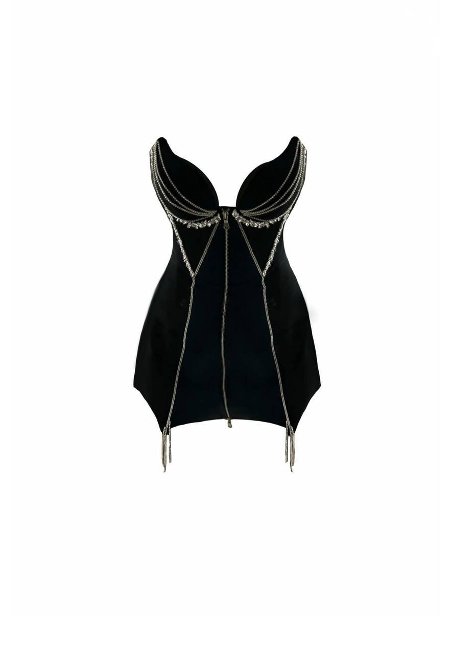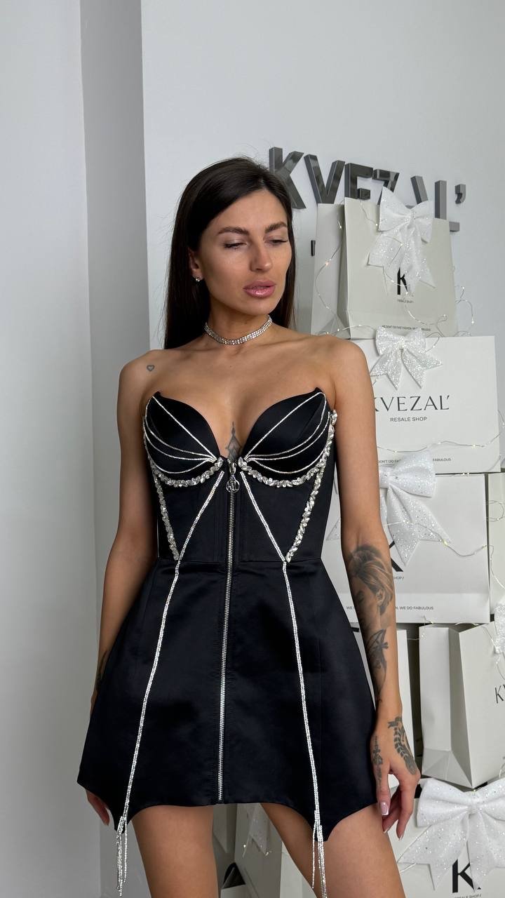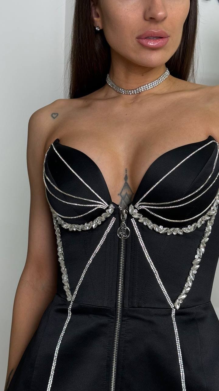 Смілива, зухвала та безкомпромісно жіночна — ця сукня створена, щоб привертати погляди. Корсетний верх із чітко сформованими чашками красиво підкреслює декольте та талію, створюючи ідеальний силует.