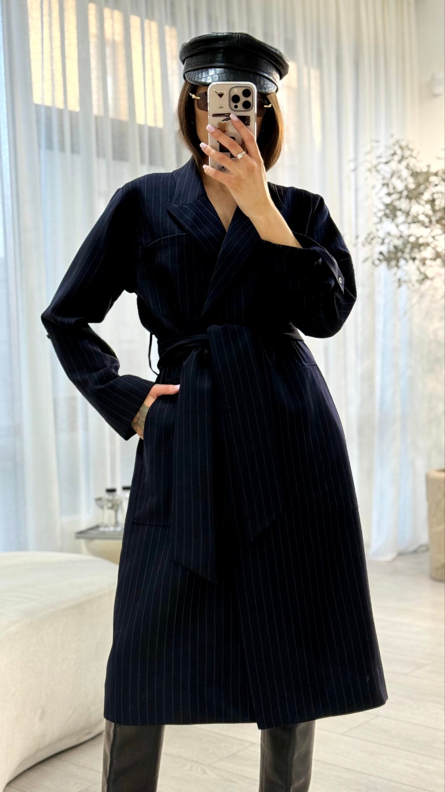 Елегантна сукня-міді від елітного італійського бренду Lorena Antoniazzi — це ідеальне втілення стилю “quiet luxury” (тиха розкіш). Модель виконана у фасоні на запах, що нагадує подовжений жакет або легке пальто, створюючи витончений та впевнений силует.