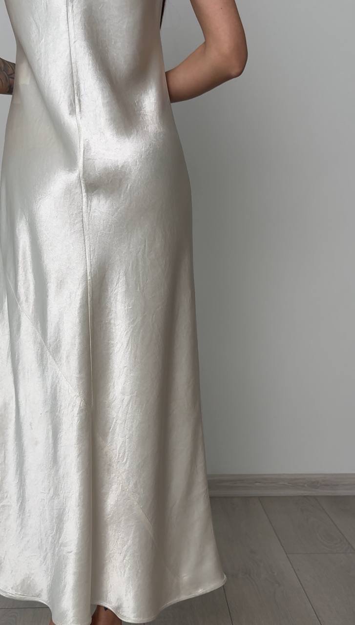 Шовкова сукня з акцентним червоним кольором на рукавах